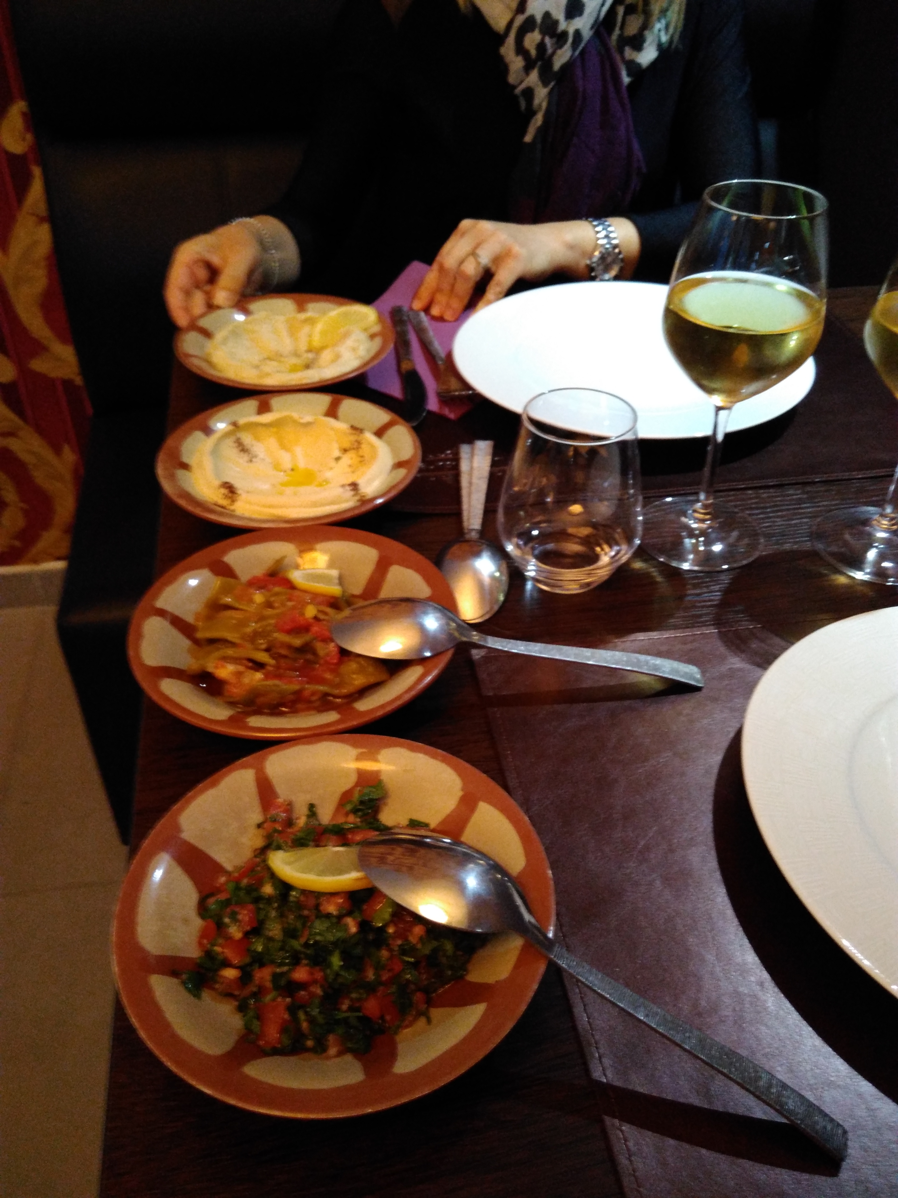 Nous avons très bien mangé, l'assortiment de mezze était très copieux et tout était vraiment très bon! L'ambiance est un peu froide, due à la salle très grande et des couleurs un peu fade.