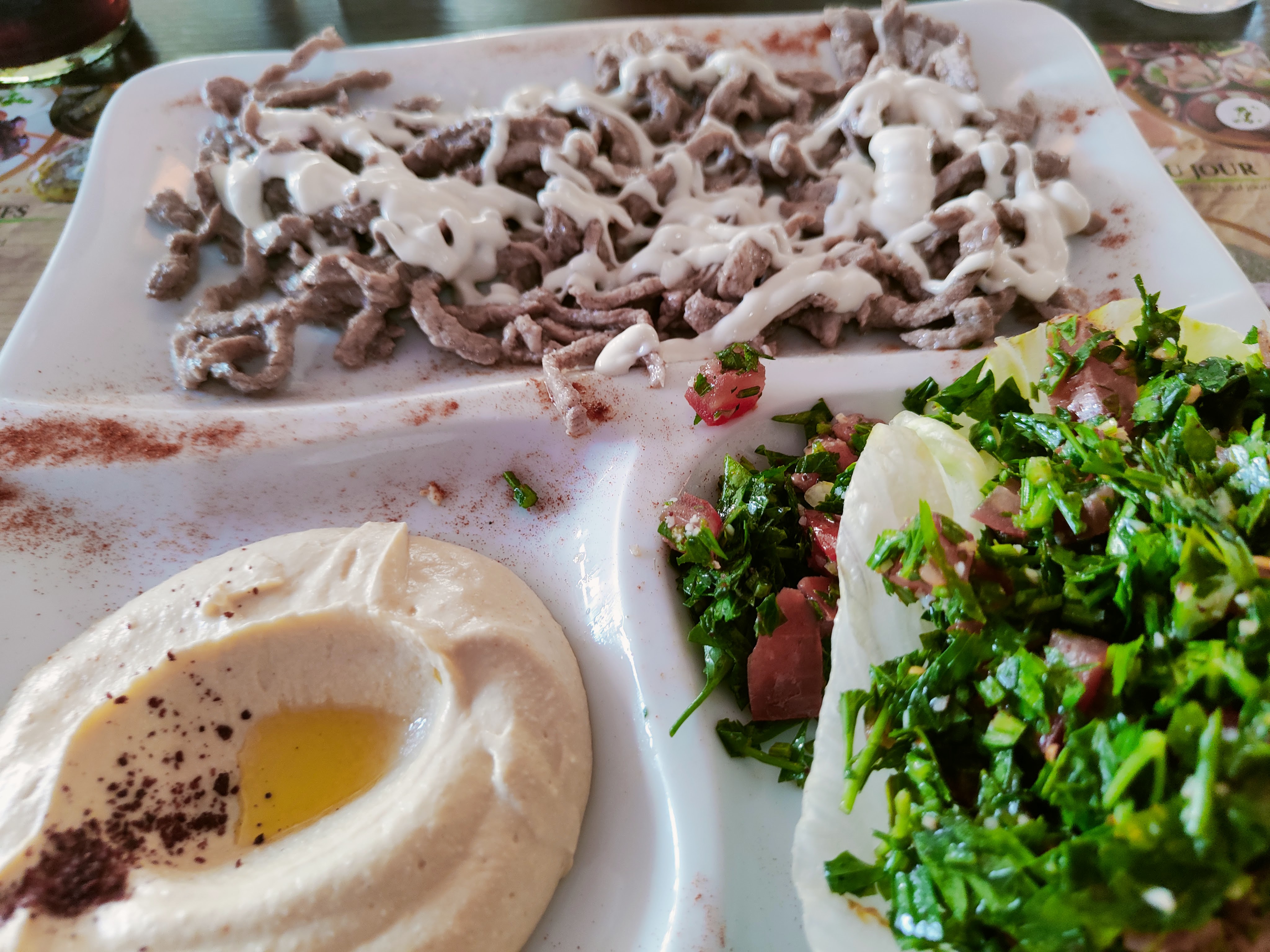 Très bon restaurant libanais sur Metz. Plat copieux, et très bon. La preuve en image. Je recommande