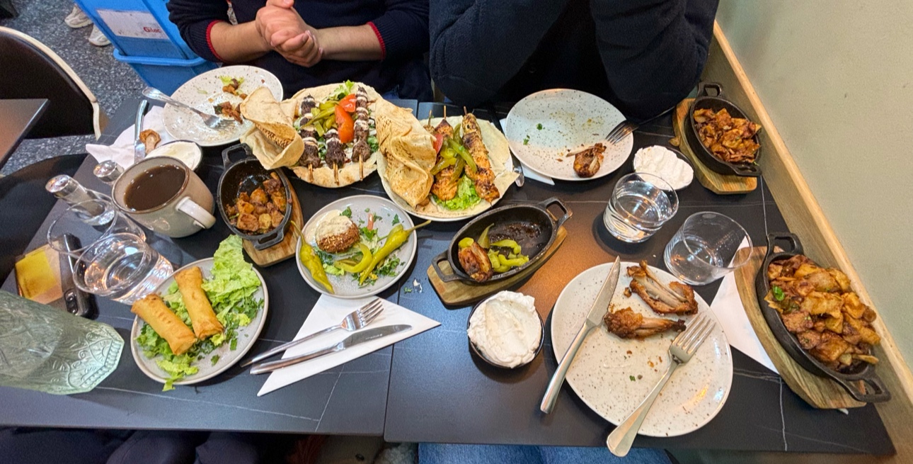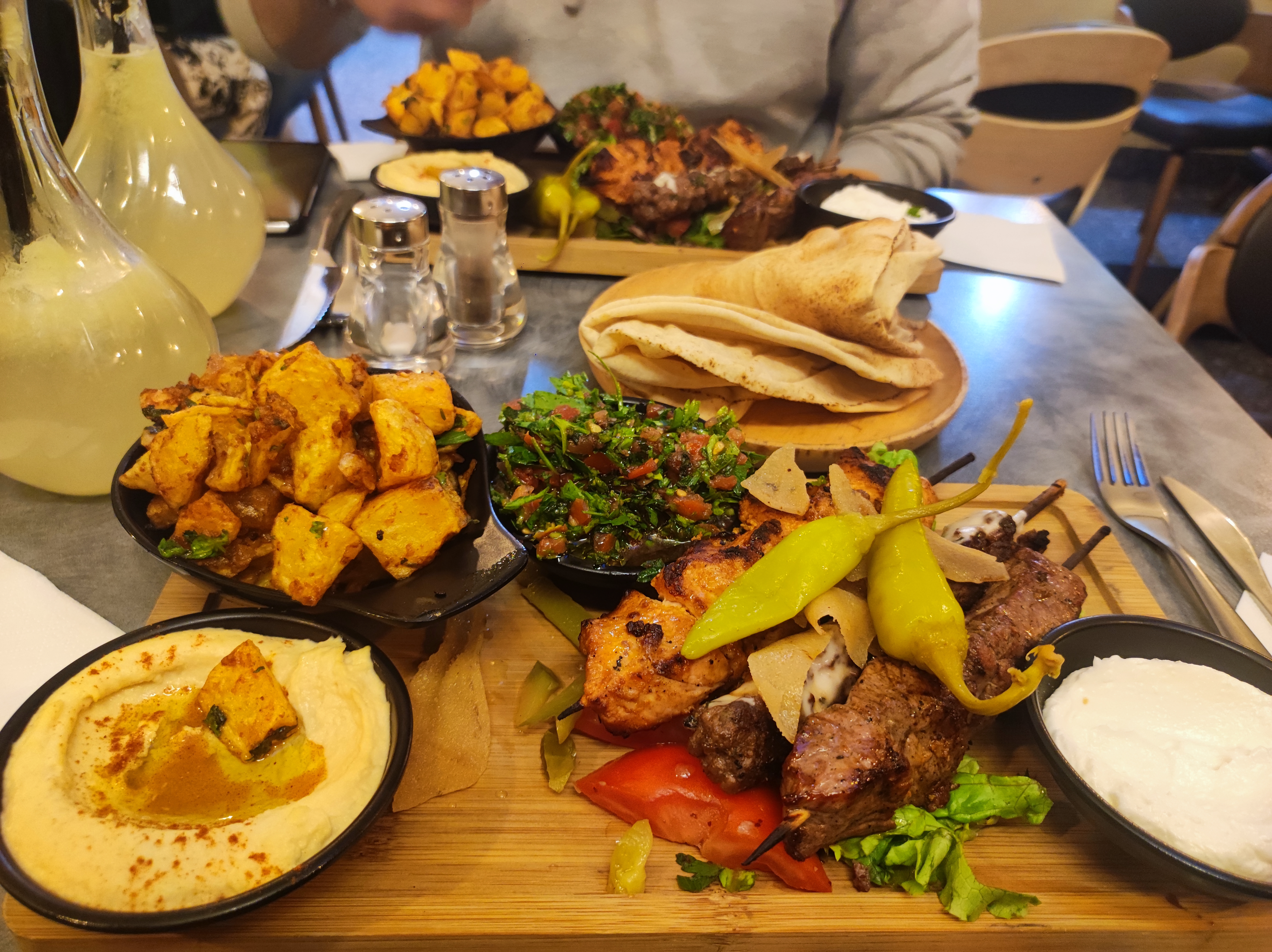 Une belle experience, en effet c’est la première fois que je goûte de la nourriture libanaise et je n’ai pas été déçue. Le serveur qui s’est occupé de nous etait patient disponible et à l’ecoute. Le thé nous a éte offert a la fin de notre dîner. Je n’ai rien a redire je reviendrai avec plaisir