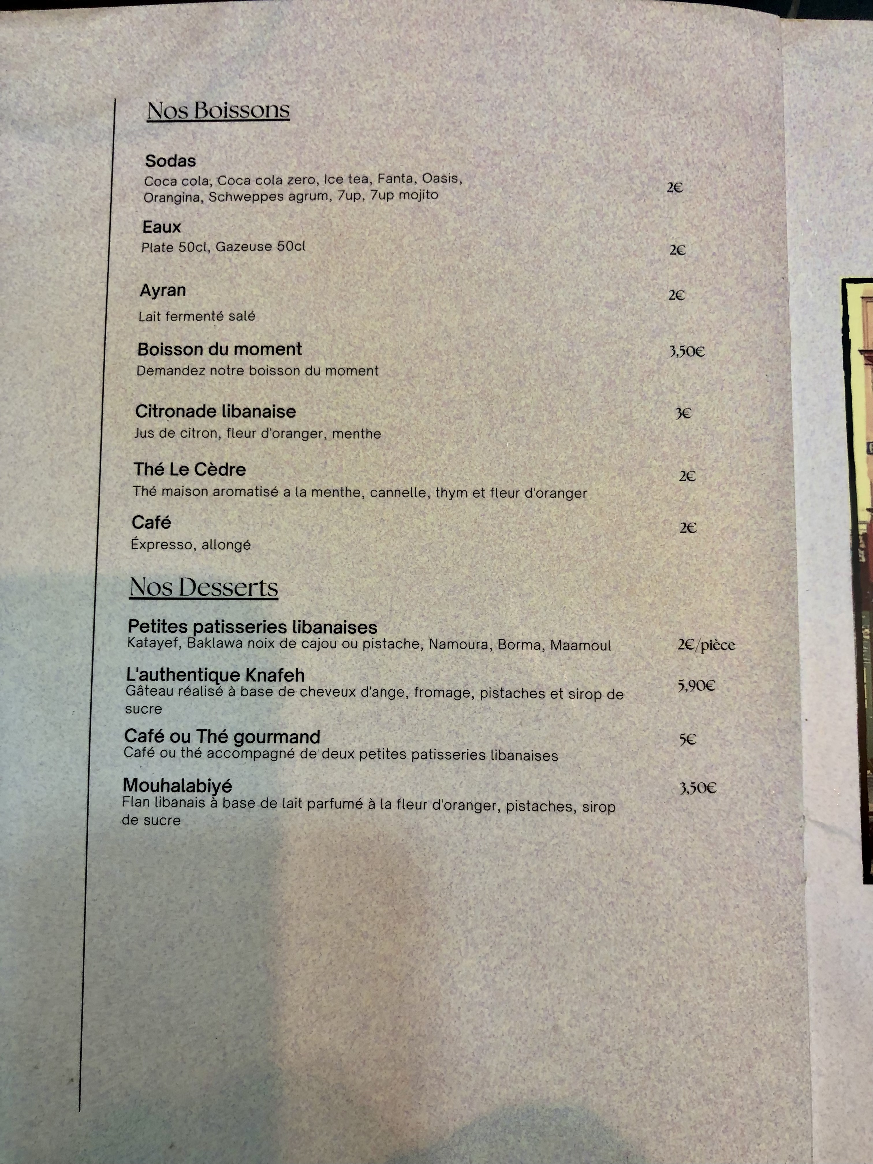 Des amis allant régulièrement dans ce restaurant me l'ont fait découvrir. Honnêtement, au premier abord, en voyant la devanture j'étais un peu septique en pensant que cela serait de la restauration rapide. Au final, j'ai eu tort, agréablement surpris. L'intérieur est agréable, calme et chaleureux. Le personnel est souriant, poli et professionnel. Bon rapport qualité/prix. C'était une première pour moi la gastronomie libanaise et j'ai été conquis. Leur cuisine est une tuerie. Le thé est incroyablement bon. Je suis ressortis complètement repu. Je recommande vivement.