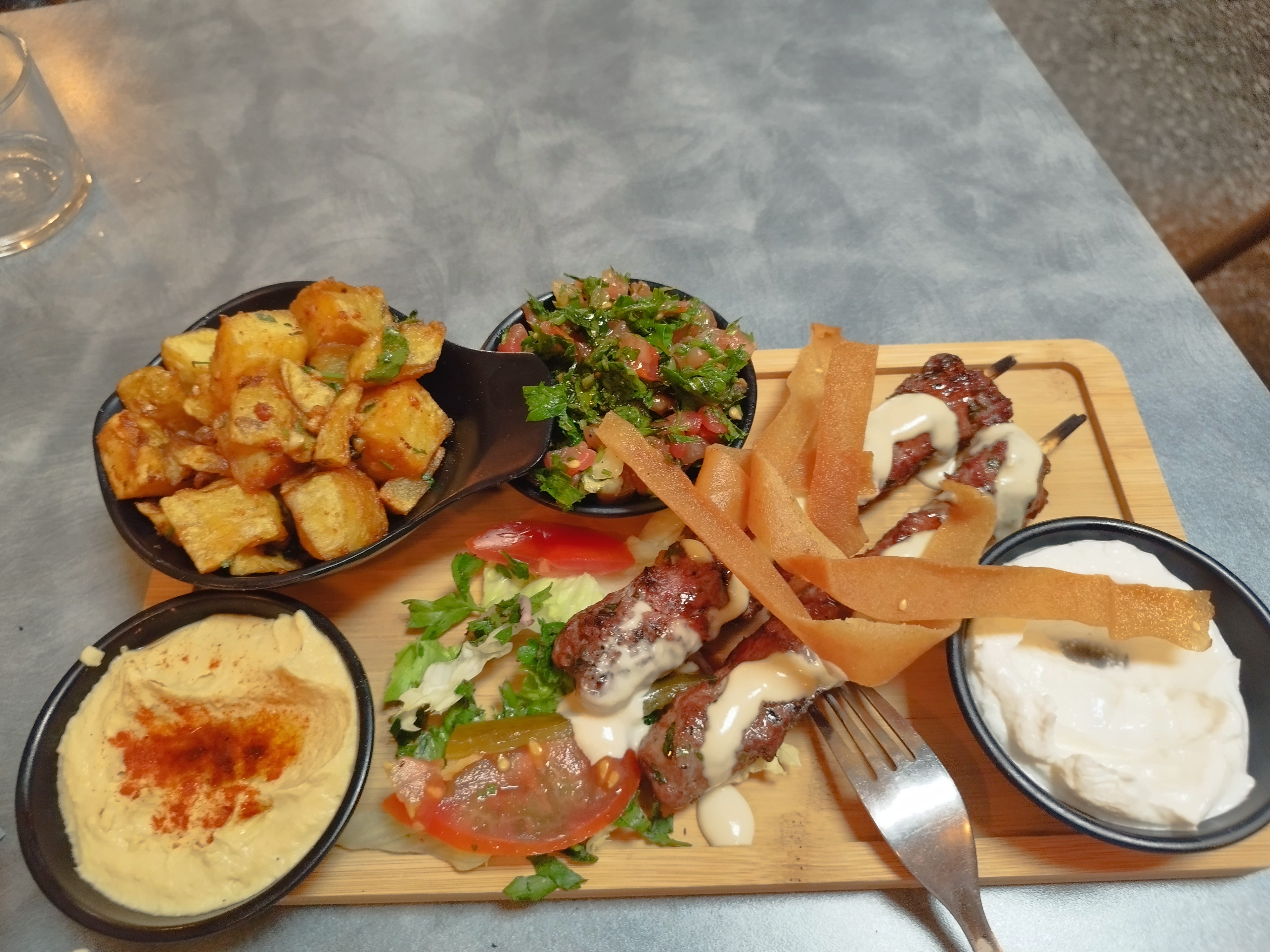 Très bon et très copieux. Un bon rapport quantité/prix, les brochettes de poulet étaient excellentes. Le service était également rapide et le plat bien présenté. Une étoile en moins pour les pomme de terres qui étaient un peu mou, sans croustiller, mais également à l'entrée qui était un peu trop acidulée. Sinon, c'est impeccable, je recommande fortement.