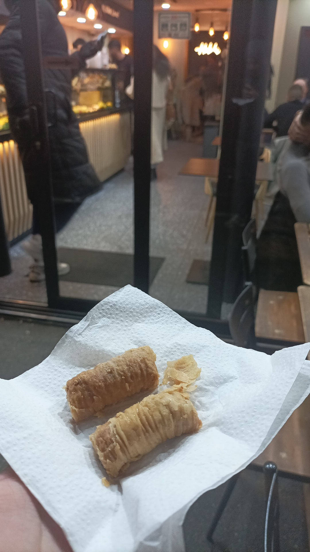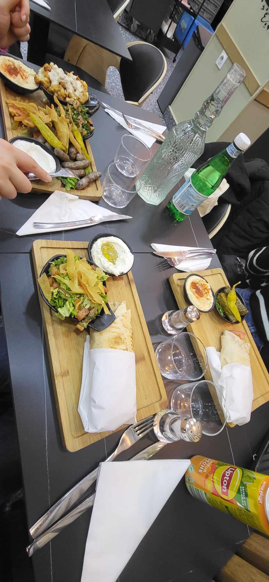 C’était bon mais le 1er serveur m’a induite en erreur entre samboussek fromage et rikakat fromage. J’ai reçu celui que je ne voulais pas mais je l’ai gardé car je ne voulais pas gâcher. C’était extrêmement salé! J’en ai mangé 2/4 pour pas gâché encore une fois mais je me suis forcée. Il existe des fetas peu salées, il faut mettre celles-là ! Pour les feuilles de vigne, c’était trempé d’un liquide qui donnait un goût fort désagréable en bouche, cela provient de boîte de conserve, c’est dommage. Car ceux qui sont fait maisons n’ont pas ce goût, ni cette texture. Je ne sais pas si c’est mon dîner mais j’ai eu pas mal de gaz jusqu’au lendemain matin… 😅 Je voulais goûter un panel de petites entrées pour pouvoir juger. Peut-être que j’y retournerai pour goûter les sandwichs. Le personnel est gentil est serviable cela dit.