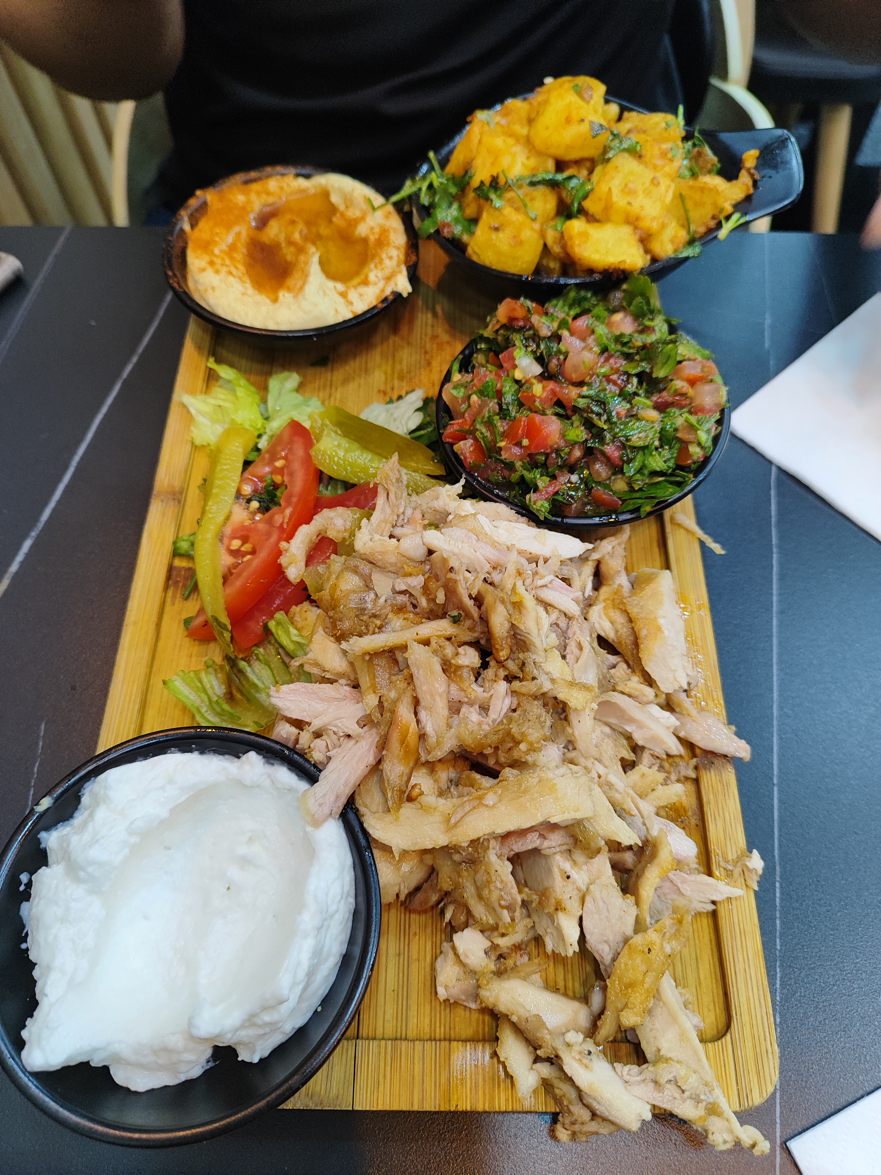 Très bon restaurant libanais. Je pense c'est mon préféré préféré. L'Assiette chawarma poulet un régal. La petite citronnade maison et le thé à la fin. C'est tellement copieux et aucun de mes invités n'a été déçu.