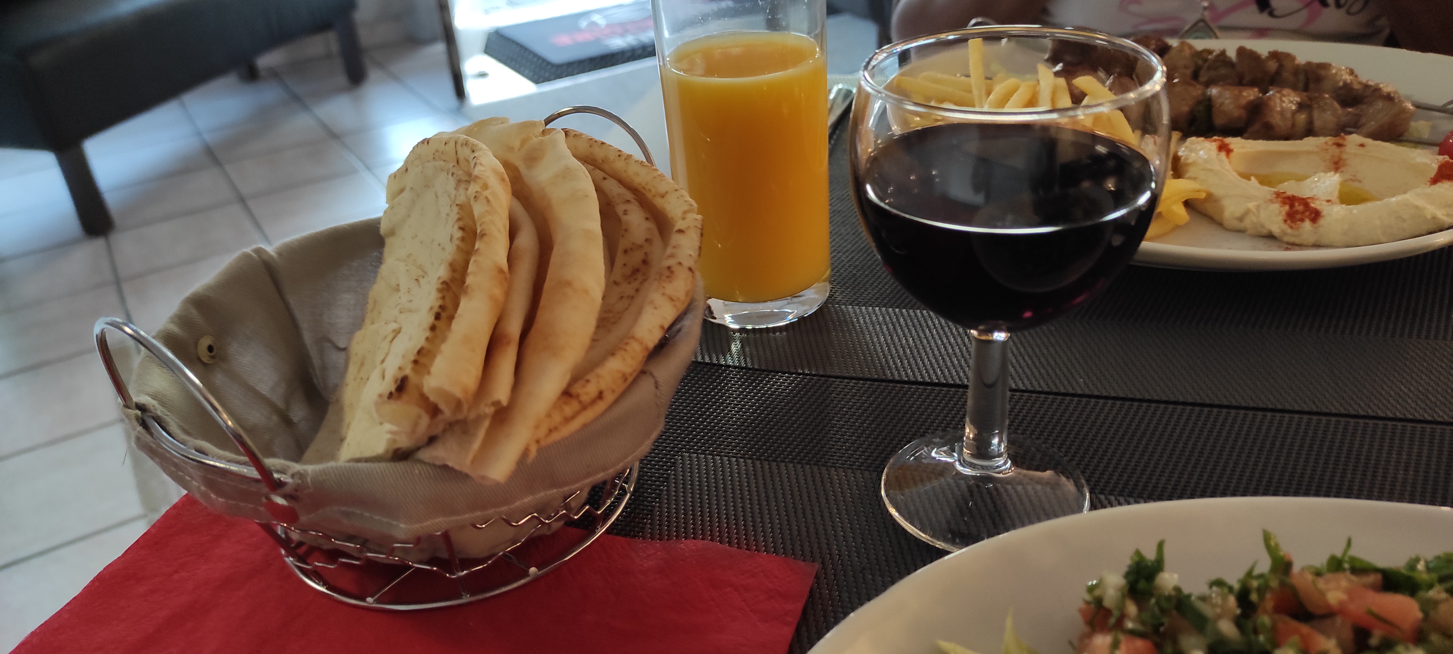 Les plateaux repas qu’on a commandes etaient un delice! Les mezzes ; falafels , chaussons , hoummos....et surtout le tabboule libanais FRAIS !!! Ca nous a vraiment manqué. Nous reviendrons et courage.