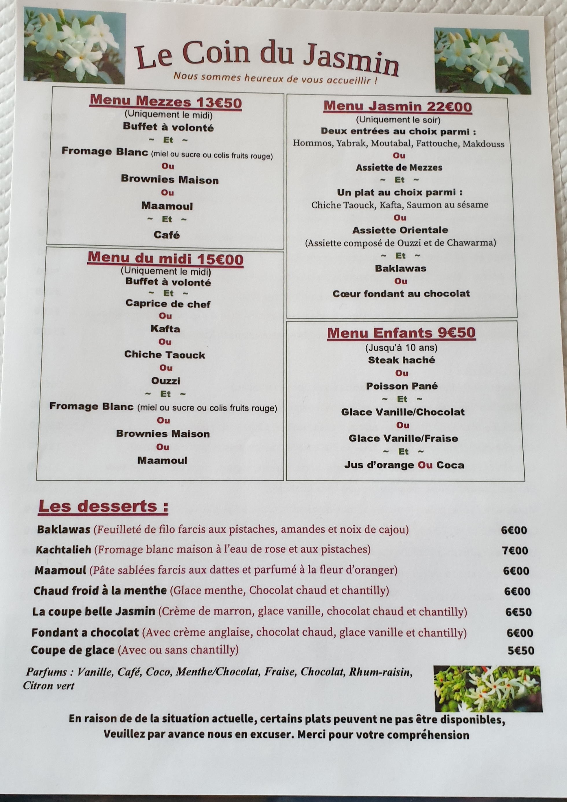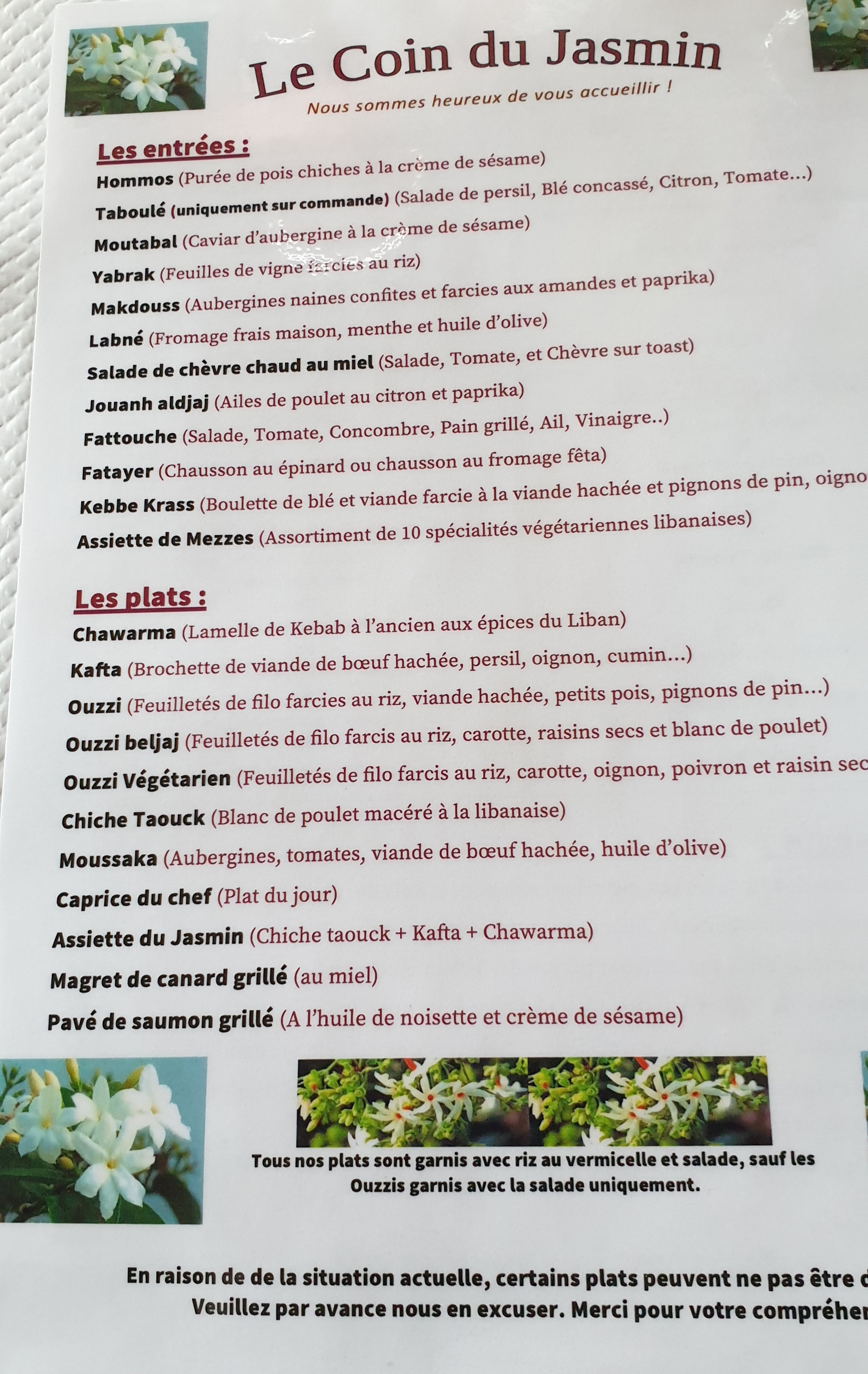 Très agréable déjeuner passé au Coin du Jasmin. Les plats sont bons et le personnel très sympathique !