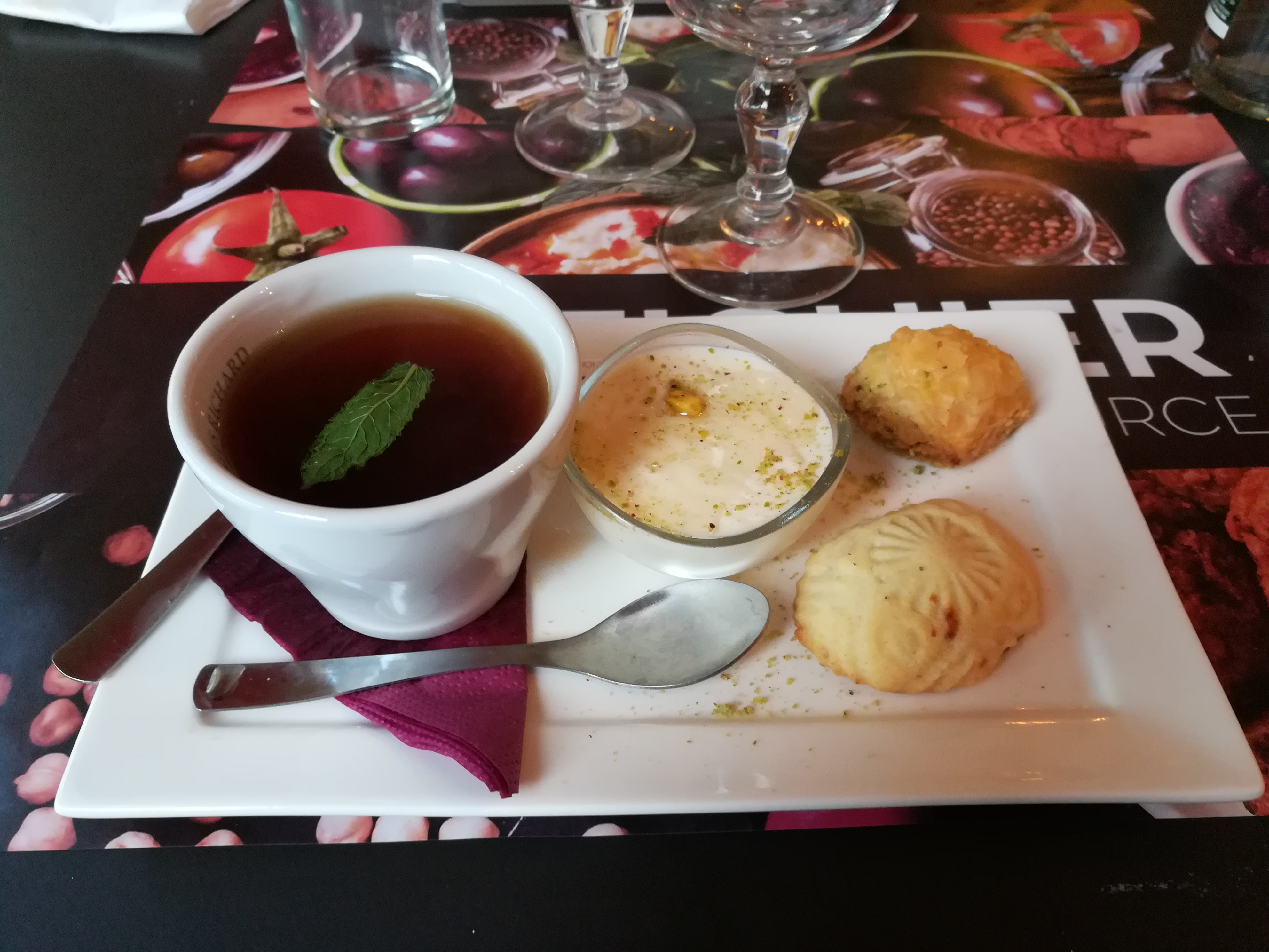 Repas entre collègues ce midi, très bon accueil du patron et repas très agréable. Les assiettes sont belles et parfumées, nous y retournerons certainement en privé ! Gros coup de cœur pour le dessert mouhalabiya !!!