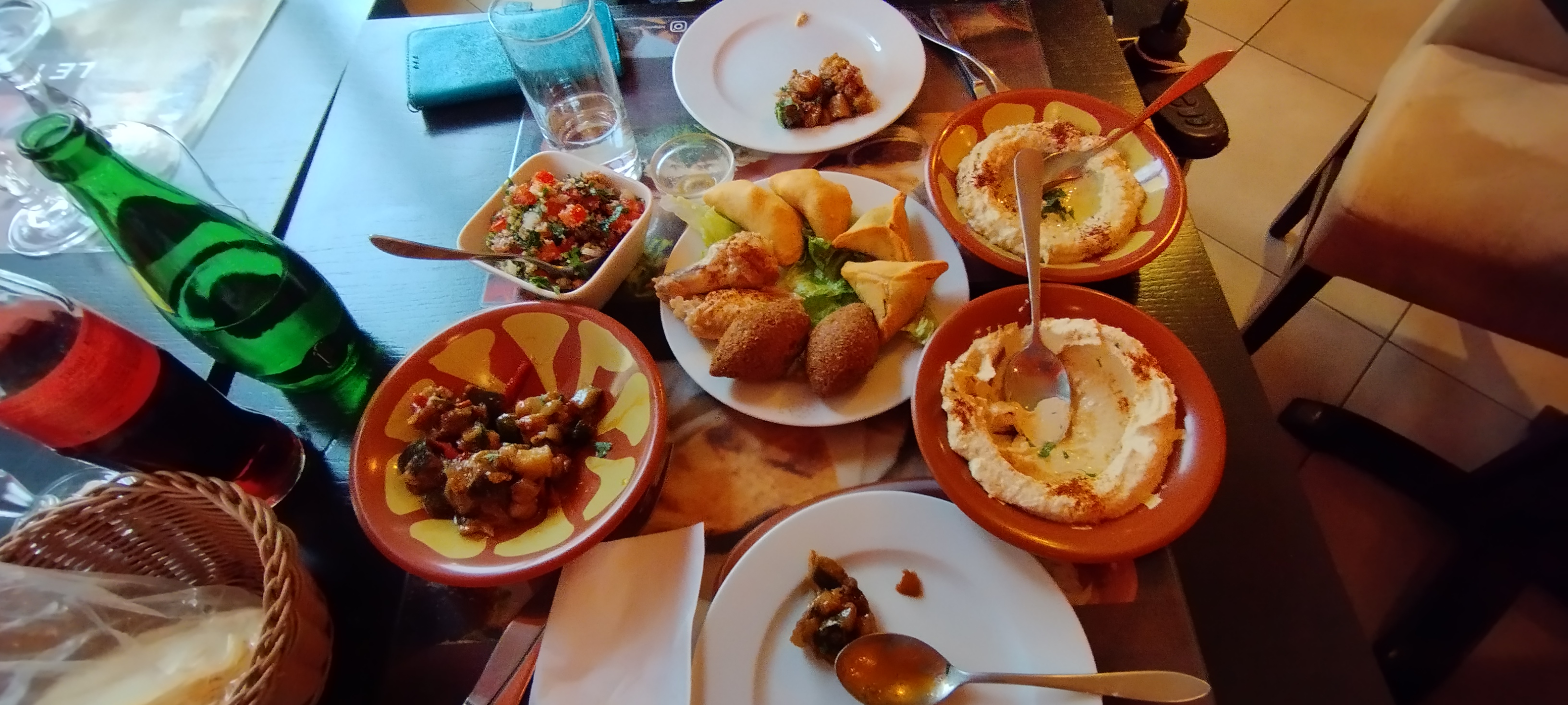 Il faut découvrir ce resto, le papa du patron, hyper sympa ! Et à table, pas mal de découvertes ! Houmous et taboulé (frais délicieux) Et pour le reste....... A vous de venir !!