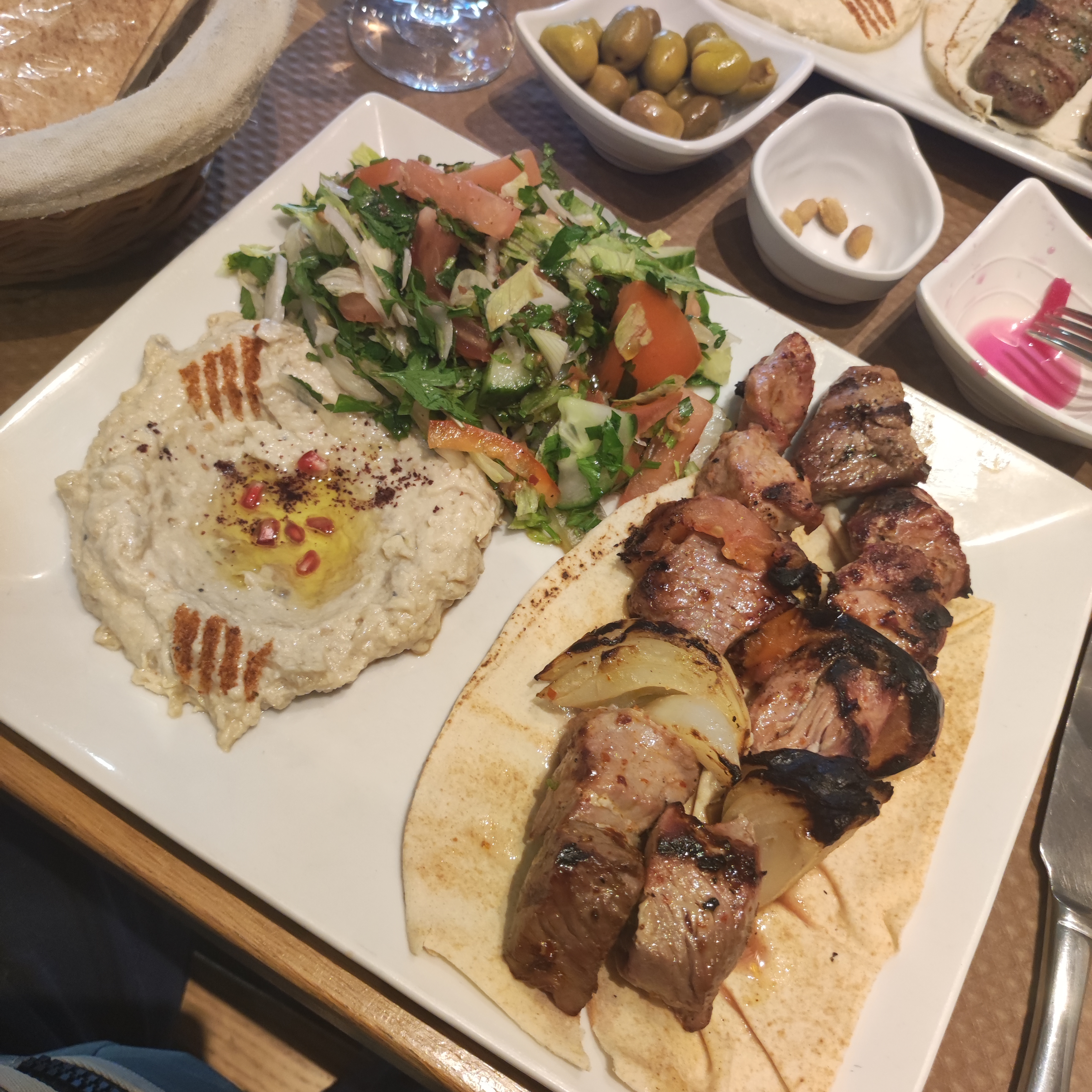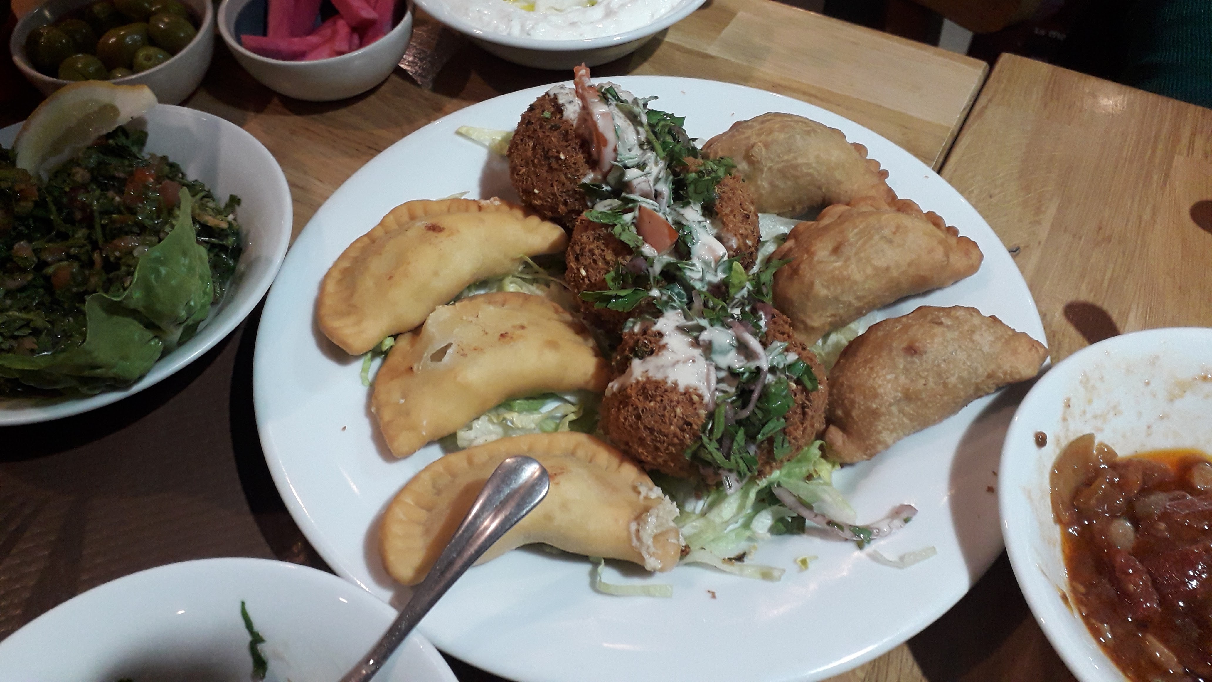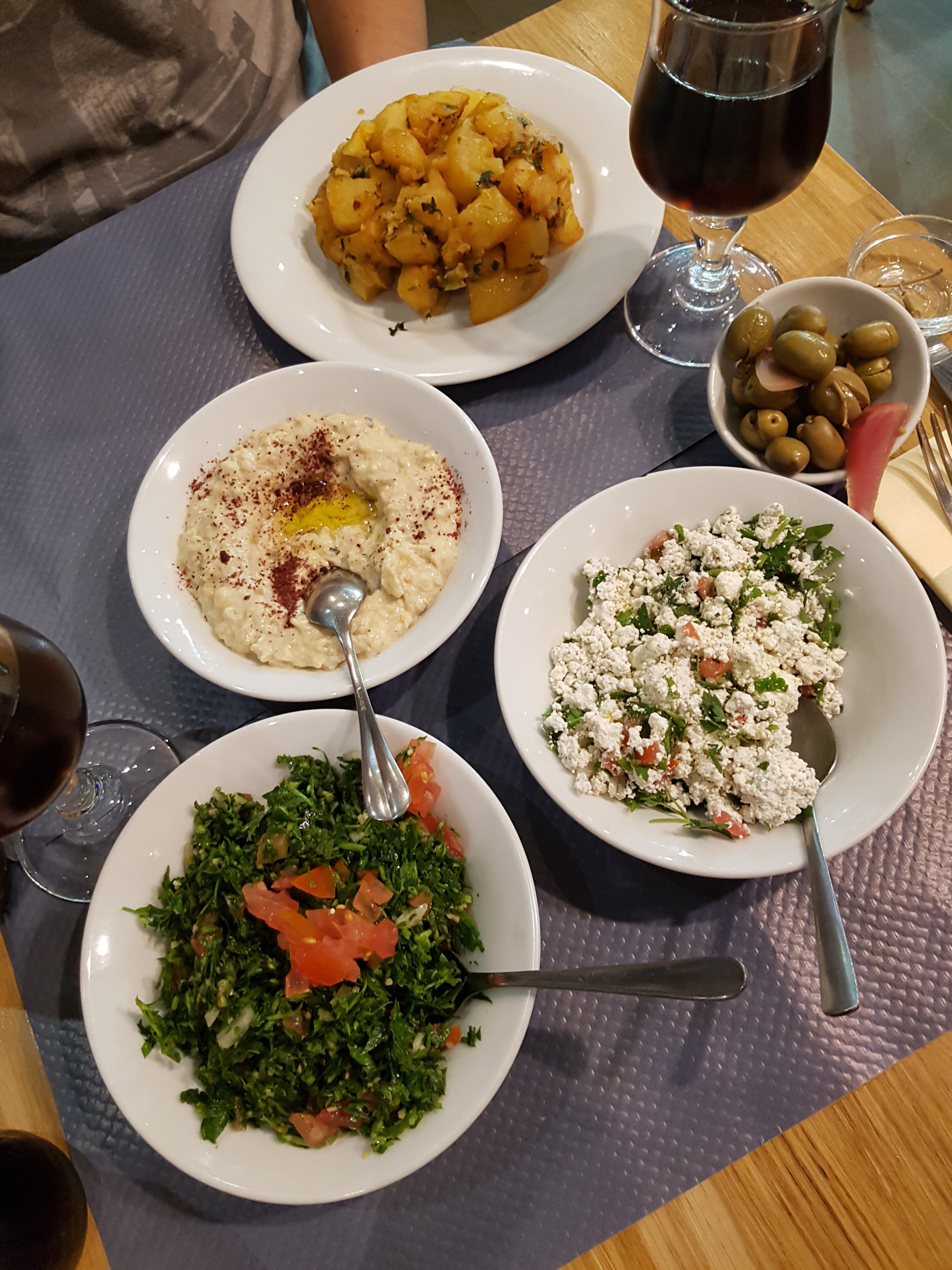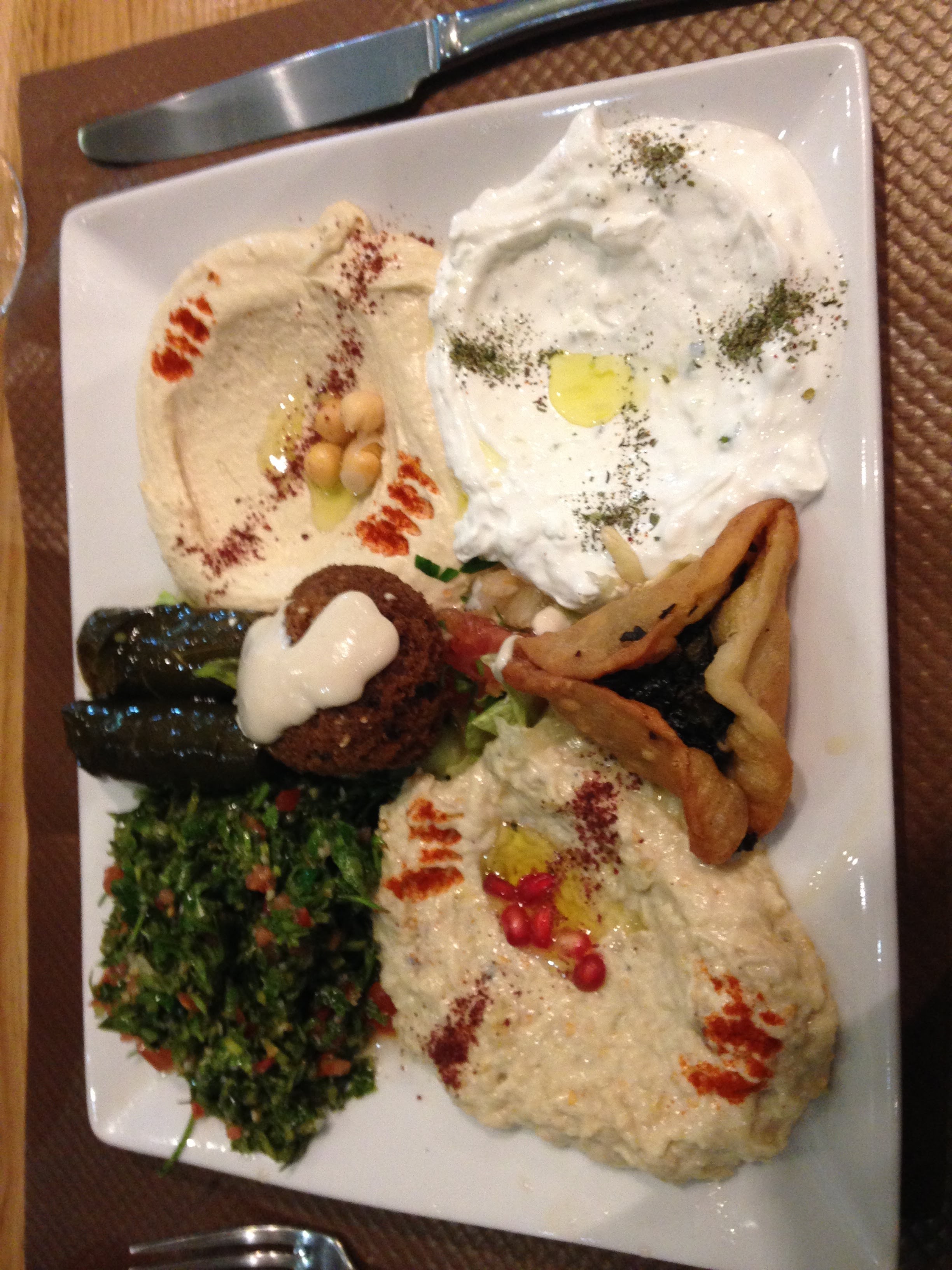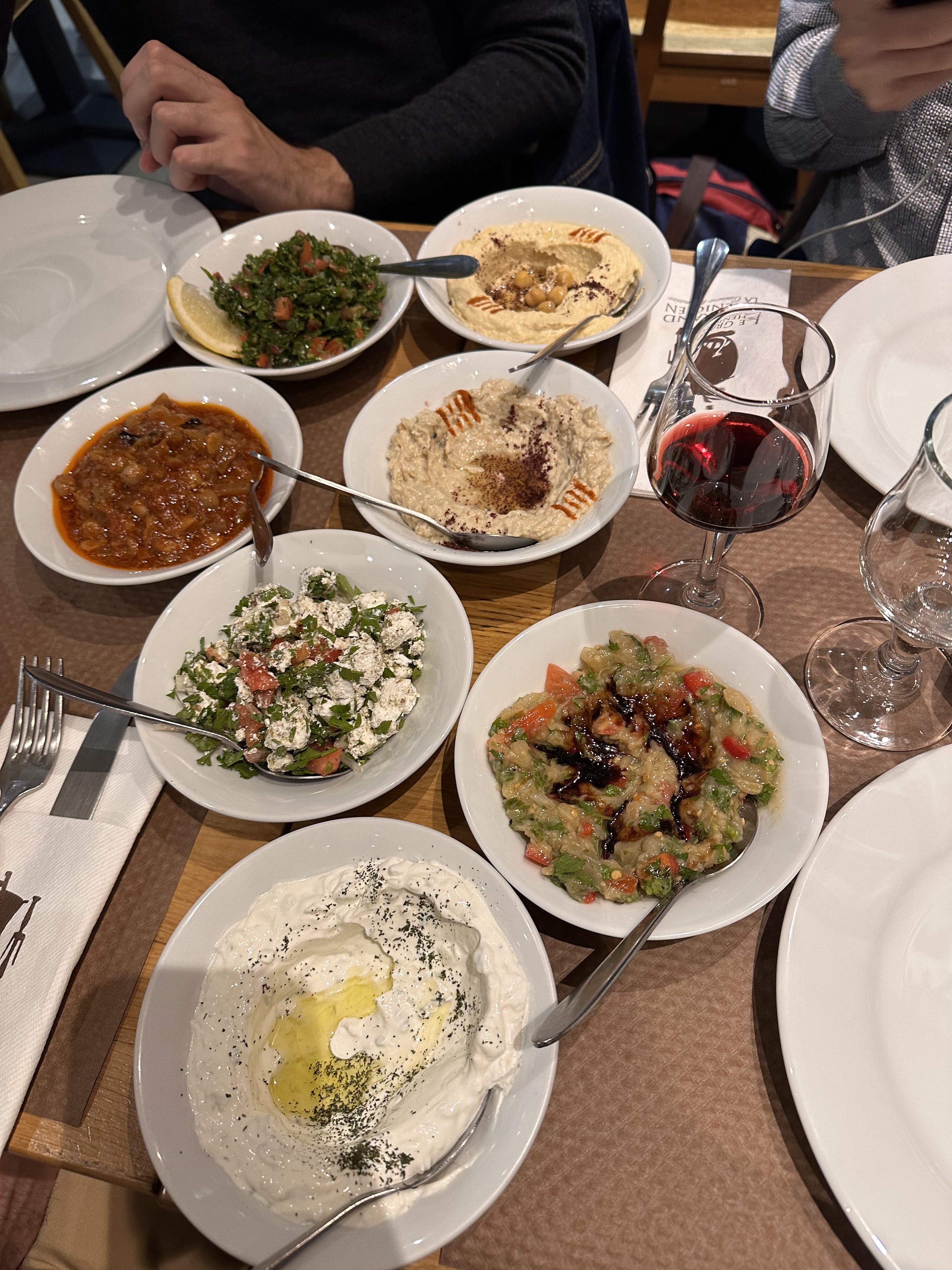 Nous avons dîné dans ce restaurant car il était ouvert tard. Nous avons opté pour l'option assortiment de Mezé pour 2. Le houmous n'était pas très bon et les mezé chauds étaient fades et secs (je me demande si ce n'est pas du congelé passé au four). Honnêtement 35€ pour 4 petits dips froids + 1 assiette (avec 6 beignets frits), le tout fade, ce n'est pas un bonne affaire, je ne recommande pas !