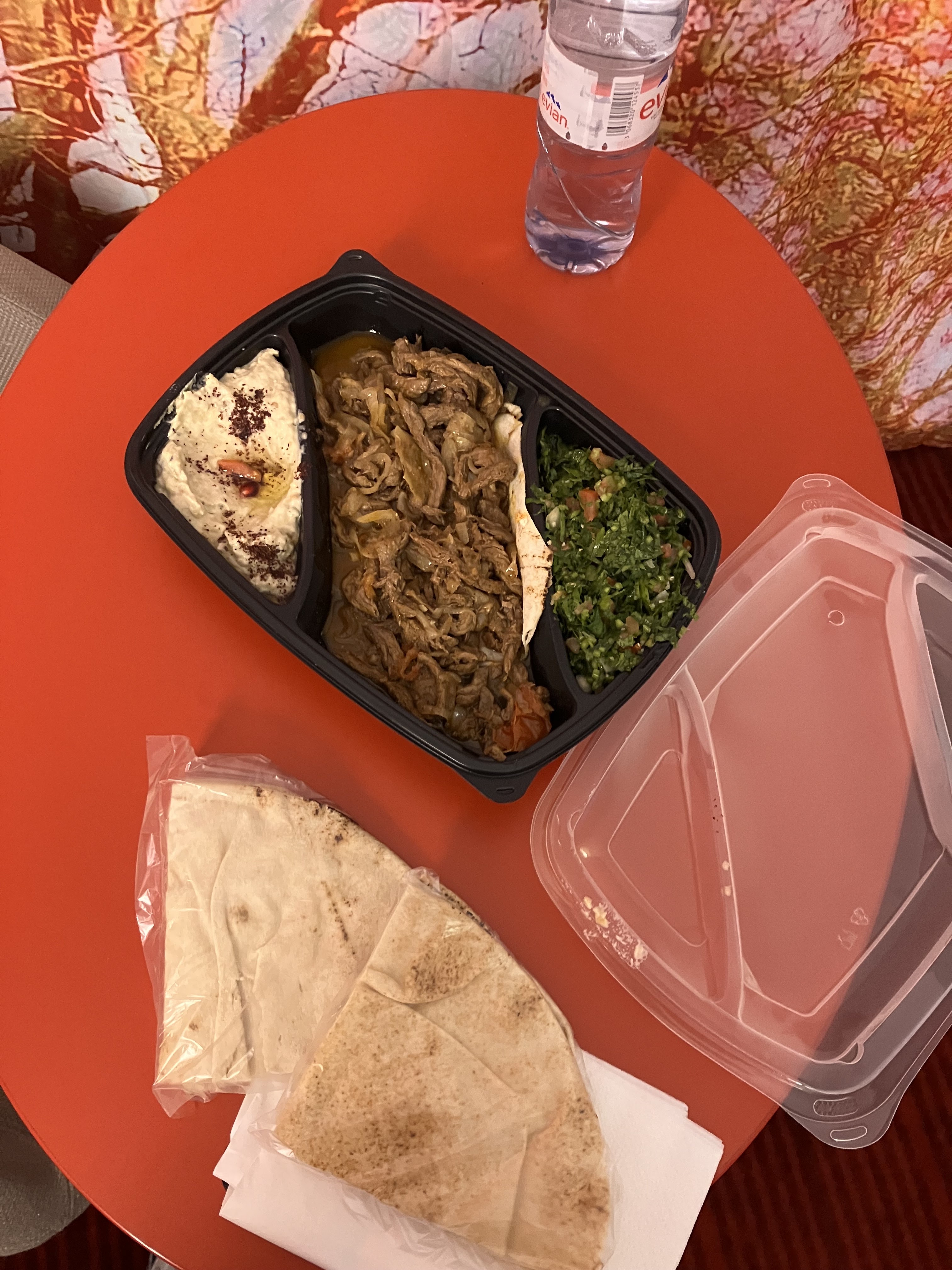 Mon resto libanais favori 👍 le chawarma mixte servi avec des pommes de terre et houmous (d'autres accompagnements possibles) : une tuerie 👌 Même leur thé à la menthe est trop bon ✌️