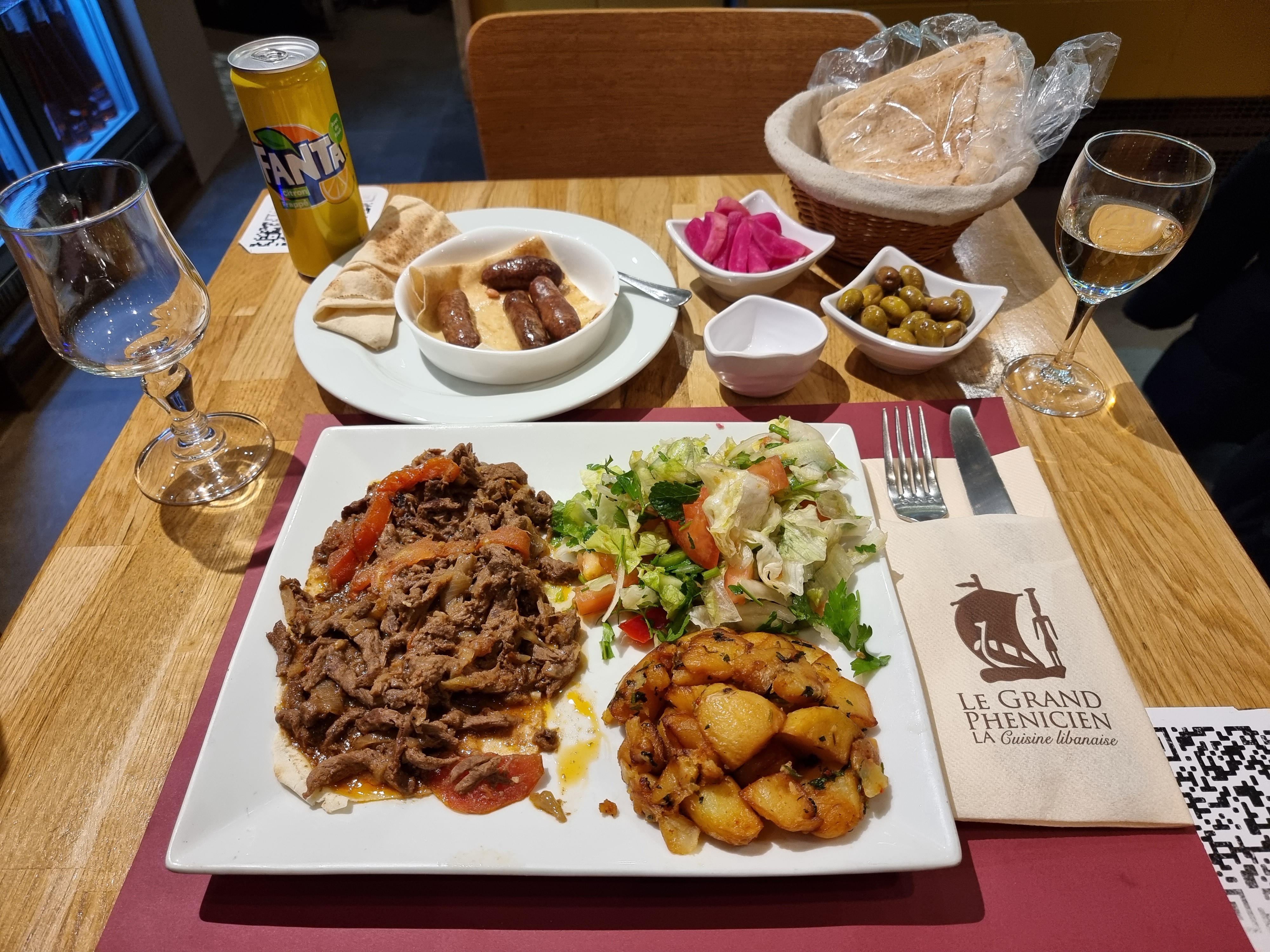 J'ai visité ce restaurant pour un déjeuner en milieu de semaine avec un grand groupe, nous étions environ 18 personnes. Le plus grand compliment que je puisse faire au Grand Phénicien est que, vraiment, si vous fermiez les yeux et mangiez la nourriture, vous pourriez facilement être au Liban. Chaque plat était totalement authentique. Le restaurant n'est pas très chic, mais il est fonctionnel et le service était rapide. A recommander absolument !