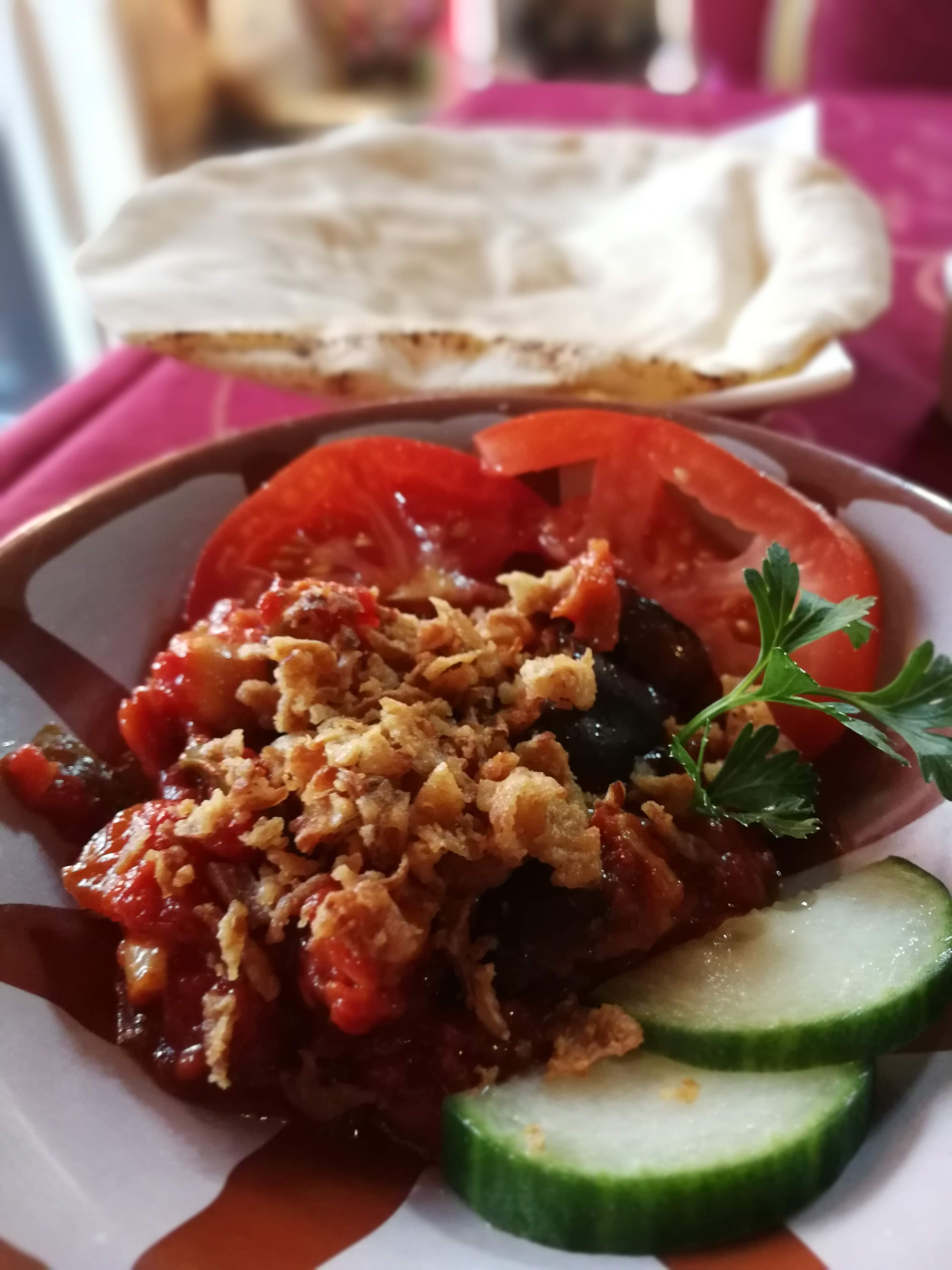 Une bonne adresse adaptée au végétarien, le cadre est dépaysant, la jeune serveuse nous a guidée avec bienveillance vers le menu découverte le plus adapté à notre exigence éthique végétale... Un houmous de pro parole de végan !