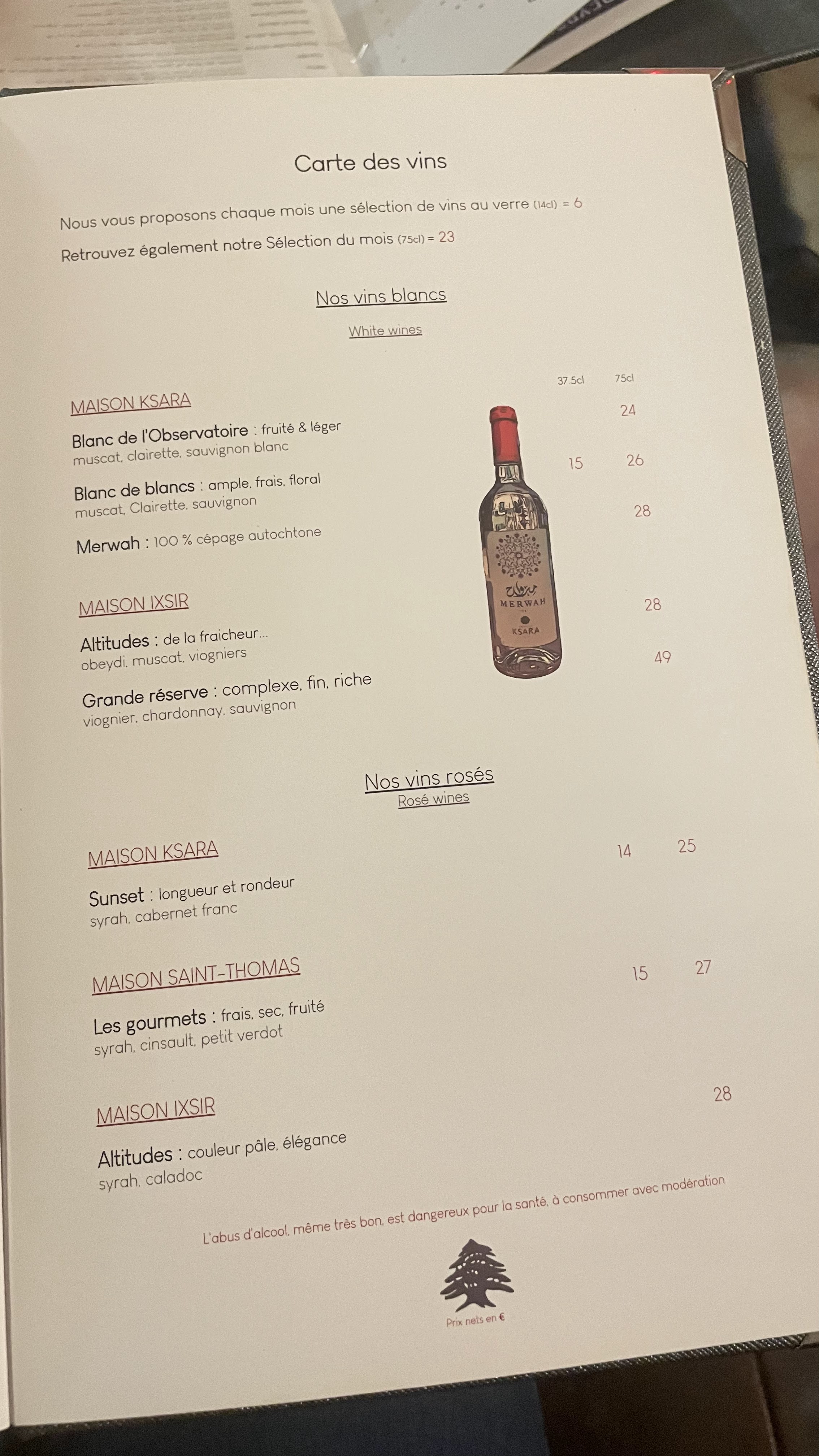Je ne pensais pas rédiger cet avis. J’adore ce restaurant pour sa cuisine libanaise que je considère comme une des meilleures de Paris. J’ai toujours mangé dans la salle supérieure ou en terrasse le midi. Et là, j’ai voulu réserver une table le soir et c’était une expérience HORRIBLE. L’odeur de la cave avec l’humidité, le chauffage installé en direction de la table des clients alors qu’il faisait 25 degrés ce jour là, les mezzes qui ne sont pas présentés et le serveur froid/peu aimable/pas disponible, l’accès aux toilettes qui passe pas un escalier exigu, passant par la cuisine où des aliments tombés ne sont pas nettoyés, les toilettes avec un écran de pub à l’intérieur (???), les serveurs qui s’appellent en CRIANT entre les deux étages et qui s’engueulent devant les clients. Mais vraiment le PIRE qui me pousse à rédiger cet avis c’est le TRAFICOTAGE DU VIN BLANC en versant un vin « sans étiquette » dans une bouteille « luxueuse » et le SERVIR À UNE TABLE SANS LA DEBOUCHER DEVANT EUX. Je n’avais absolument pas cette image du restaurant et je suis extrêmement déçue et choquée. Cette tension tout au long de la soirée m’a vraiment gâché l’expérience et je ne reviendrais plus. Il y a un travail à faire sur l’équipe du restaurant et sur son modèle commercial (au moins).