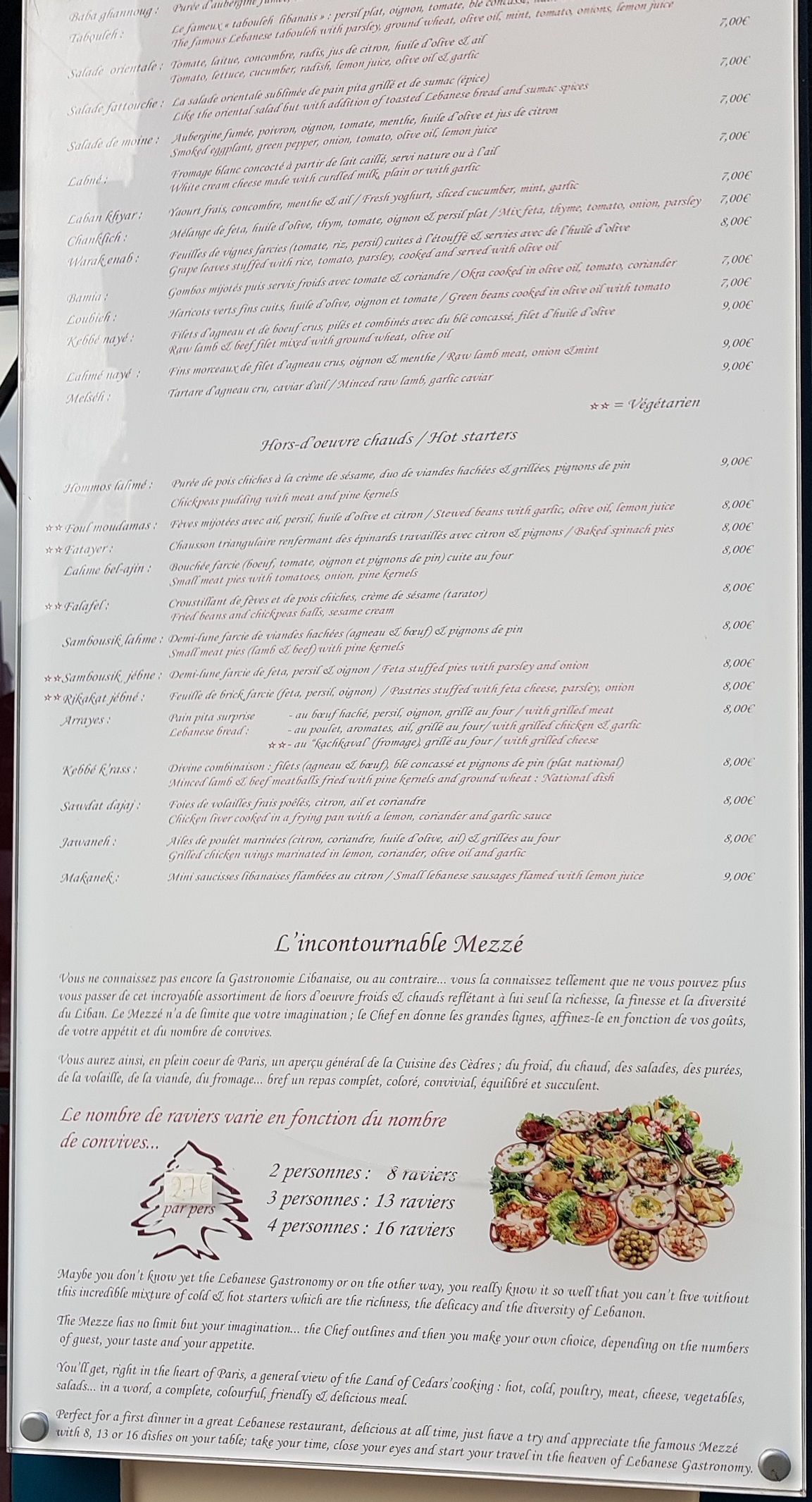 Afin de profiter de la palette des saveurs de la cuisine libanaise je vous conseille de choisir les mezze avec un verre de vin rouge. Ce restaurant a de l'expérience, tout est très bien préparé et goûteux.