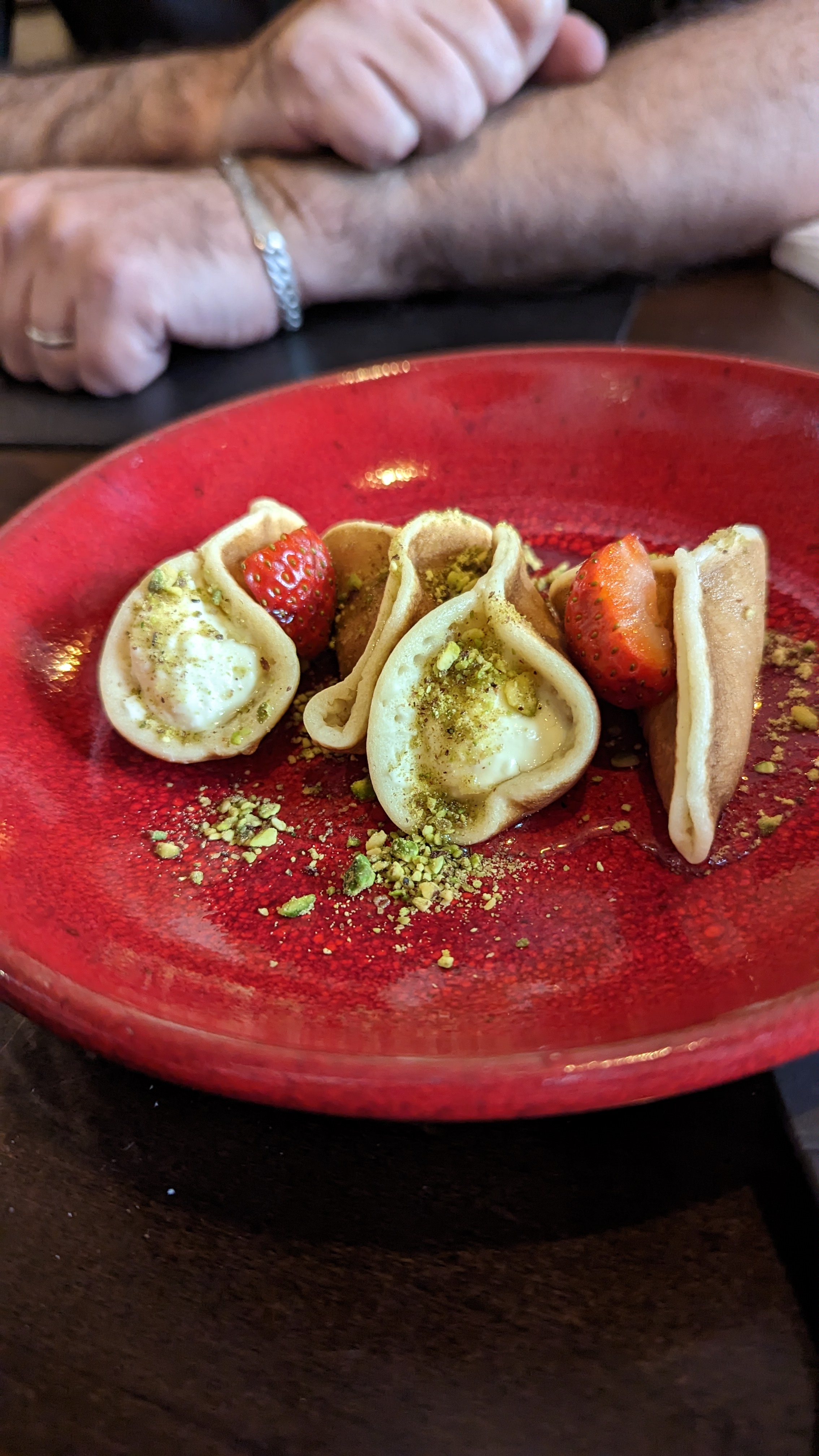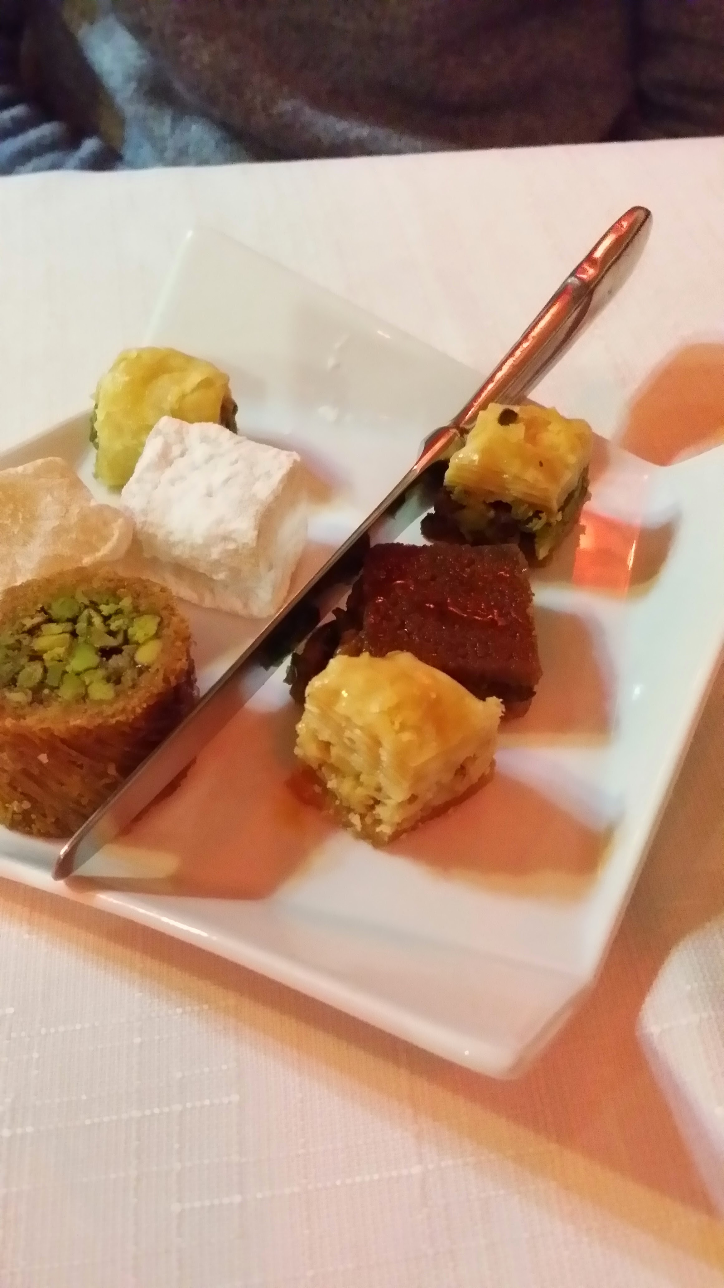 Clients annuels (nous habitons très loin) nous avons comme d’habitude été reçus comme de vieilles connaissances, vraiment chaleureusement. Les mezzés étaient fantastiques, les desserts trop bons. A la prochaine fois, pour le même plaisir.