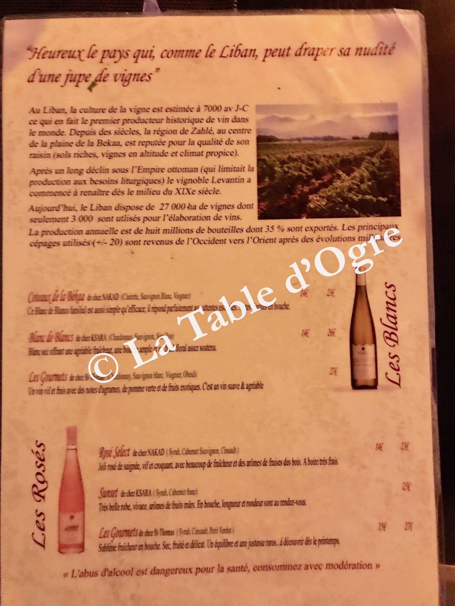 Ah ! Le changement ! Pas que du bon !!! Pourquoi avoir retiré le vin carafe ? Pourquoi mettre des germes de soja sur les messe Cuisine libanaise ?? J en doute Sous l ancien régime le. Restaurant était bien plus véritable ! Dommage !