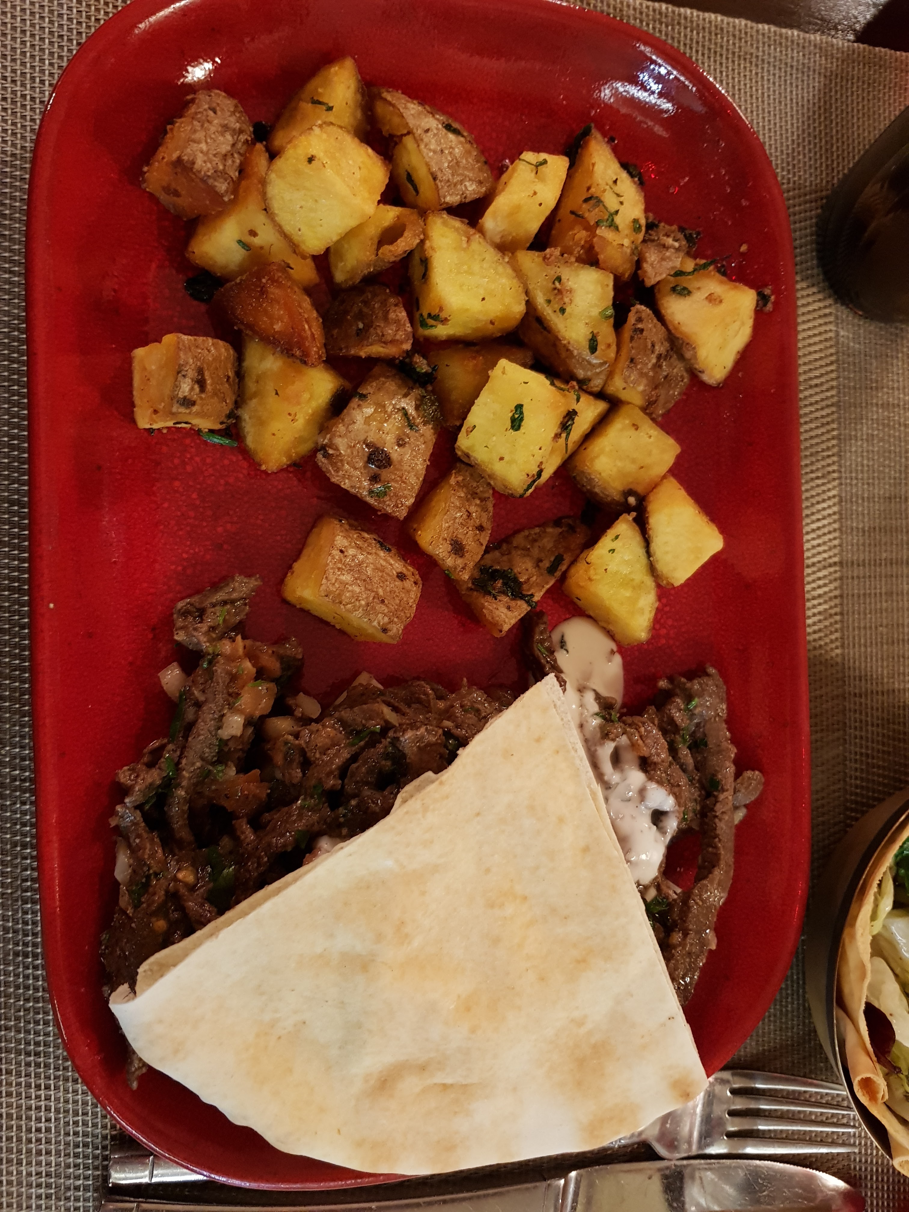Un chawarma trop cuit et servi avec des pommes de terre sarladaises très grasses et une salade frisée... où est la cuisine libanaise que j'ai toujours dégustée dans ce restaurant. À fuir maintenant
