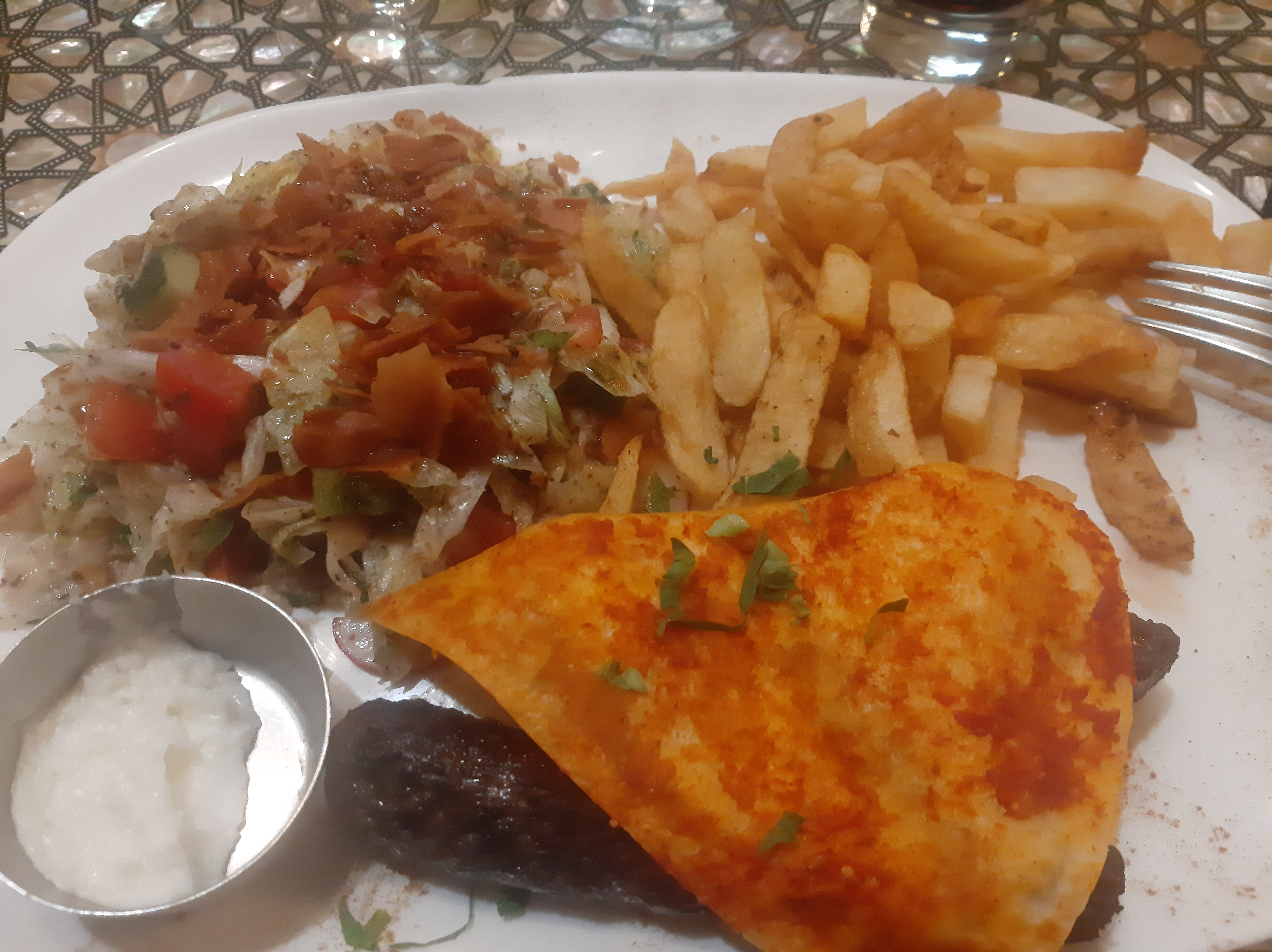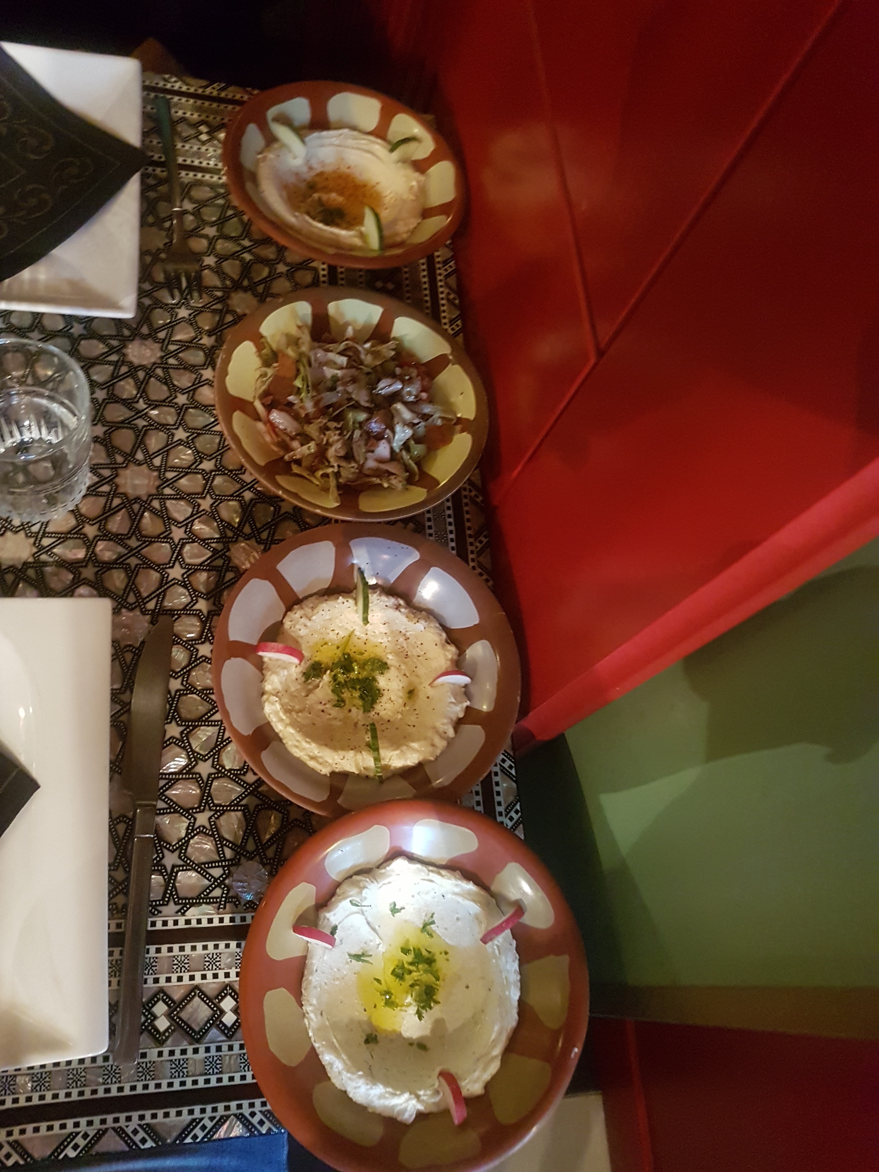 Je ne connaissait pas la cuisine Libanaise donc c'était le grand début pour moi. J'ai trouve le service correct niveau temps d'attente et accueil. Pour les plats la mezee pour 2 est top car on peut gouter de tout. C'était bon et bien présenté.