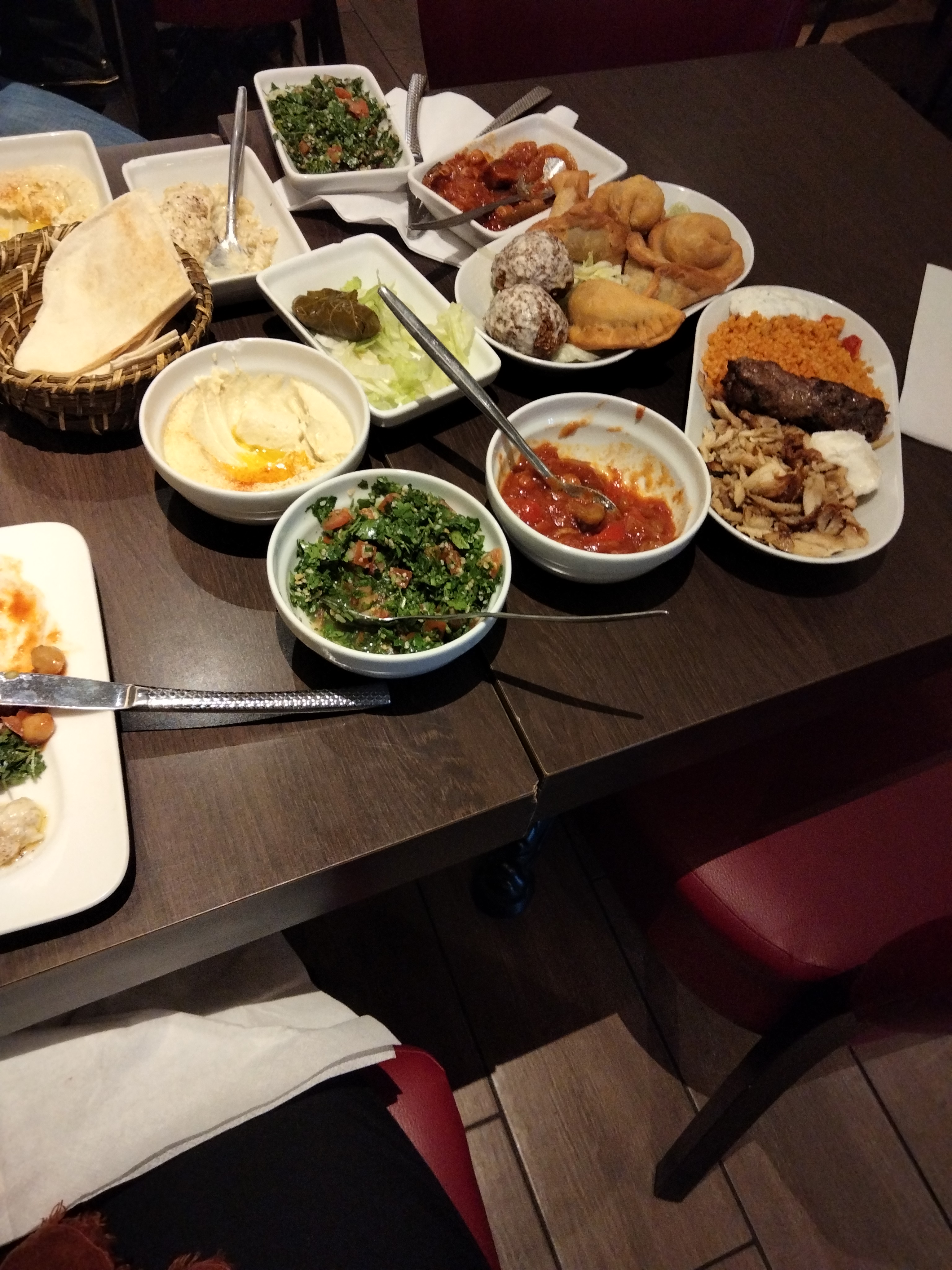 arrive là par hasard car notre libanais habituel était plein. et surprise ! c'est le meilleur de la ville ! (détrône même les quelques libanais Parisiens que j'ai pu goûter.) mezze riche en goût. personnel aimable malgré la forte demande de plats à emporter. très a l'écoute. top ! c'est notre nouveau repère !