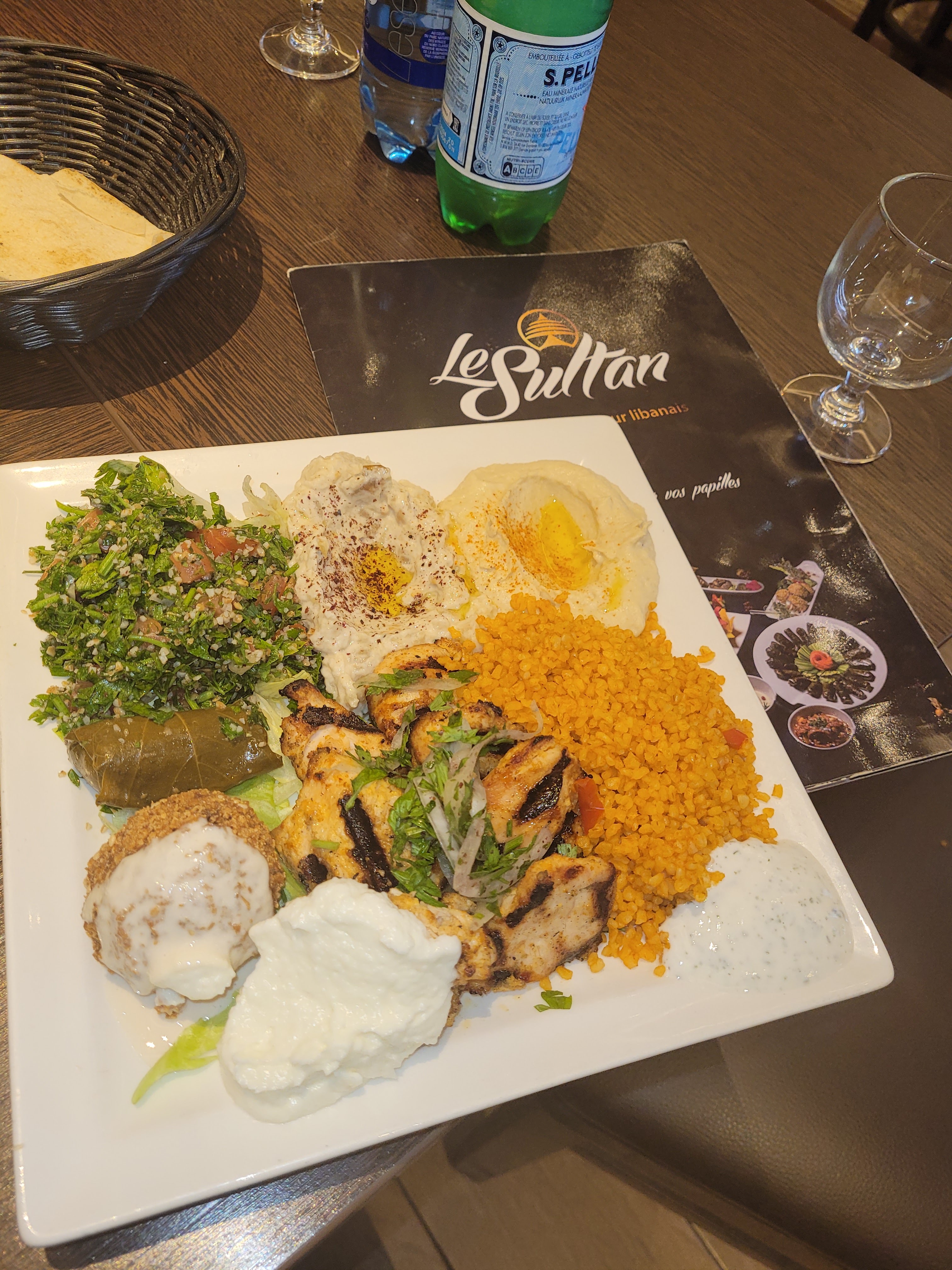 Merci au restaurant Le Sultan de nous avoir fait passer un super bon moment. On est venu un vendredi midi. L'accueil a été très chaleureux. Le service à table était très rapide et merci pour ce service au top! Le chawarma sur assiette était MAGNIFIQUE, le houmous avec le zit zitoun une folie gustative, le falafel et le kebé tout aussi extra. En fait tout était très excellent!!! La seule chose que moi je n'ai pas aimé c'était le mélange persil et menthe avec l'oignon, je pense qu'il faut apprécier ce mélange... L' assaisonnement était parfait pour tout le repas. Encore une fois mercii pour ce bon moment. Je recommande fortement pour des sorties en famille, entre amis ou entre collègues vous serez tjs les bienvenues pour faire voyager vos papilles au Liban!!! La salle est petite donc si vous êtes à plusieurs réservez avant ;) A bientôt!!!