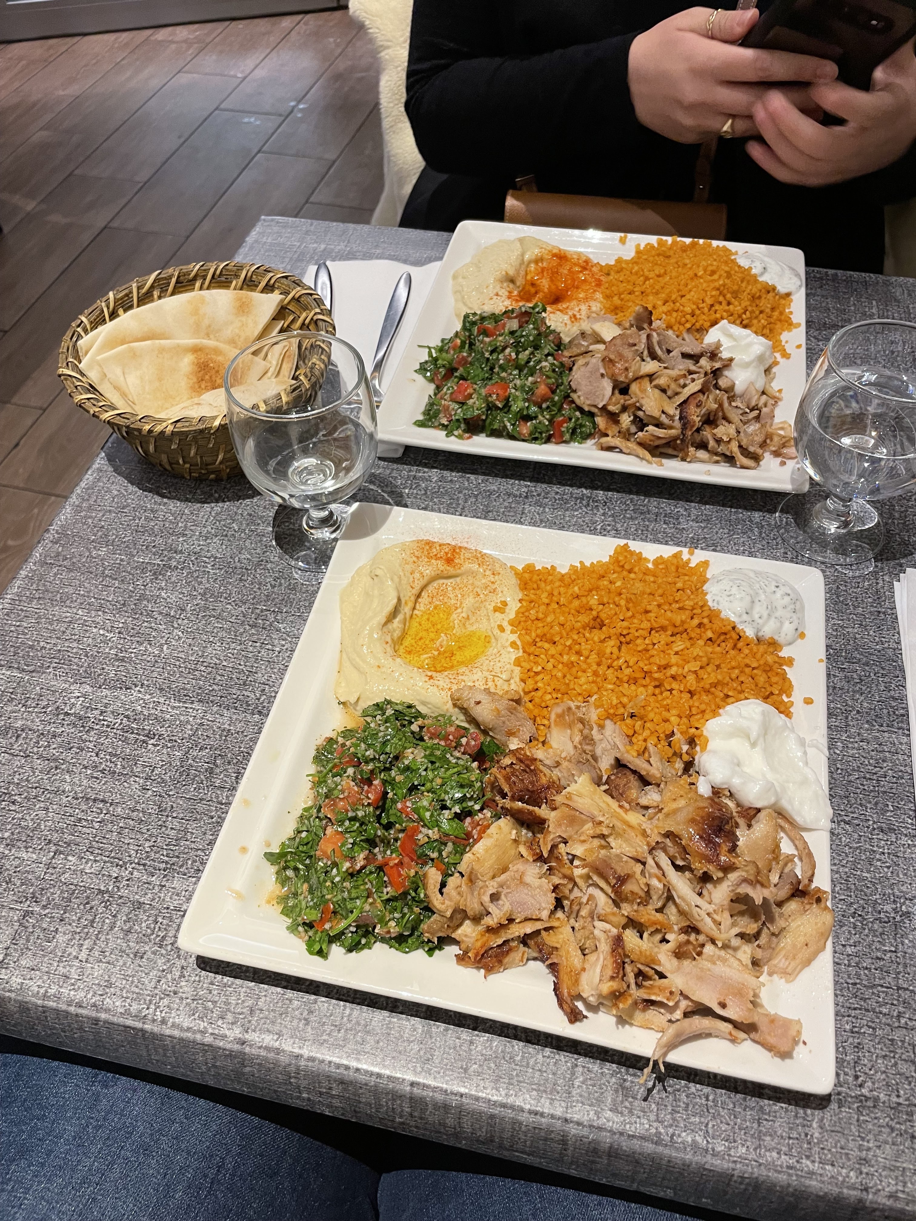 Accueil chaleureux, situé au coeur de Strasbourg, entrée délicieuse, shawarma assiette garnie et incroyable, je recommande vivement cette adresse.