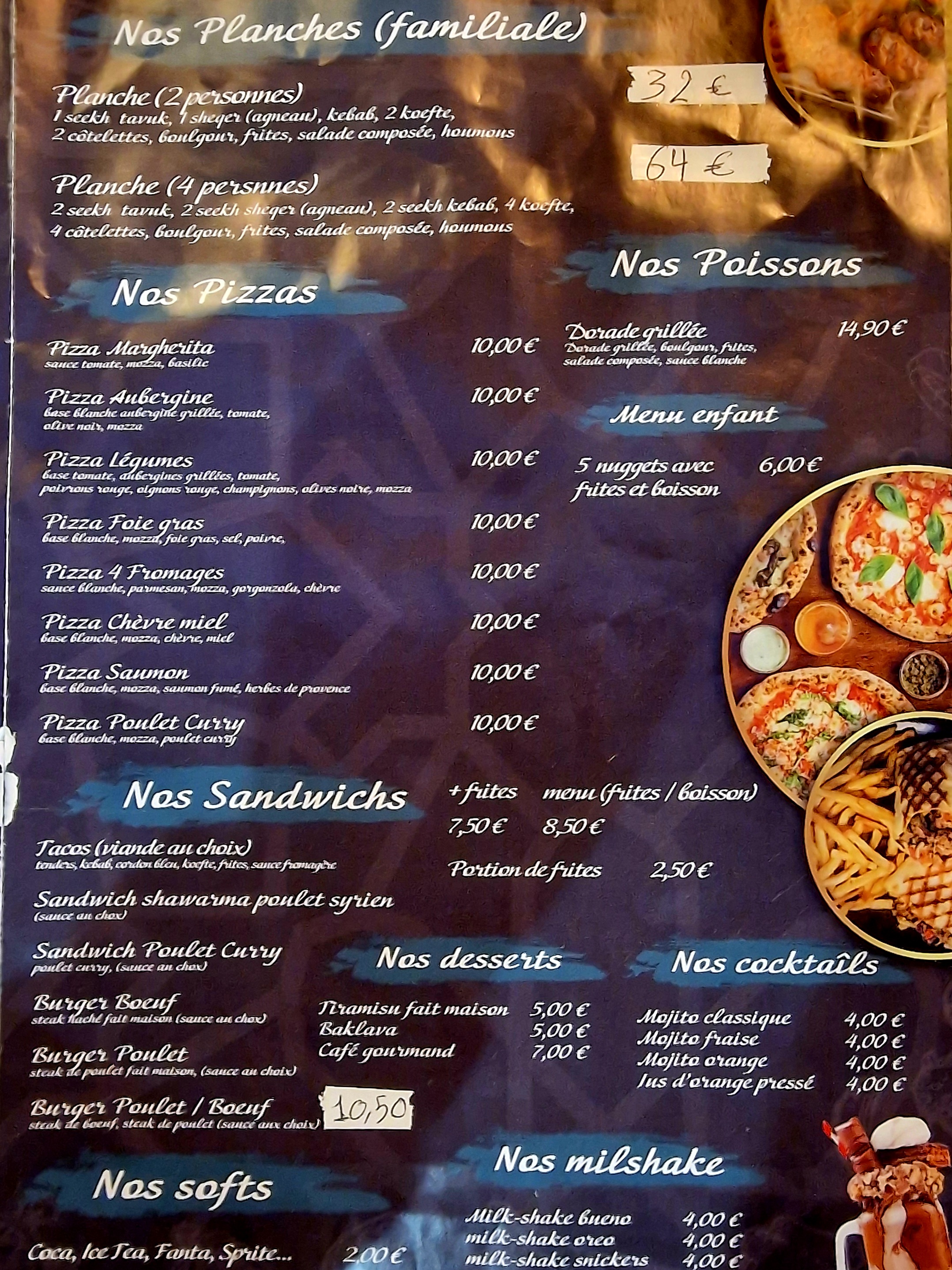 Me suis fait livrer à l hôtel, je suis je recommande pas la livraison, 5 morceaux de texte de brochettes avec la graisse, et les quantité maigre pour 16 euros, c'est abusé, ne prenez pas en livraison ils anarquent, je recommande pas