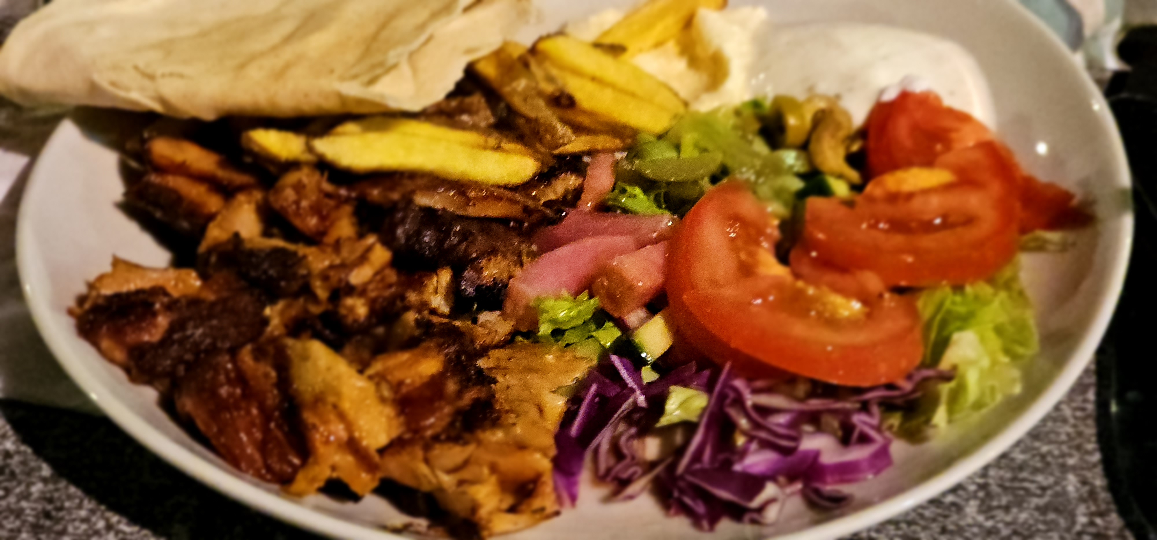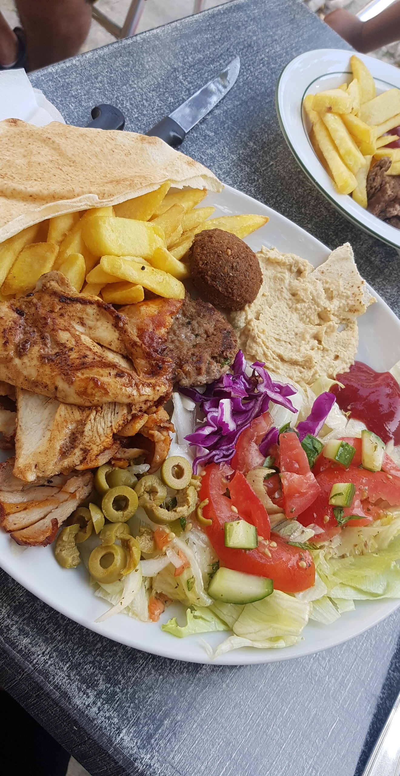 Super bon !! 1 assiette agneau délicieuse 1 assiette kafta avec purée de pois chiches extra ! 1 kebab frite 1 assiette kebab Toutes les assiettes avaient des légumes frais c'était vraiment très bon Bon accueil et bons conseils pour les touristes que nous sommes . A conseiller !!
