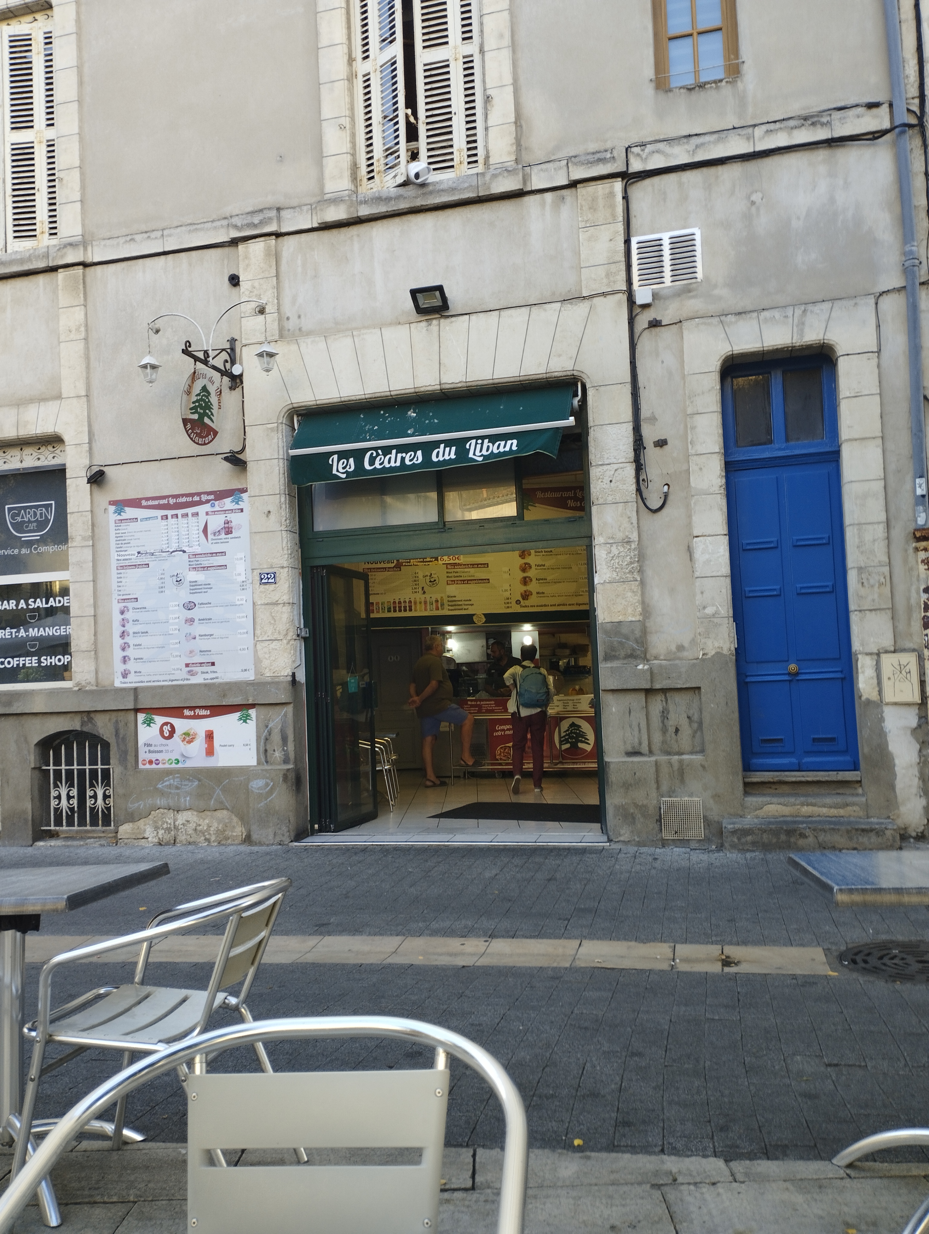 Les Cèdres du Liban sont un restaurant Kebab parfait pour manger des produits frais et parfumés aux goûts inimitables des épices orientales. Beaucoup de clients viennent dans cet établissement pour déguster entre autres, les délicieuses spécialités de taouk (poulet en brochettes ou émincé à l'assiette) marinées au citron, épices et yaourt et autres petits secrets de la maison. L'établissement est réputé et les vrais amateurs si nombreux, dont ceux qui ont hérité de cette culture culinaire, ne se trompent pas. Le personnel est très sympathique, et ne manque pas d'humour. On peut déjeuner dehors sur le Cour du Temple, tranquillement installé au calme sur cette place ombragée.