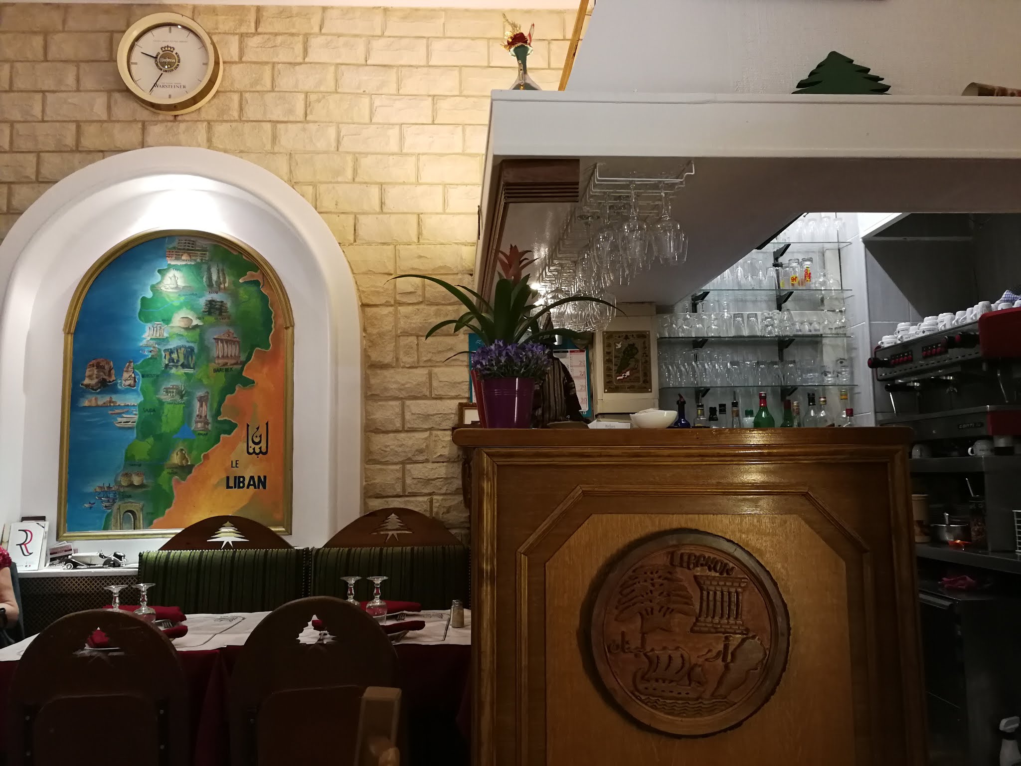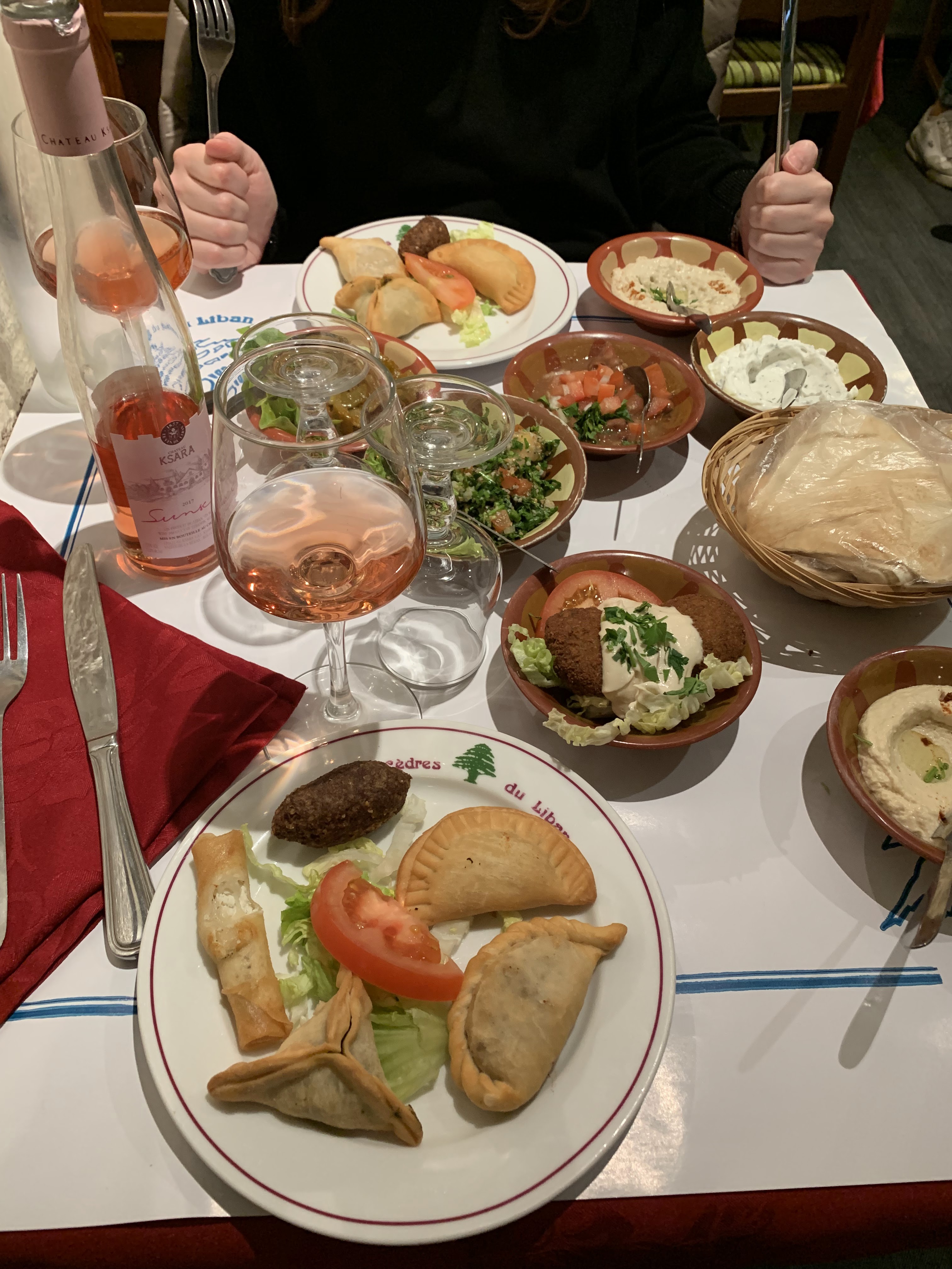 Restaurant à la décoration sobre où nous avons été bien accueilli et, conseillé dans la présentation de notre menu avec pour entrée un assortiment de 12 plats typiques libanais et ensuite plats principaux faits sur place inclus dans notre box. Hors box, nous avons dégusté un bon vin rouge du Liban (Ksara) et bien pris un dessert frais et délicieux. Nous avons passé un très bon moment dépaysant.