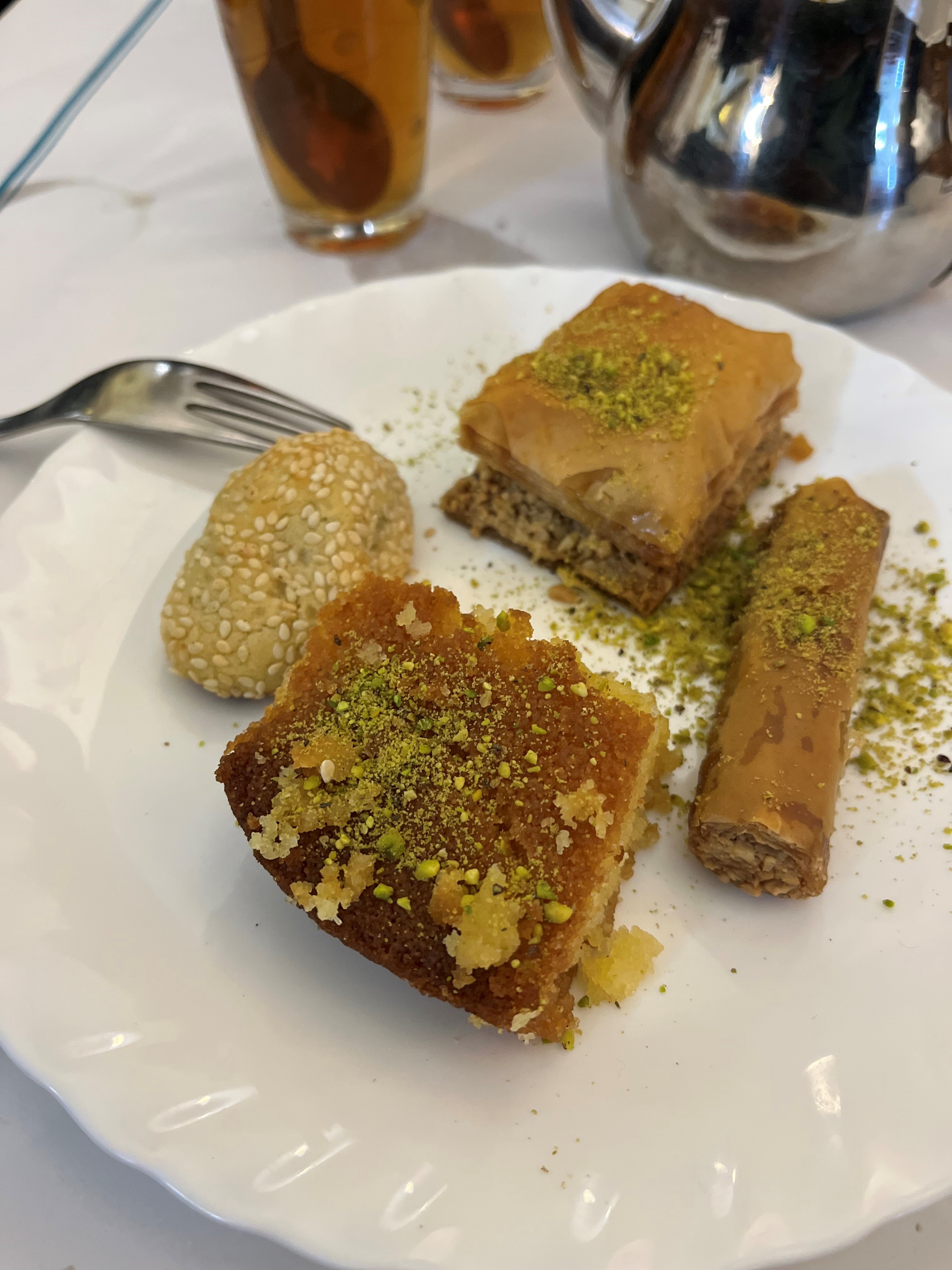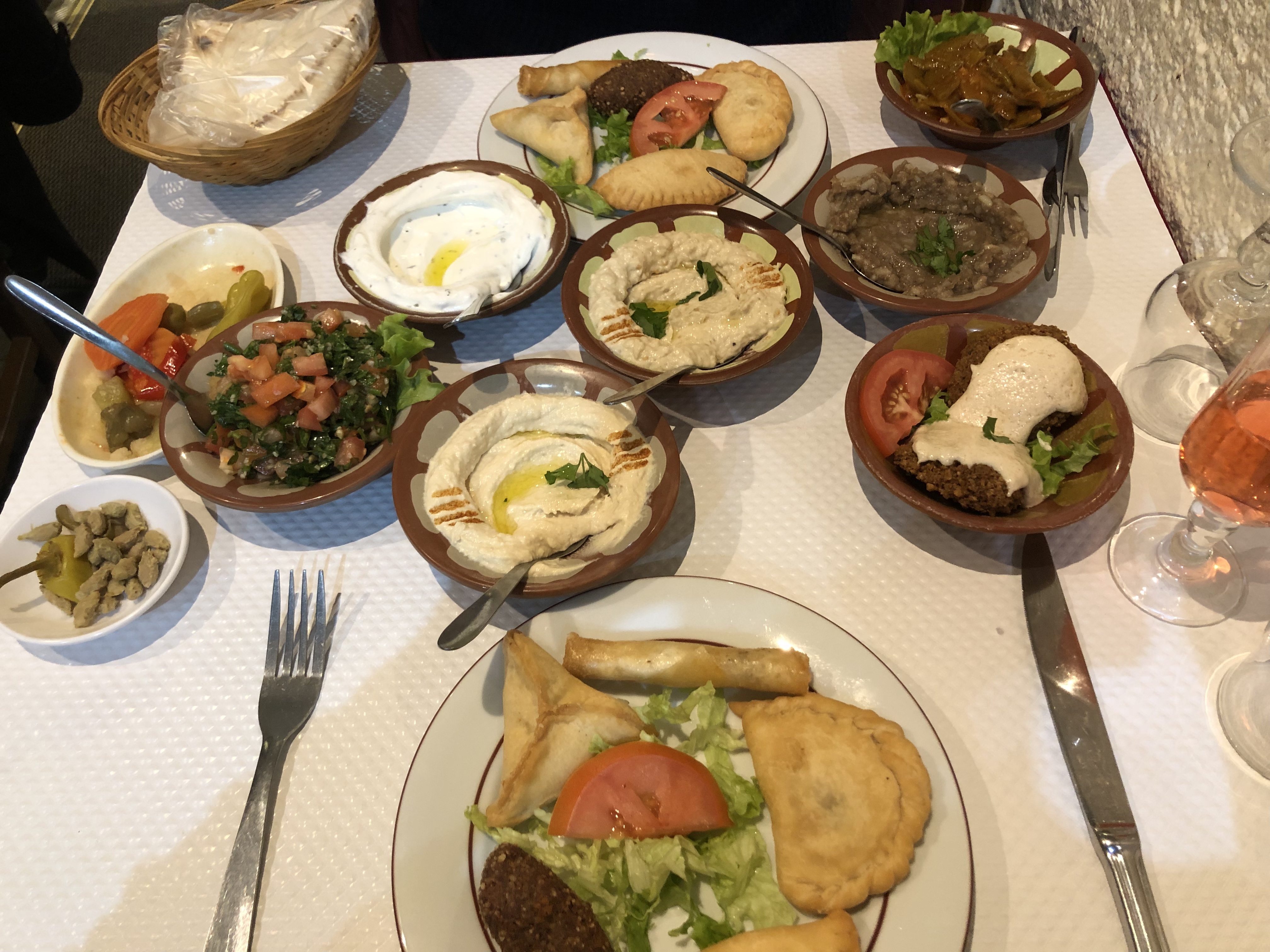 Accueil adorable, un mezze, un verre de vin on finit par un café et deux bonnes petites pâtisseries et c'était un repas libanais parfait