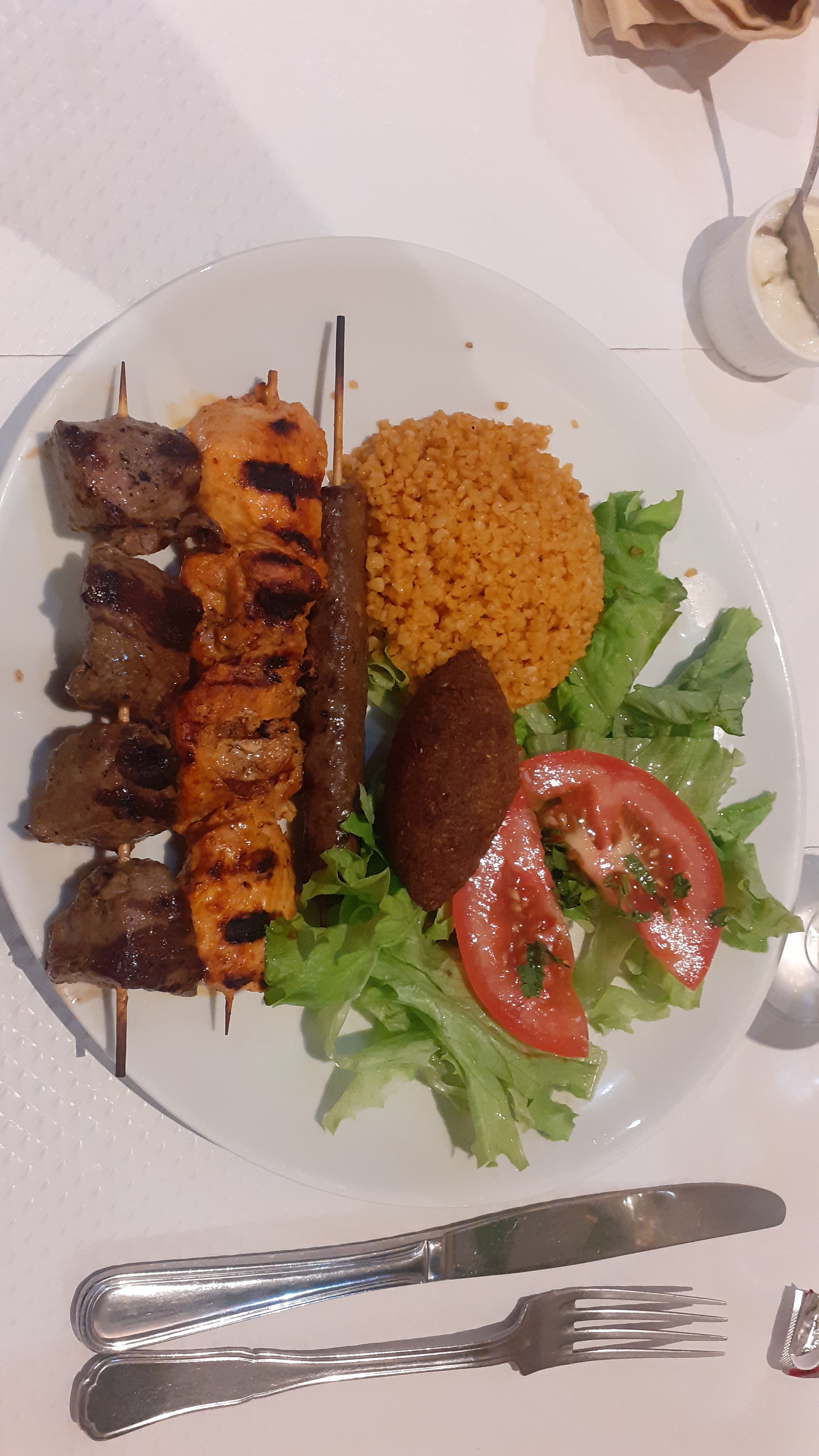 Bonne expérience qui était notre première dans un restaurant libanais, cuisine savoureuse, service copieux, accueil chaleureux.