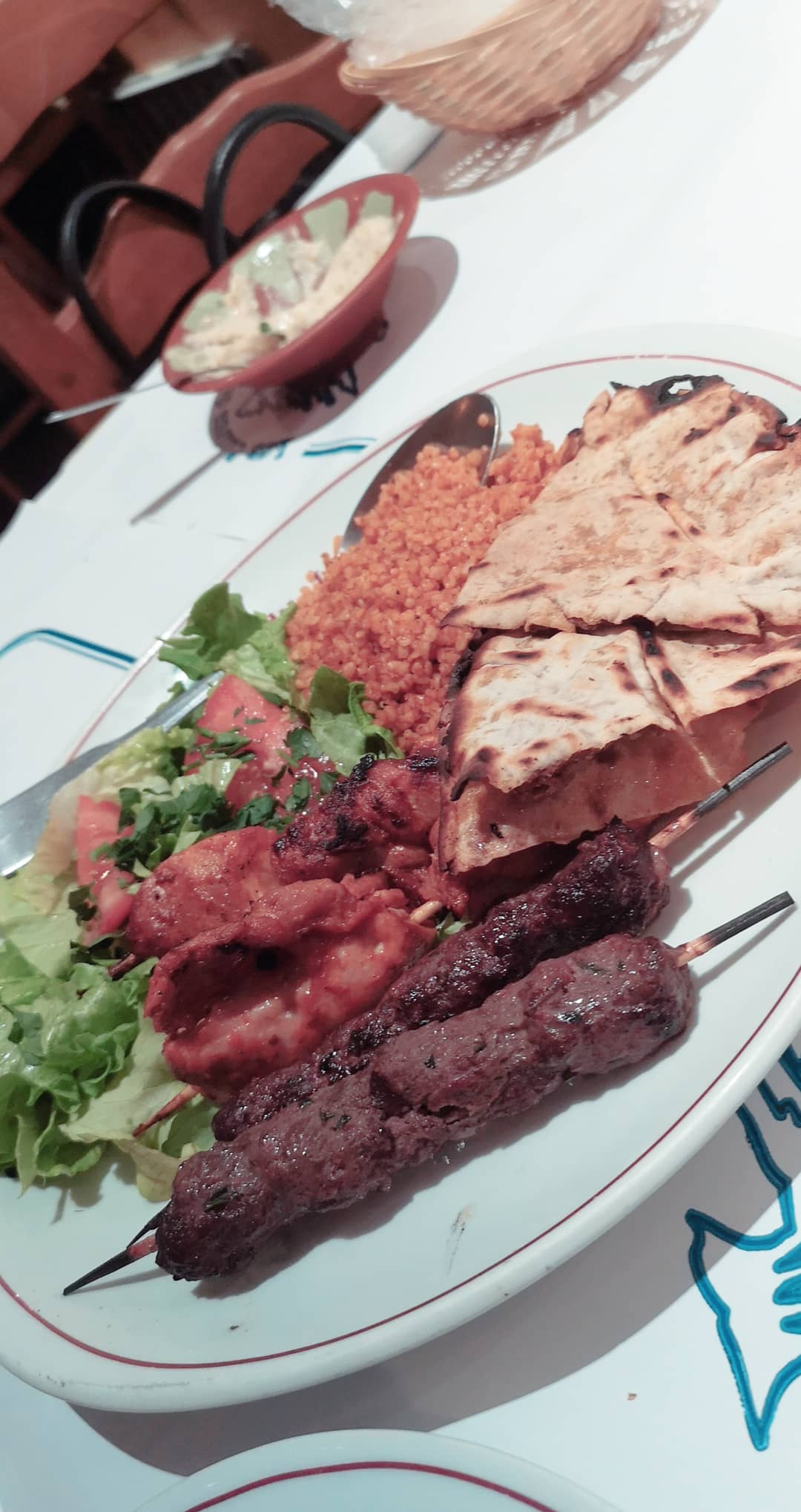 Découverte de ce restaurant, accueil chaleureux et comme dit le proprio :au plaisir. 😉Bonne cuisine avec assortiment d entrée, grillade, dessert et thé à la menthe. On sort avec un ventre qui n en veut plus ! 😁 Je recommande et surtout réserver