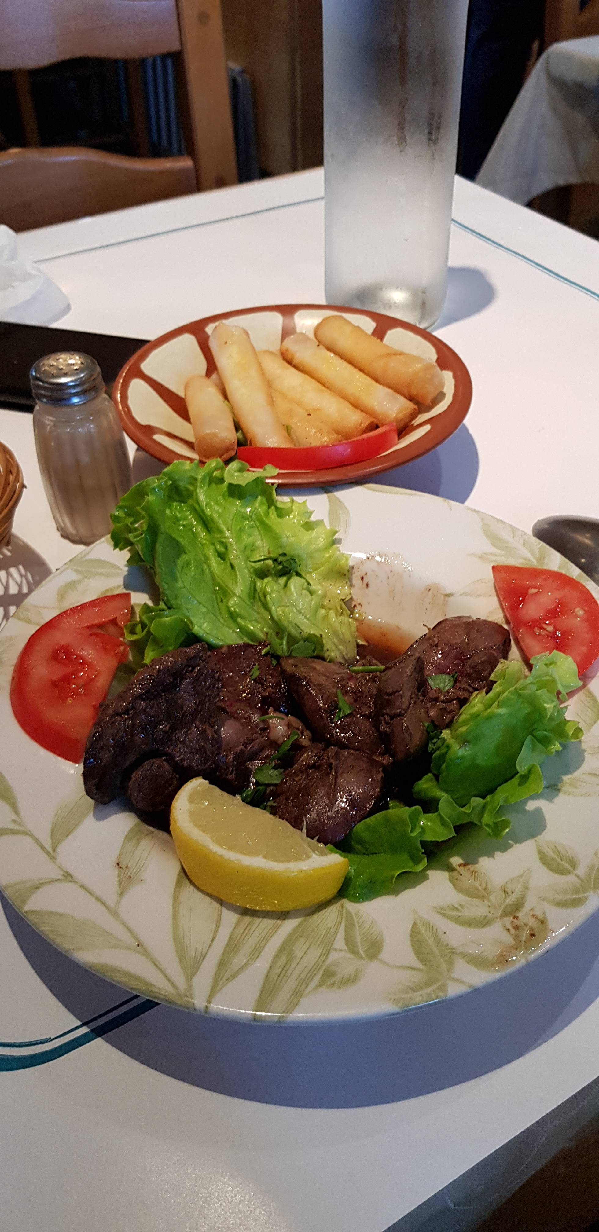 Accueil très sympa du patron et de son collègue😊 Des mezzes frais et fait maison👍🏻 En plat un foie de volaille minute, à la place du citron fait avec de la mélasse de Grenade Topissime 👌🏼