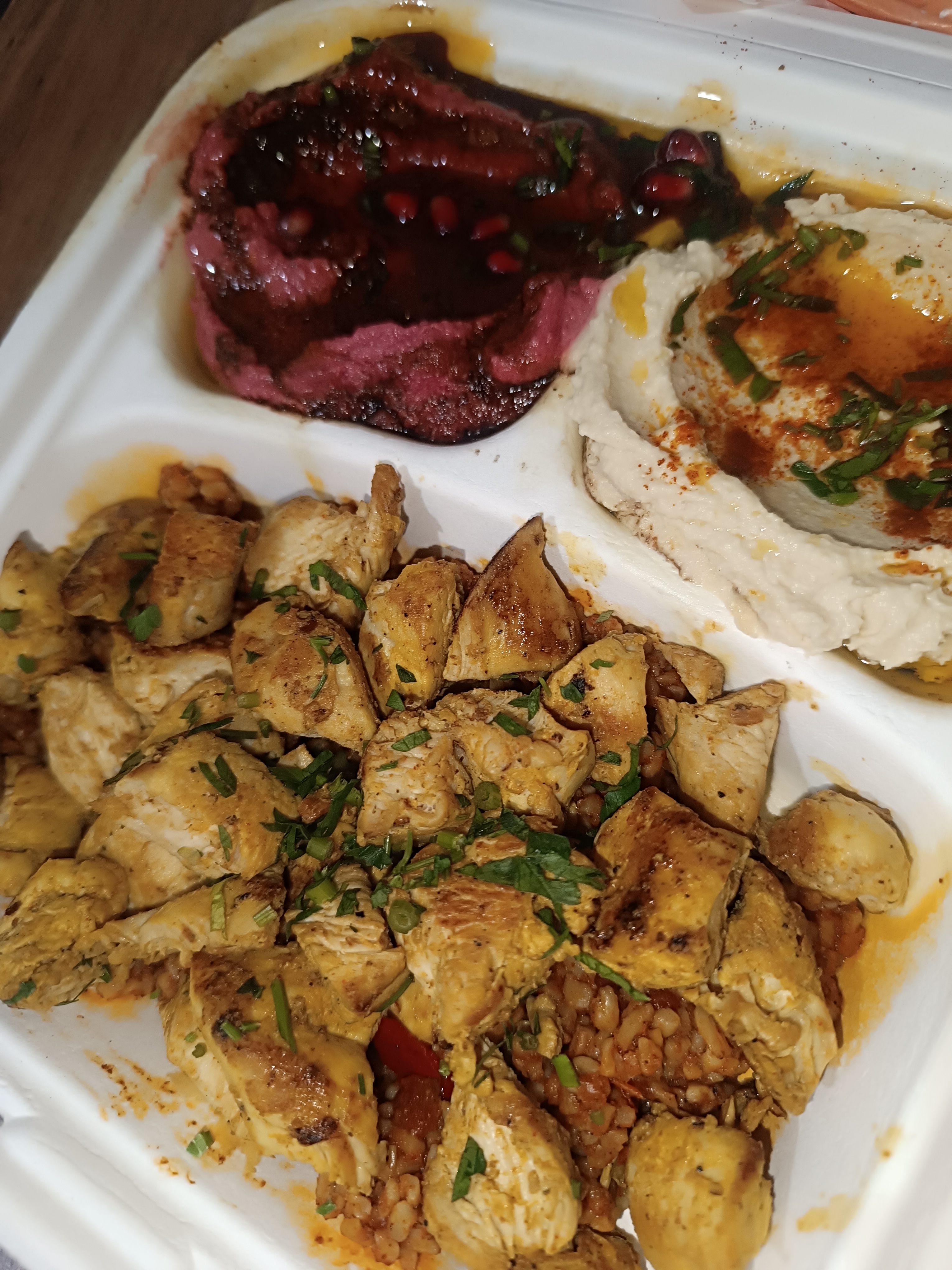 Une belle découverte… une vraie identité culinaire… le houmous aérien… accueil super sympathique ! Préparation et service rapide. On s’est régalée…