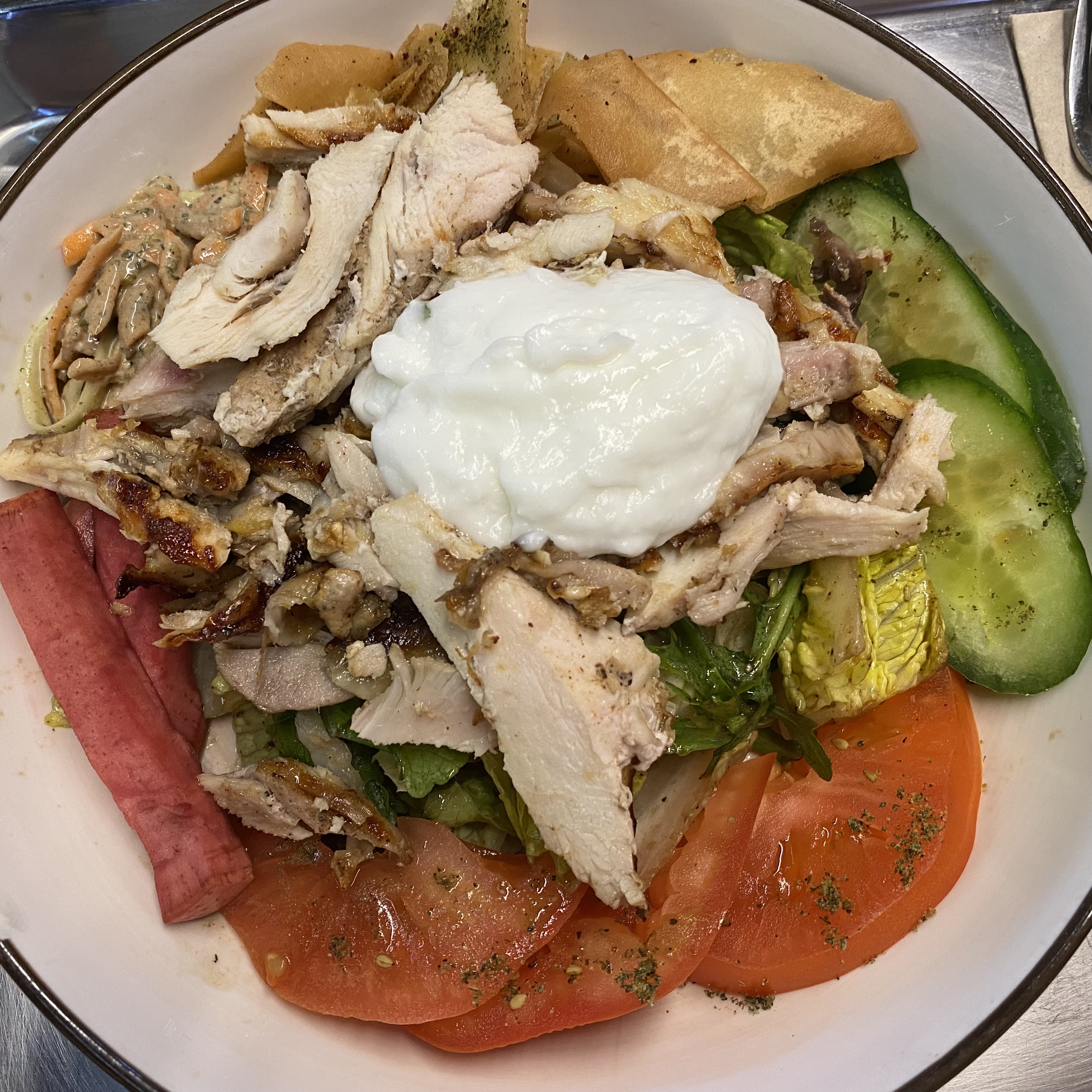 L'endroit est très propre. En revanche je trouve que les prix sont trop élevés pour la quantité mise dans les assiettes. J'ai pris le bowl shawarma boeuf, c'était correcte mais ça manquait de goût et d'assaisonnement..