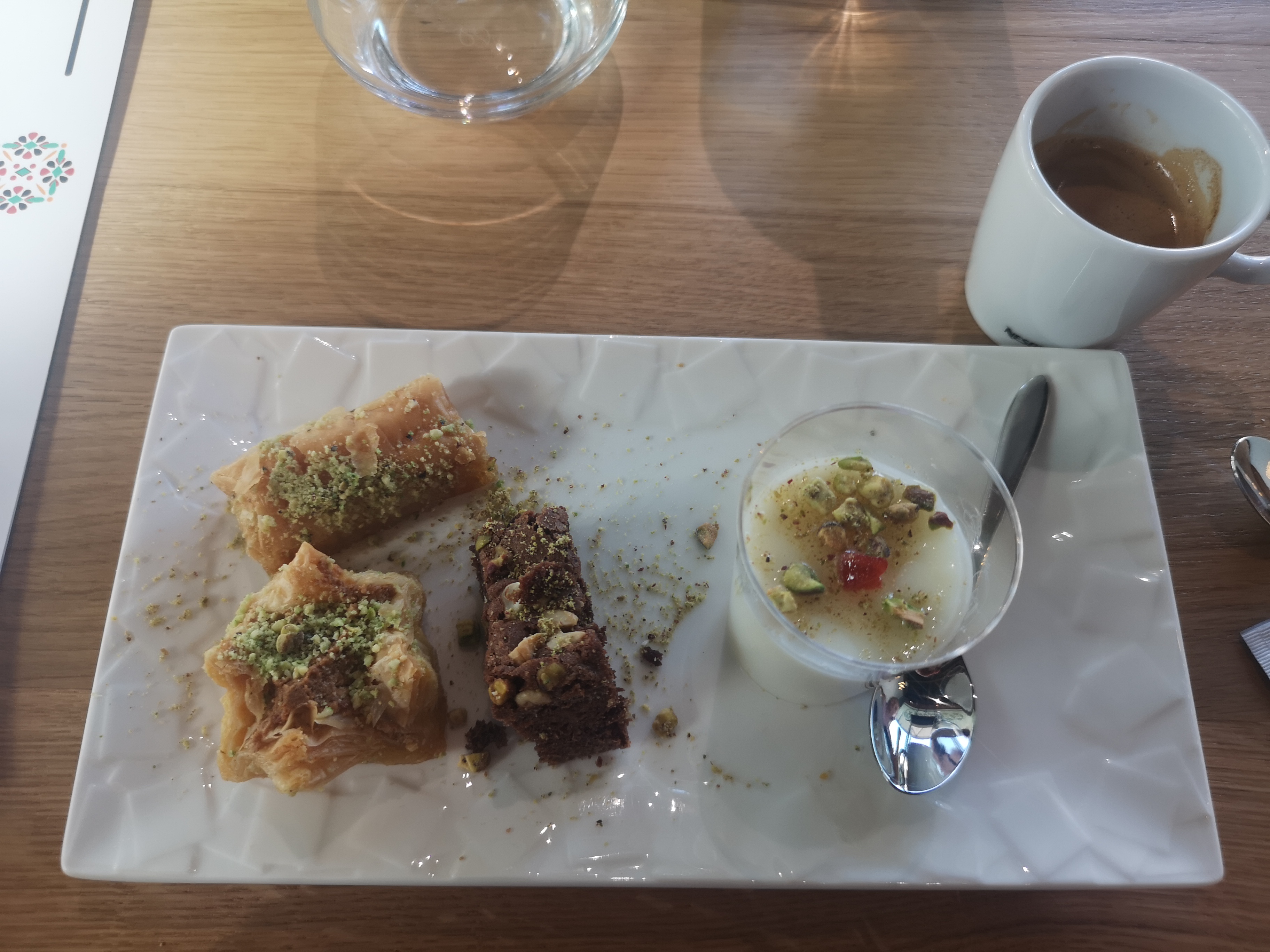 Très bon accueil et serveur très sympathique Nous avons testé le brunch du dimanche pour 25€. Composez vos mezze entre plats froids et plats chauds Le formule comprend également les pâtisseries ainsi que le thé à la menthe et le café. Je recommande 😊
