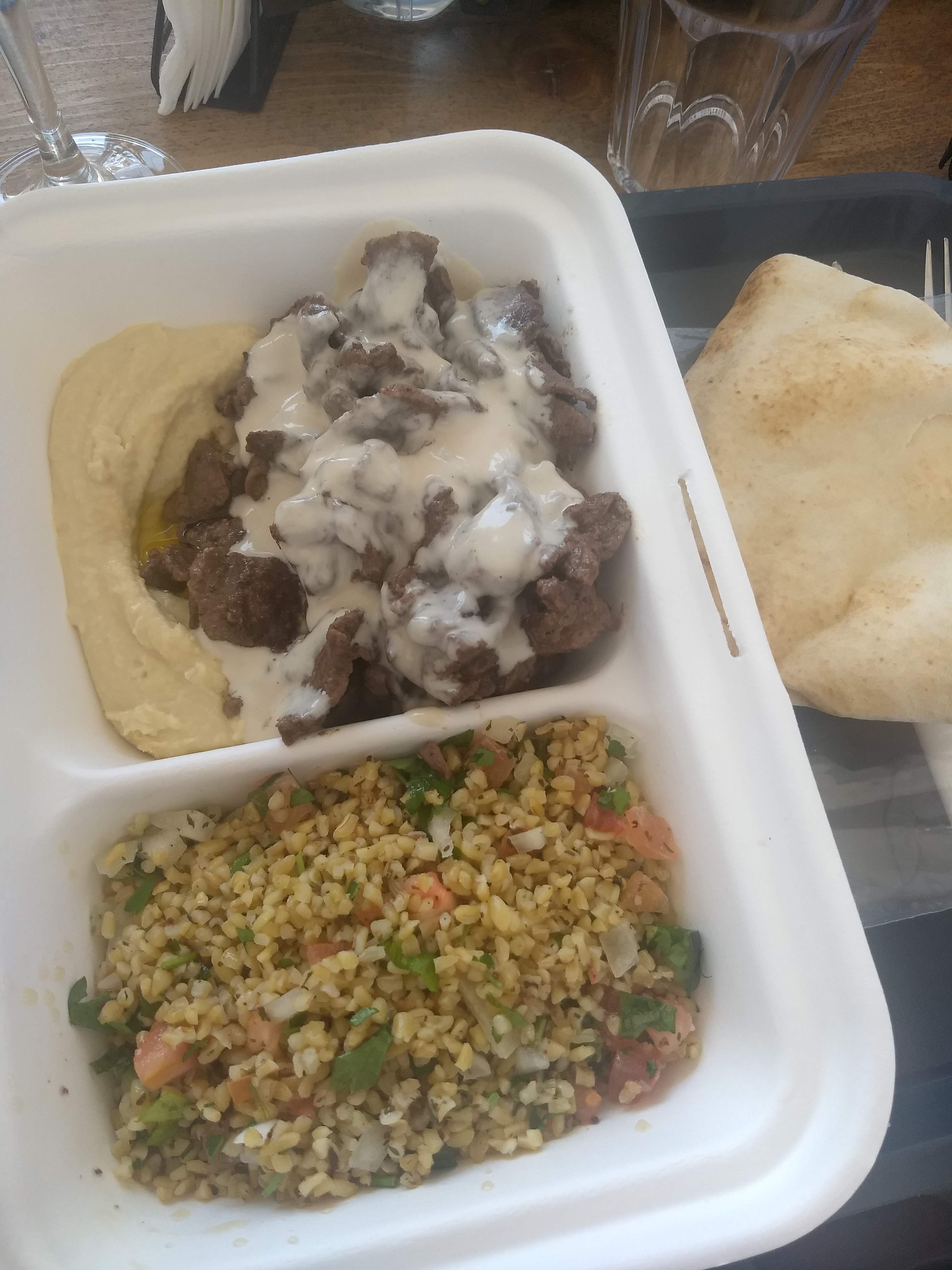 Un très bon repas, les produits sont de qualités ! Pour les Libanais c’est pas la vraiment vraie cuisine authentique de chez nous (le tabbouleh sans base persil yanné…) mais ça reste très très bon, la viande est très bien assaisonnée je recommande vivement ! Et le pain libanais était trop miam !!🇱🇧🇱🇧🇱🇧❤️❤️❤️