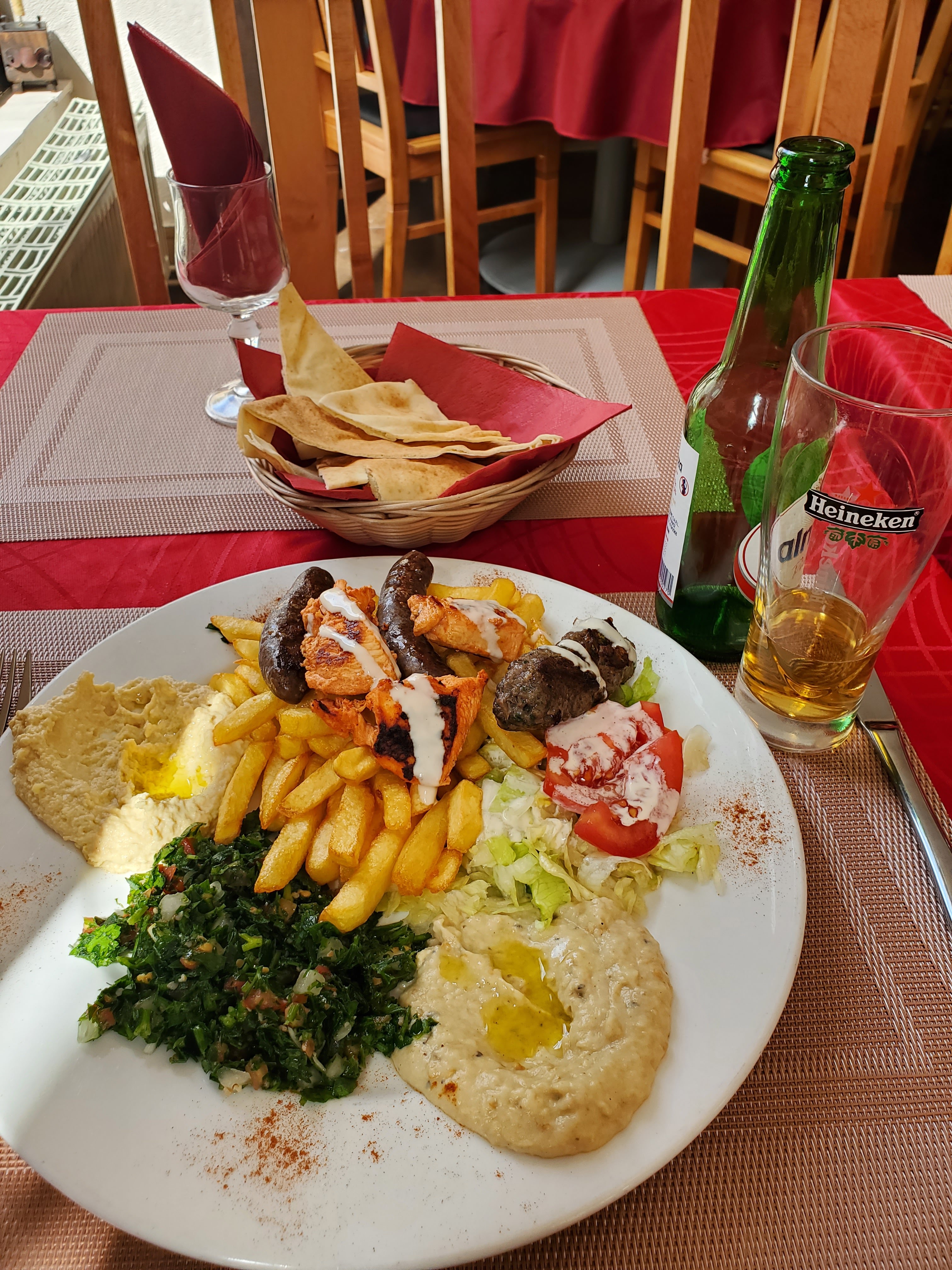 Très décevant! C'était comme si des produits tout préparés (feuilles de vigne, falafels, etc.) avaient été négligemment déposés dans une assiette. Goût plutôt monotone. Le rapport qualité-prix n'est pas approprié. Vous n'êtes pas obligé de l'essayer !