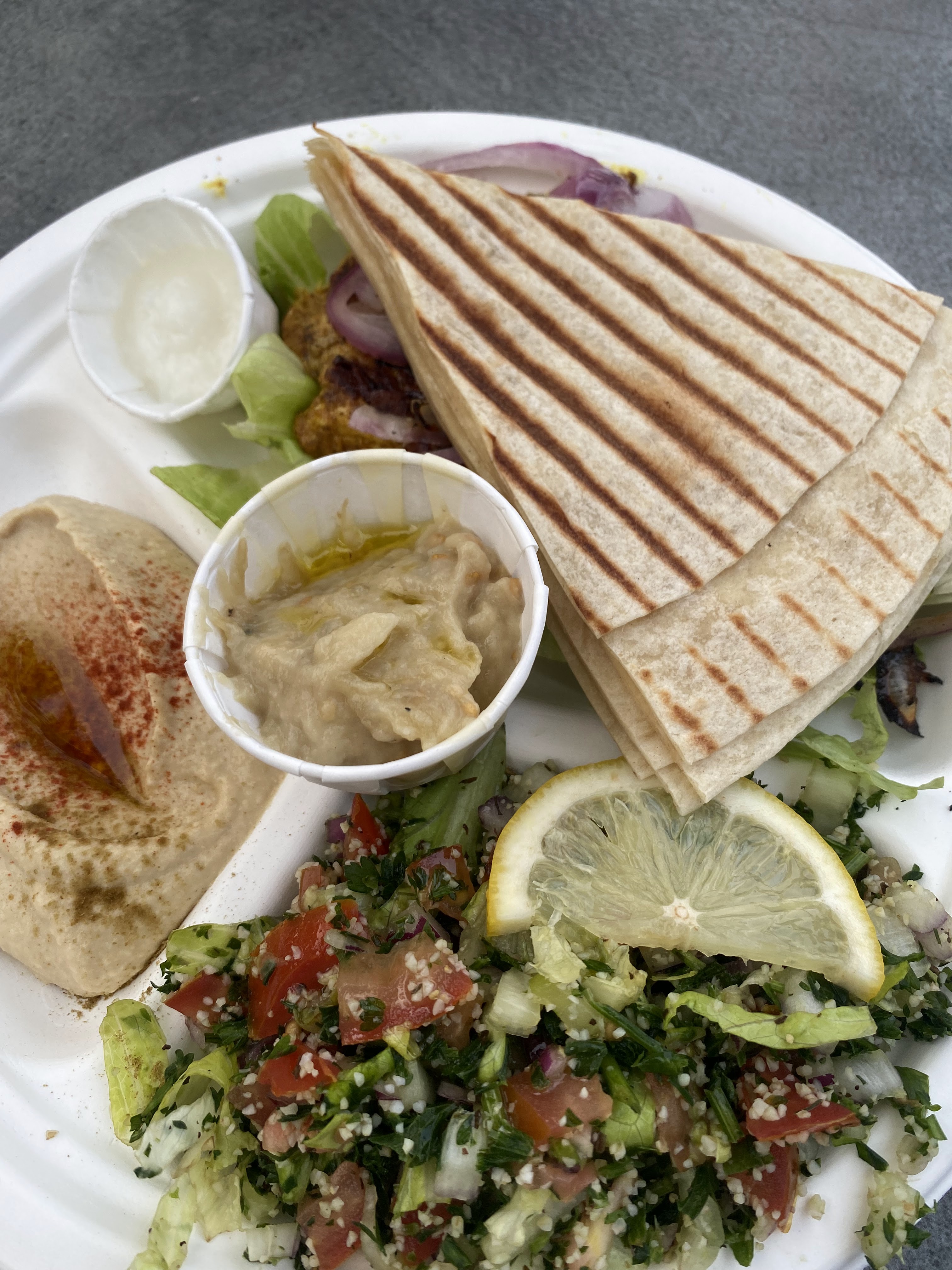 Waow. Baba Ghanoush divin Falafel roll délicieux et énorme - et au top le lendemain. Fattoush excellente. Equipe adorable. J'aimerais qu'ils franchisent!