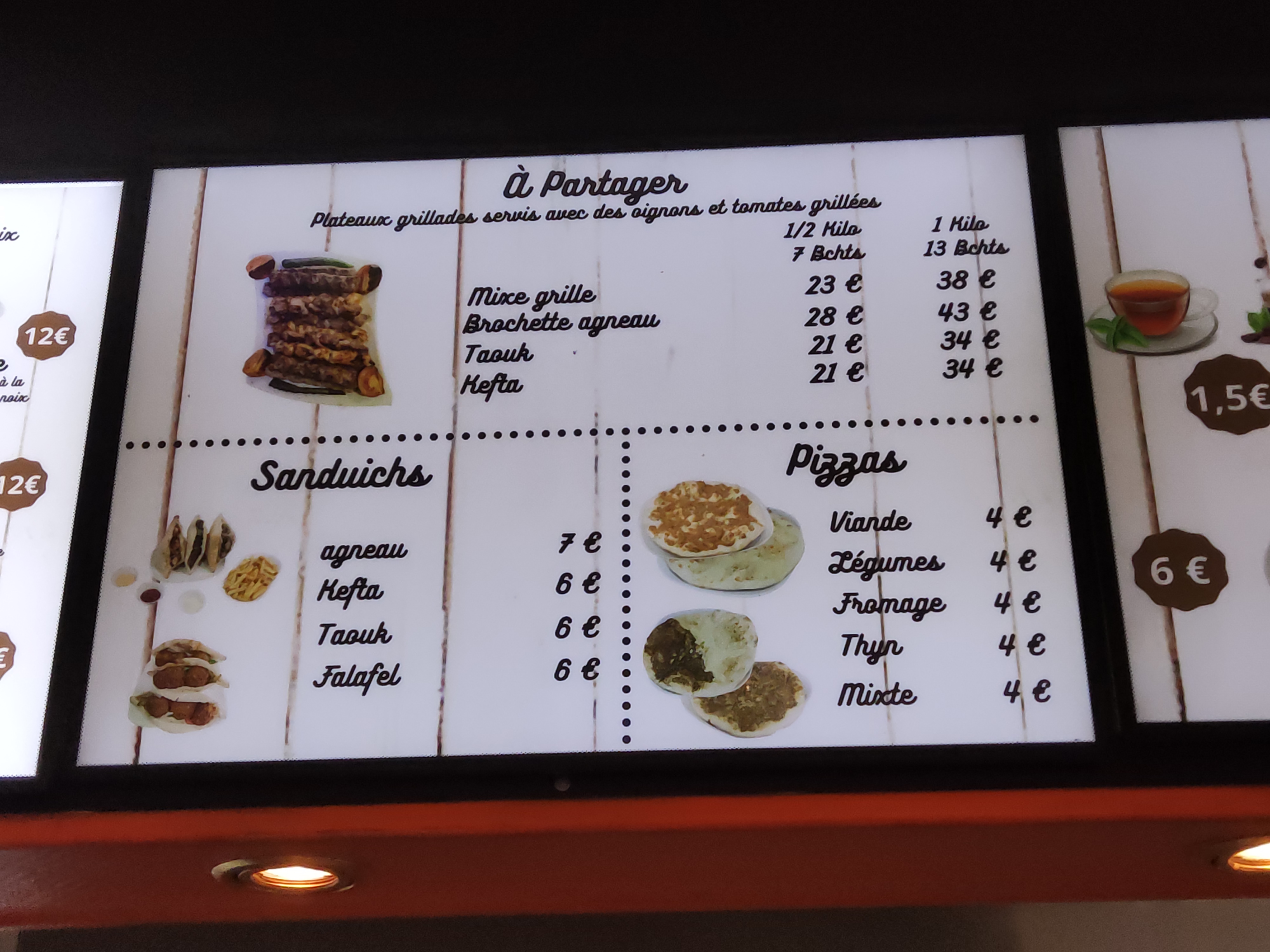 Excellent rapport qualité prix. Le houmous y est excellent. Les pizza pas chères et très bonnes. Pour une grande faim un seul ''plat'' est suffisant. Les sandwichs top. Juste bien préciser et répéter sa commande pour qu'il n'y ait pas d'erreur.