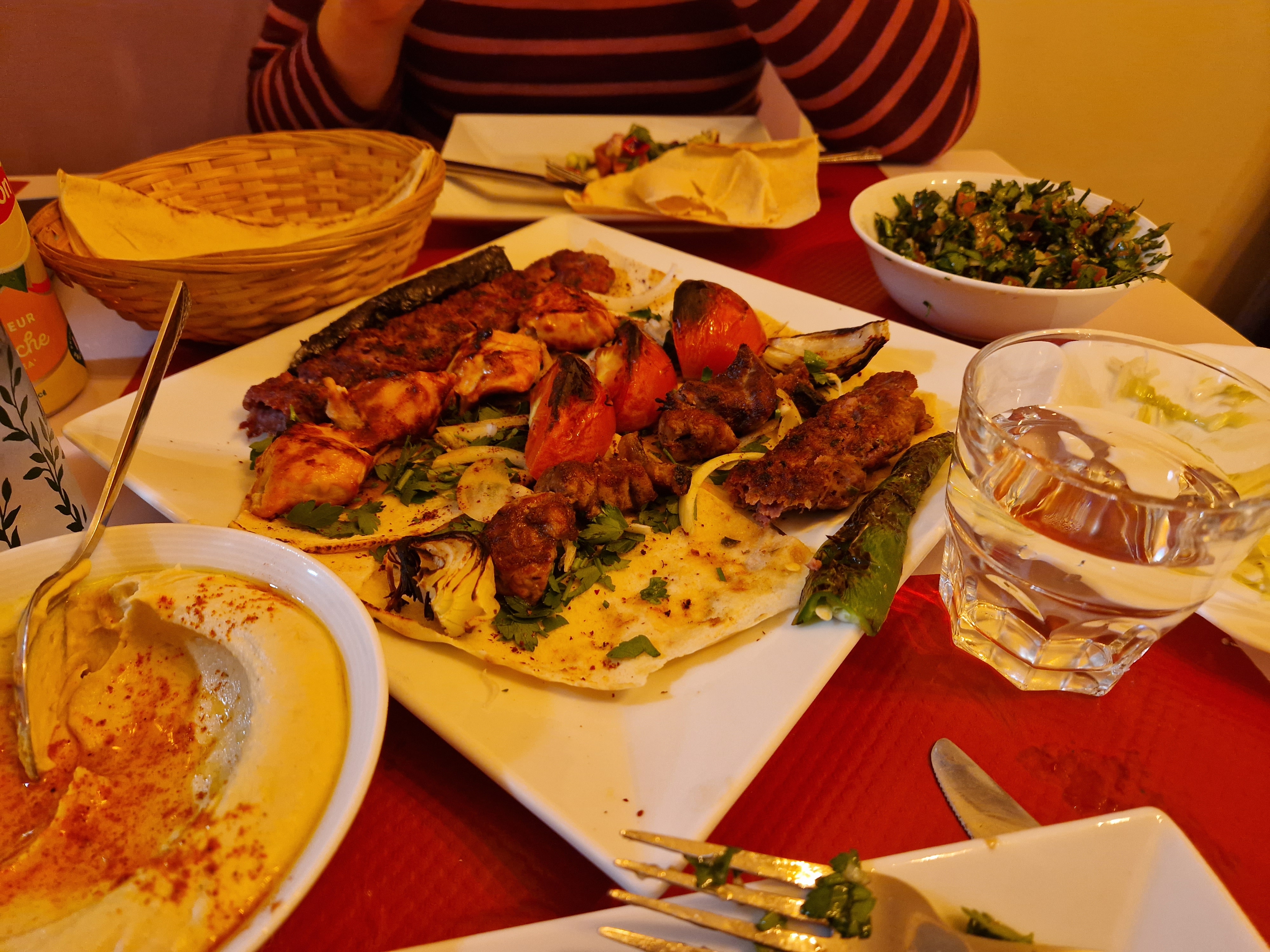 Nous avons été très bien reçus. Les plats étaient vraiment bon. Je vous recommande la crème à l'ail, le houmous pour agrémenter les differentes viandes. Les pâtisseries sont très bonnes. Un endroit familiale qui vous fera voyager au sein du moyen orient. Une belle découverte