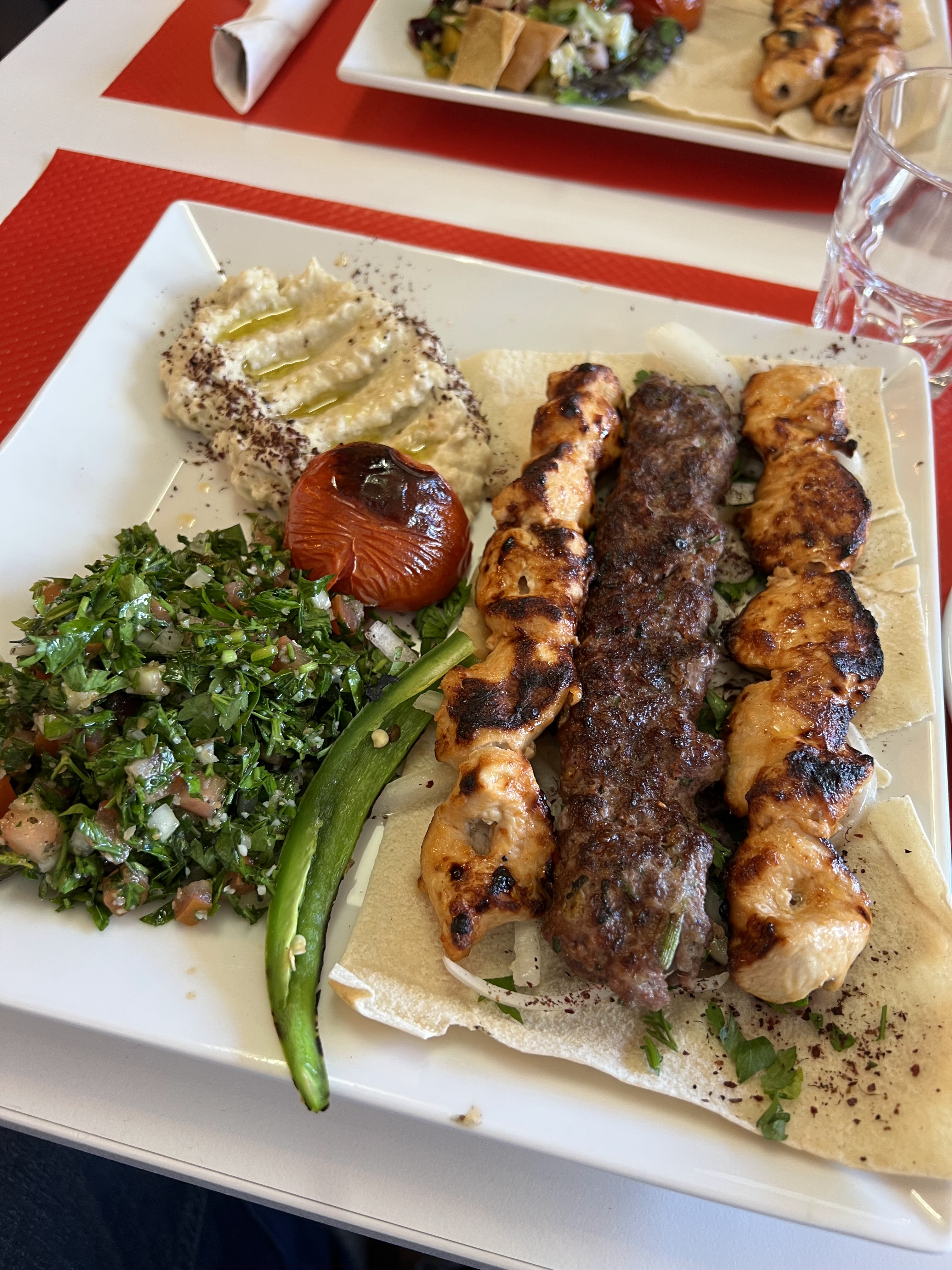 Restaurant super sympa, les plats étaient super bon et le service était impeccable. J’ai mangé le mix grill. étant originaire du Moyen-Orient. Je peux dire que c’est vraiment comme ça chez nous et que les plats étaient vraiment généreux et bons. Je recommande très fort pour les gens qui ont envie d’une expérience très authentique, et avec des plats qui sont pas revisiter mais original.
