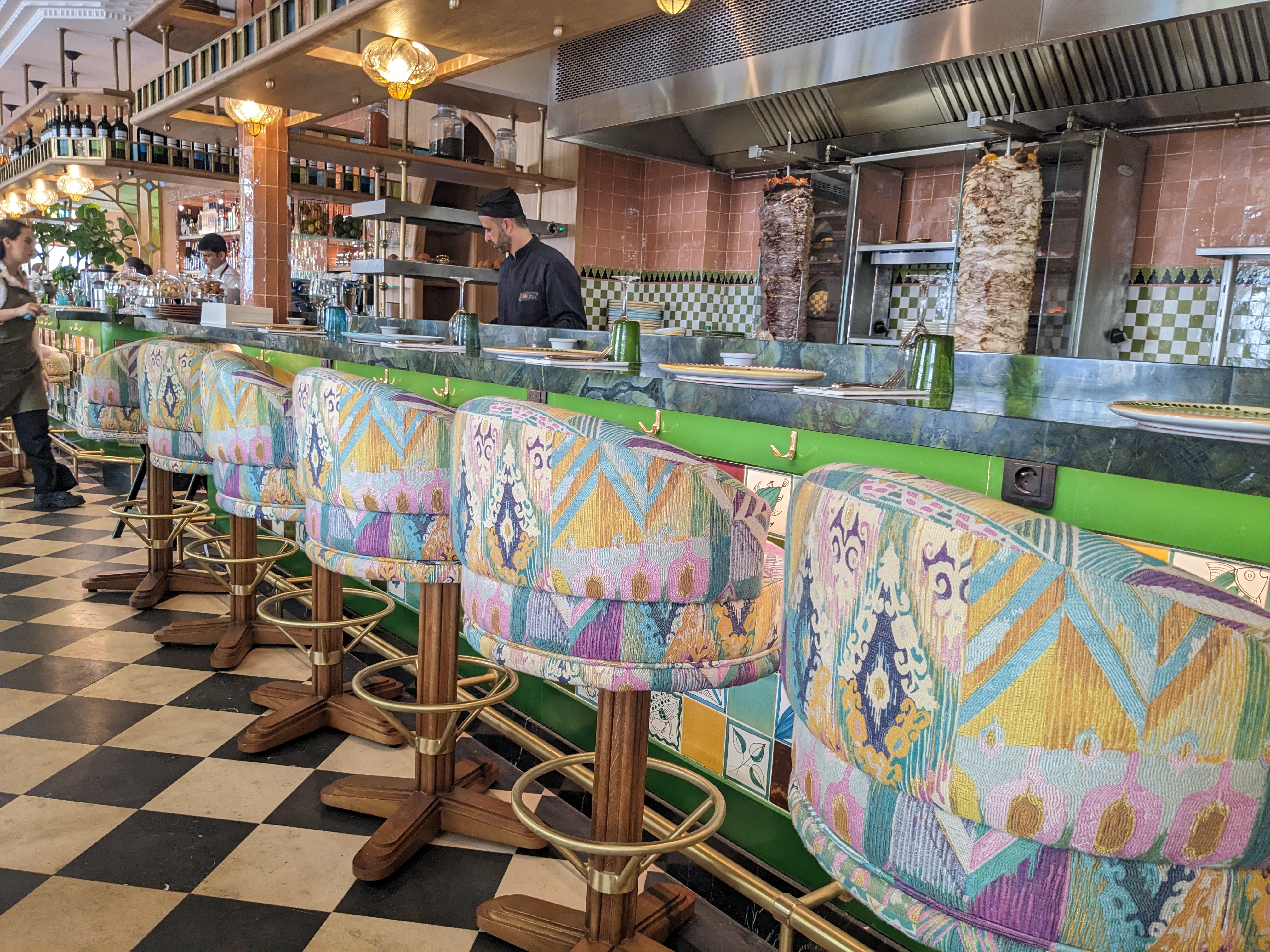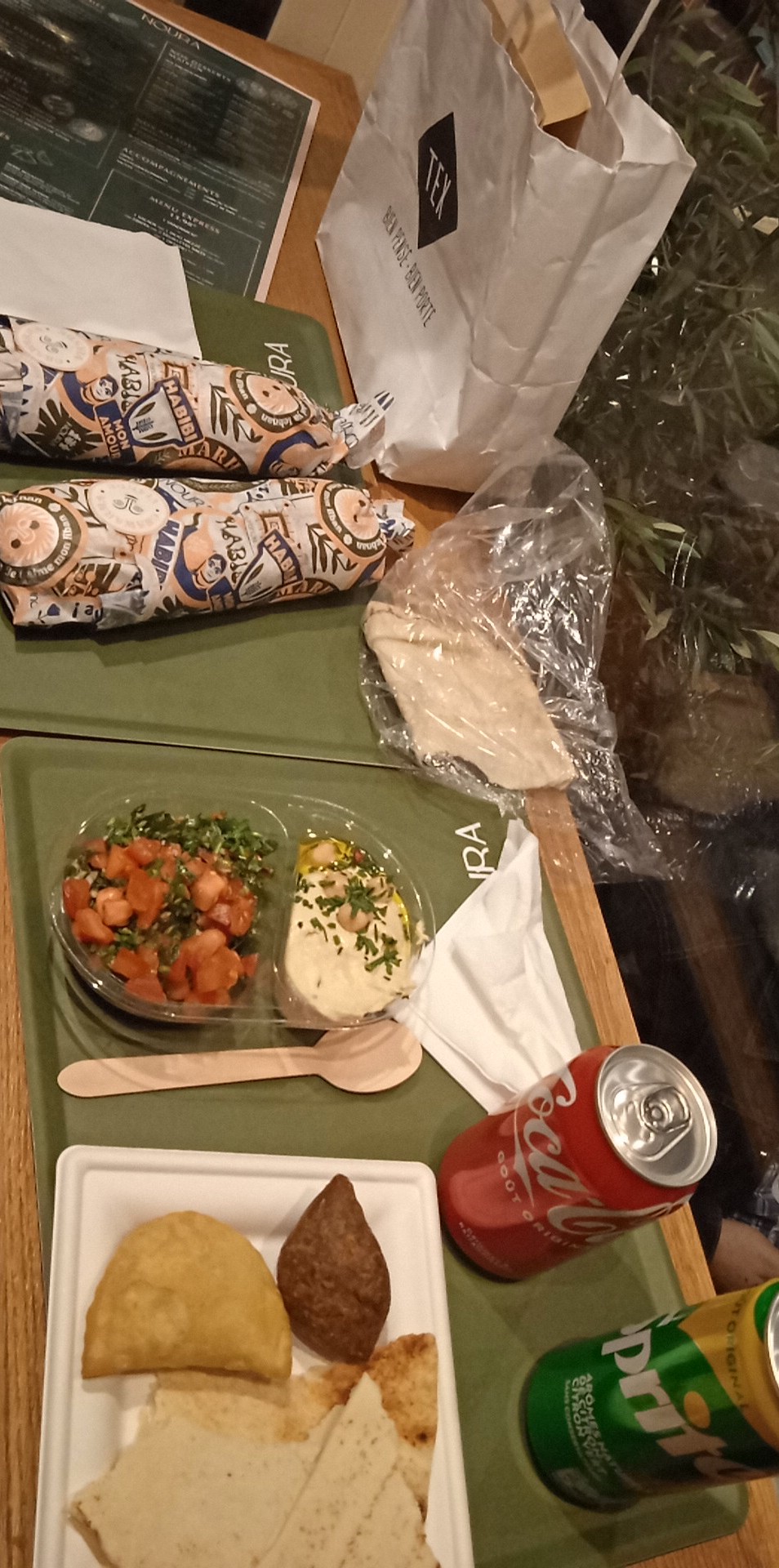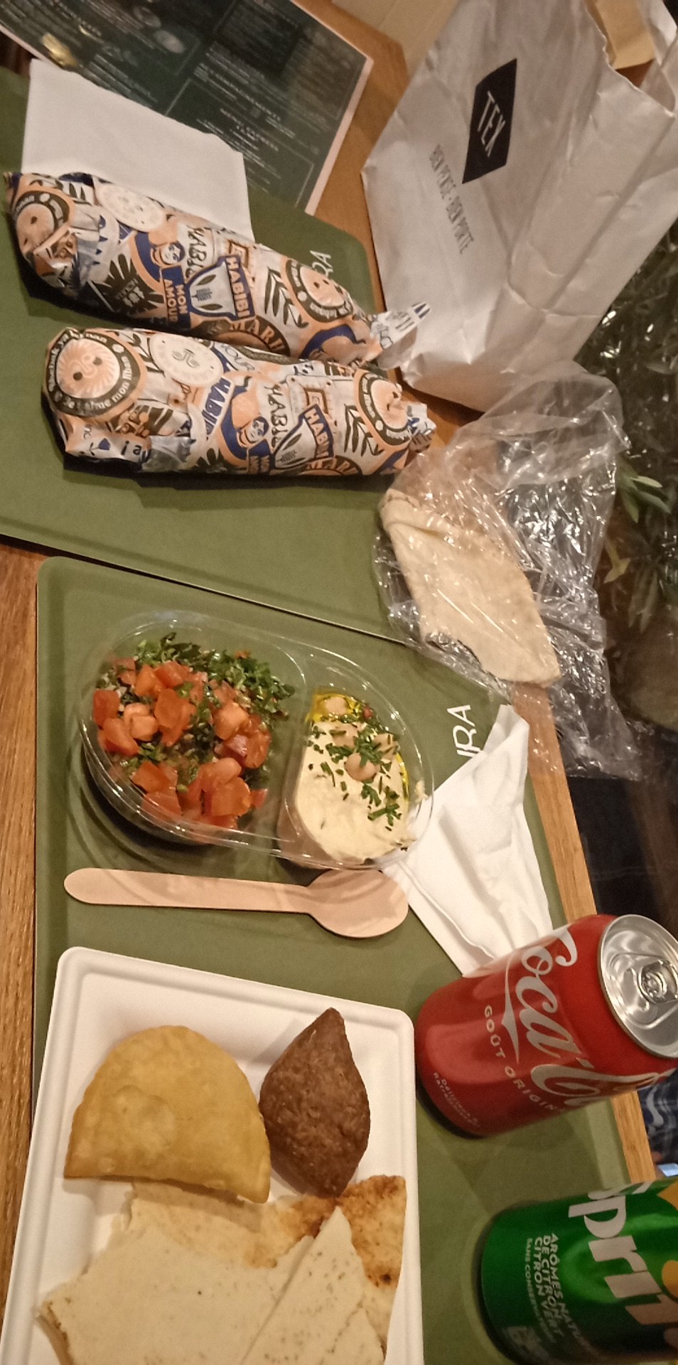 Déçu. j y suis passé a 13h30, donc pas bondé, accueil pas terrible. Attention l'élitisme, si vous voulez un menu express a moins de 15€ vous ne pouvez pas manger sur place (sauf 3 tables dehors, bien séparé des clients qui prennent des menus plus chers) Sandwich falafels majoritairement sec, et clairement pas les meilleurs falafels de Paris. Et un grand sac kraft pour une petite commande...