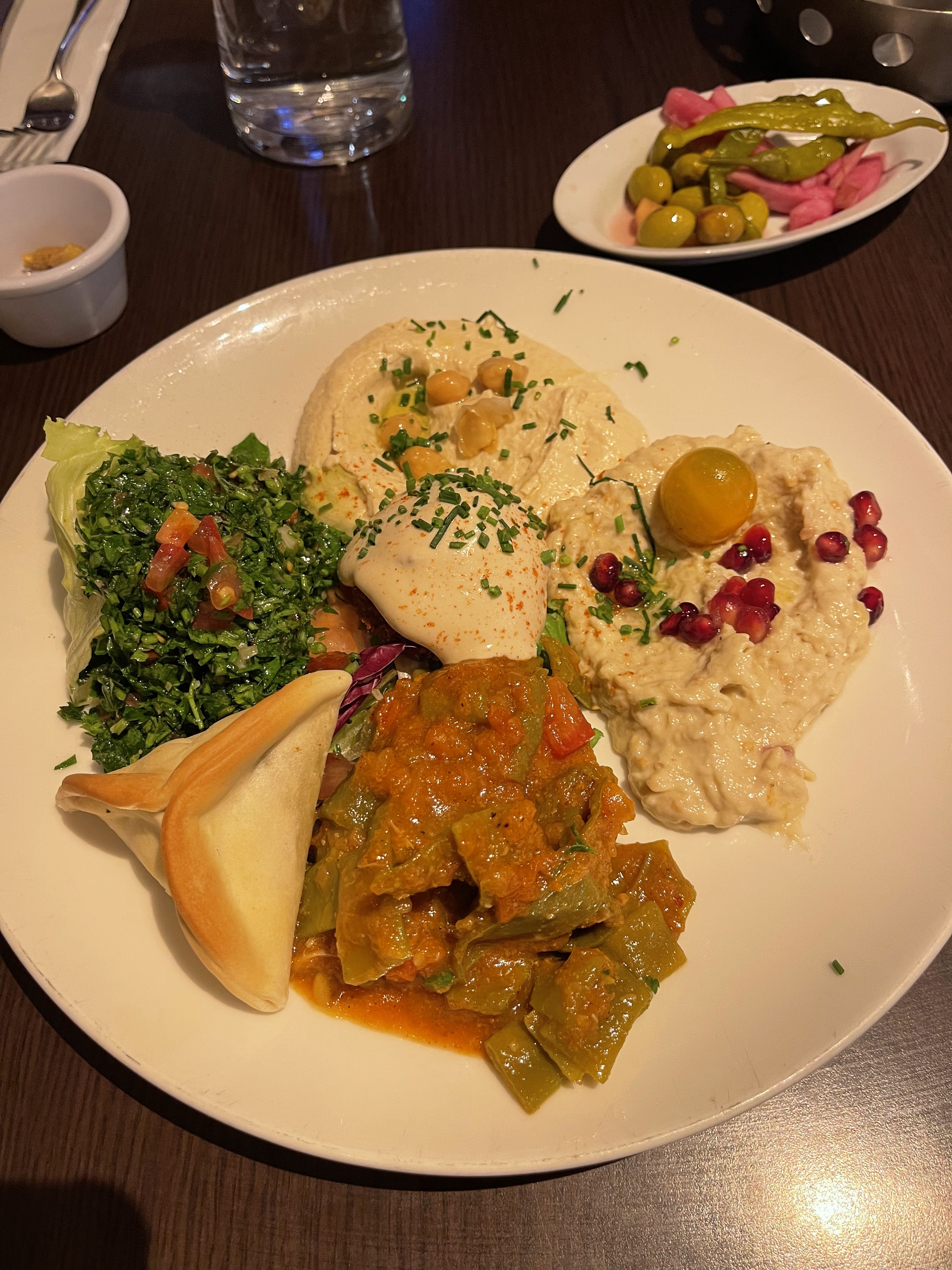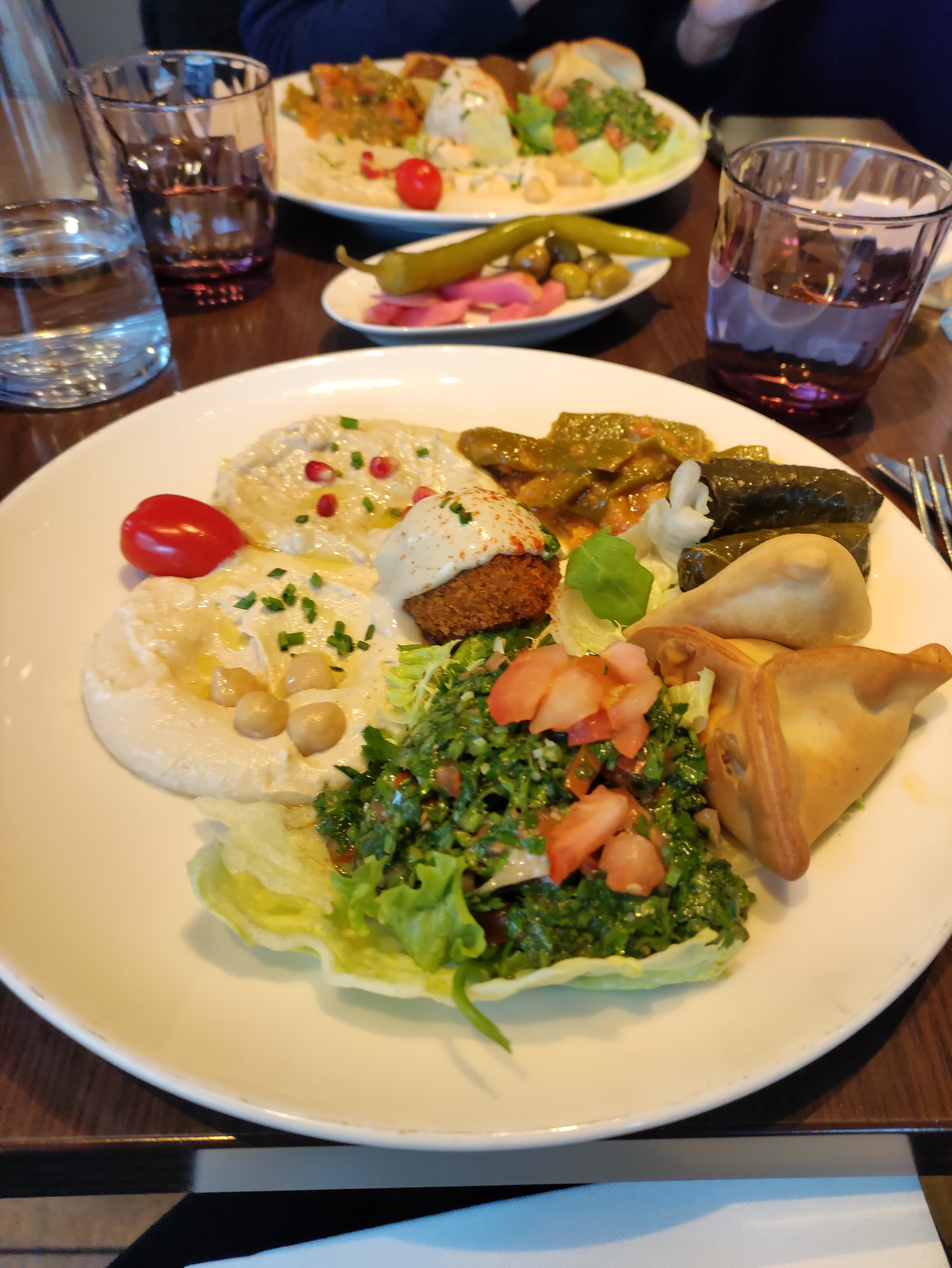 Délicieux libanais, les plats sont fins, le service aux petits soins, adaptable aux restrictions alimentaires. En photo le mezze végé sur la carte ici légèrement adapté vegan à ma demande, un régal. Je recommande !