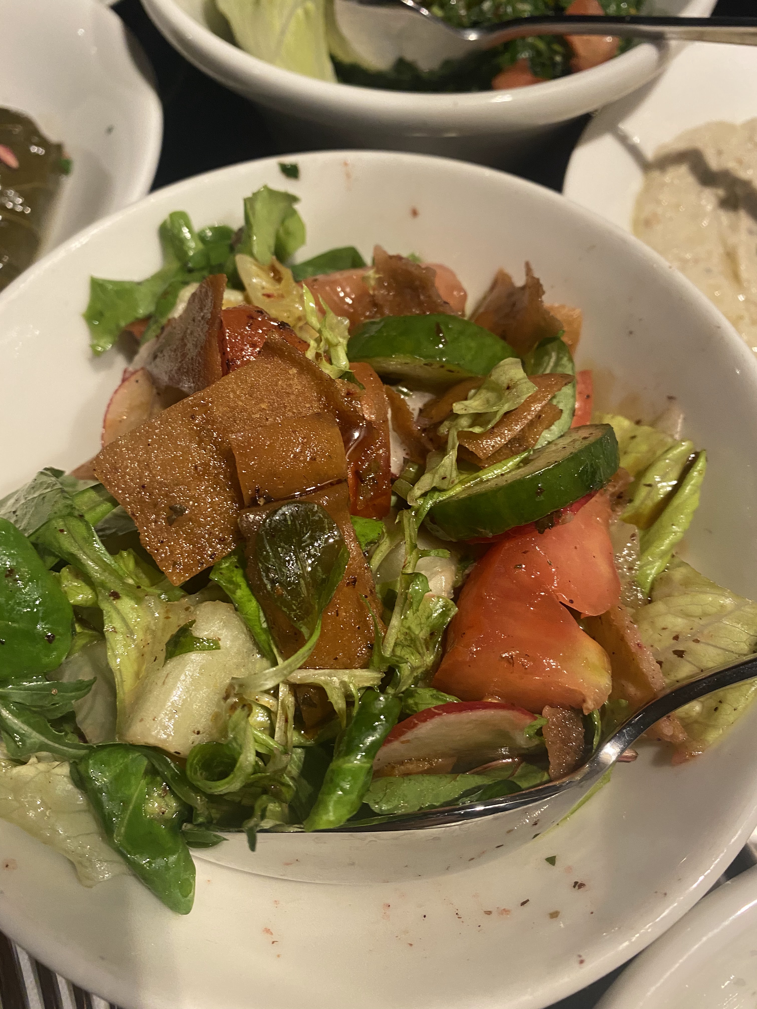 Niché à l’angle de la rue, les assiettes colorées et l’ambiance agréable ont attiré notre curiosité. Il y a pléthore de choix dans le menu, qui, on ne peut plus libanais. Cependant le taboulé fut un peu décevant, mais cela a été bien rattrapé par le mouhallabié qui fut succulent, tout comme d’autres plats. Le service fut très rapide (peut être même trop?) et notre serveur semblé vraiment dépassé par la terrasse. Néanmoins, ça reste une très belle et bonne adresse, vous devriez y aller !