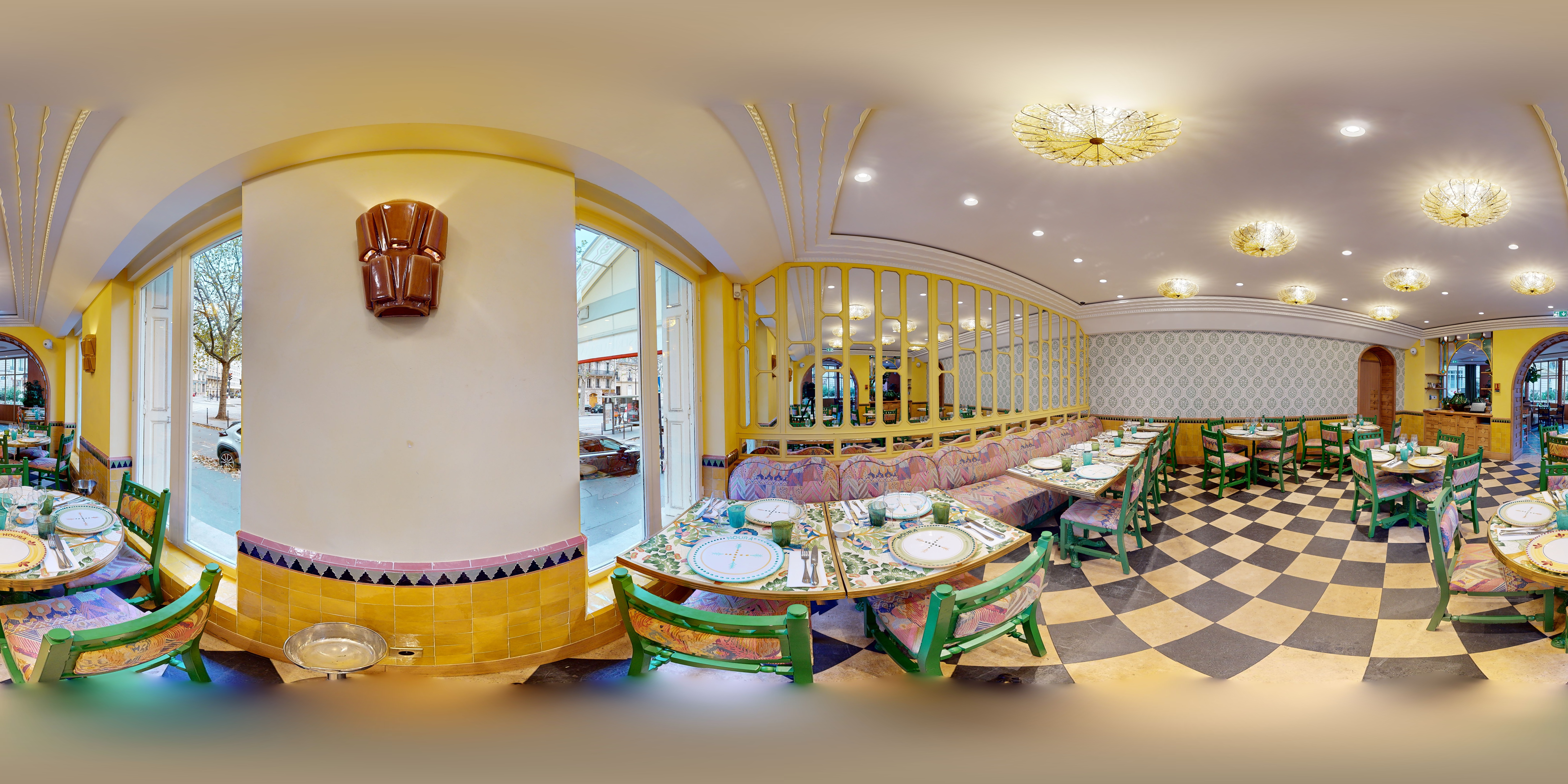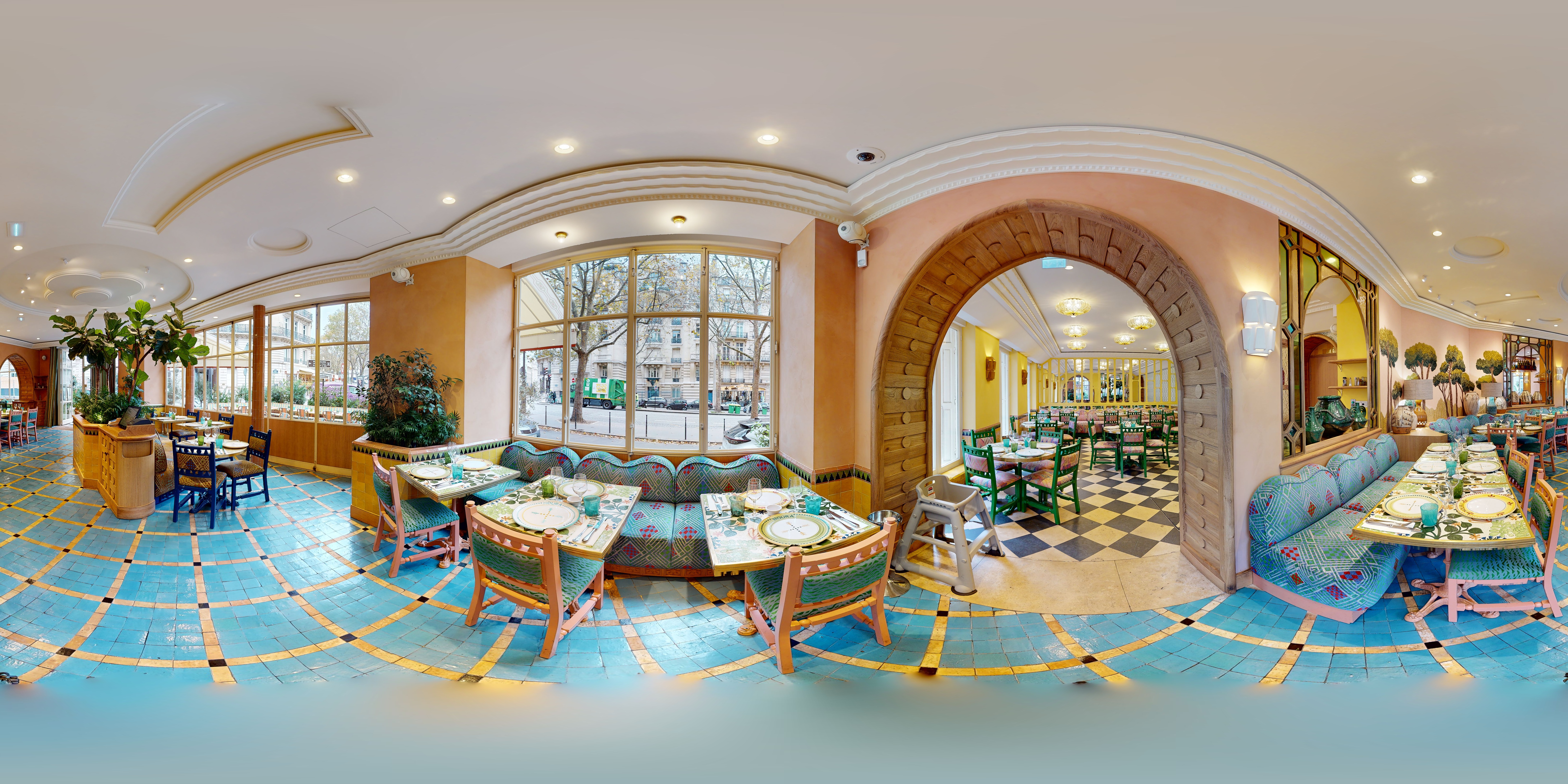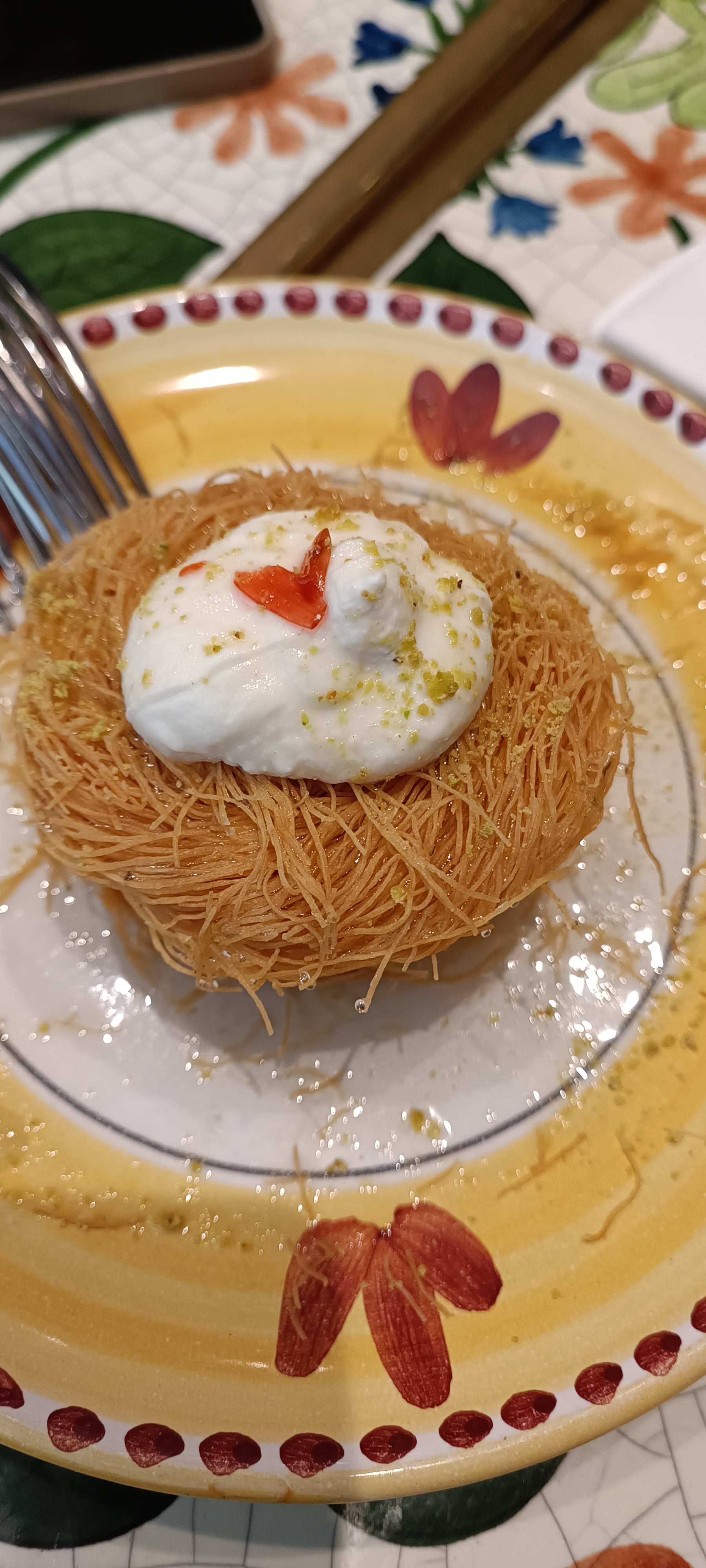 La décoration est magnifique avec un service digne des plus grands restaurants étoile de la capitale des plats traditionnels fais maison tout droit du Liban un patron a l'écoute une ambiance orientale très cosy et pausé par contre a évité a fuir si vous êtes au régime se si est un piège une grande terrasse extérieure très fleurie des moulures au plafond en blanc qui forme un bon contraste avec la salle très coloré et verdoyante pour la musique des enceintes devialet de très haute qualité plusieurs salle séparés par une grande voûte avec du verre coloré des vases en terre cuite majestueux des lumières pas trop intense se qui repose les yeux des chaises très confortable et des canapés très doux qui sont nettoyés avant chaque service de grande variété de plats des desserts peu conventionnelle mais très bon et des boissons chaude tel que du thé fais maison globalement rien a dire et sans faute