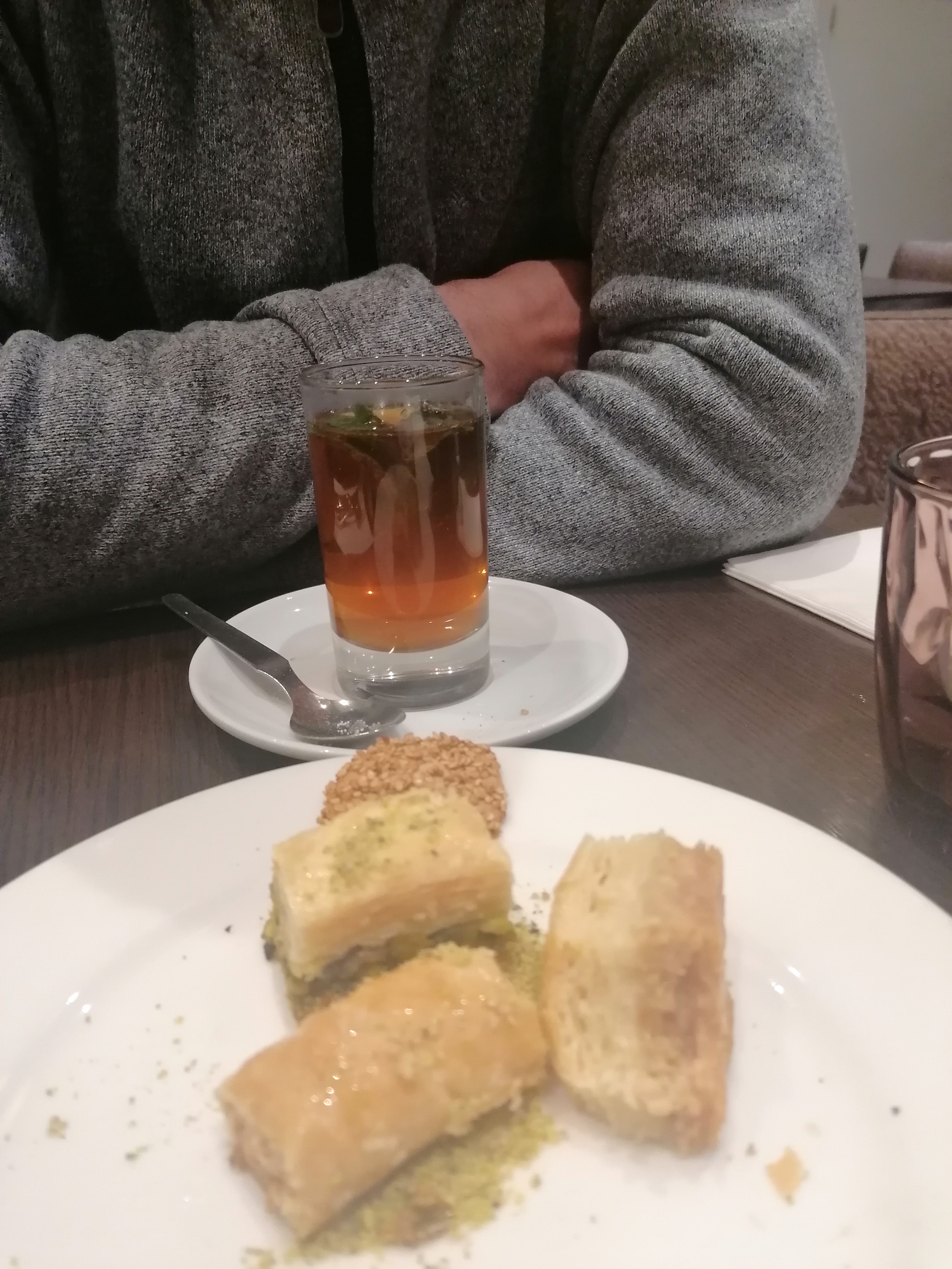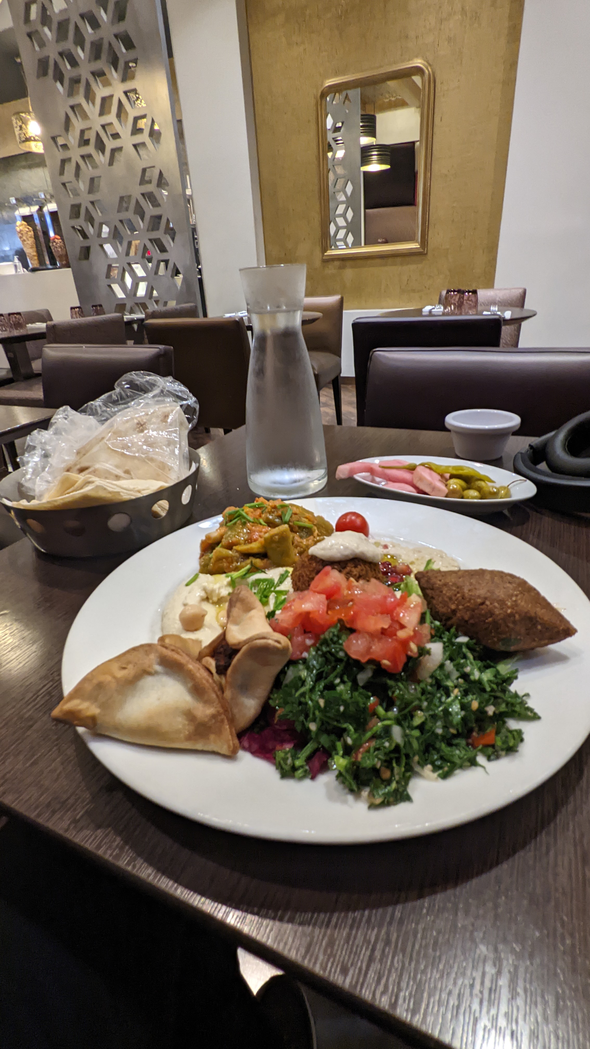 Cuisine de bonne qualité; portions suffisants mais la viande dans le shoarma n’était pas assez grillé à mon gout. La musique est bien choisie mais les hauts sont trop présents et pour une oreille comme la mienne c’est plus aggressante que reposante. Mais je sais que je suis difficile 🤣 🫖 thé a la menthe pas très convaincant.