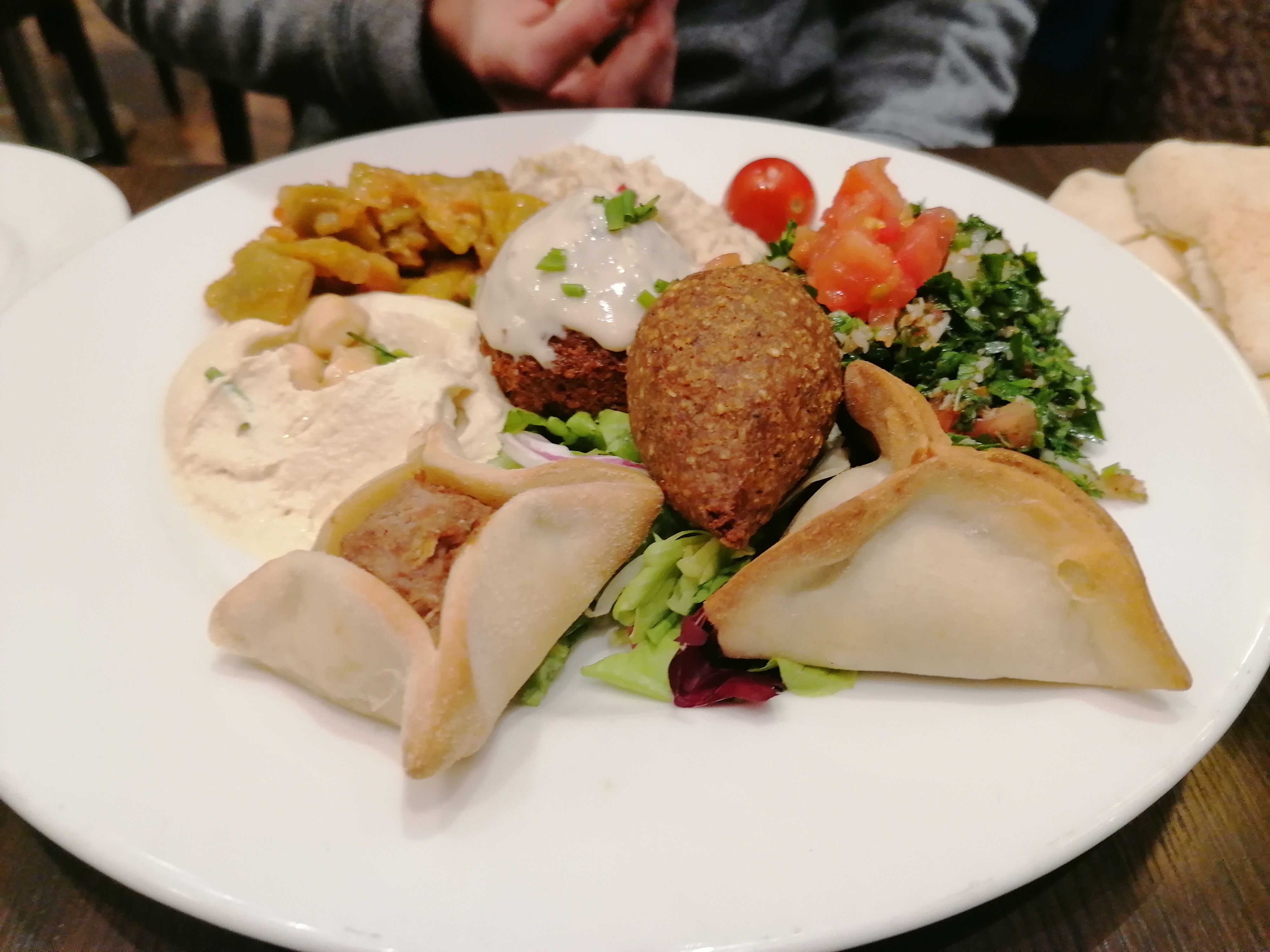 Le service y est excellent et on y mange très bien. Les serveurs sont aux petits soins, demandant si tout allait bien, surveillant regulièrement s'il y avait de l'eau. Nous avons pris une assiette de variétés, c'est la première image. La nourriture est goûtu et semble authentique. Pour 2 entrées et 3 plats, nous en avons eu pour 77€. De part leur sympathie, le bon accueil et la bonne bouffe, il mérite 5 étoiles. Je reviendrai !