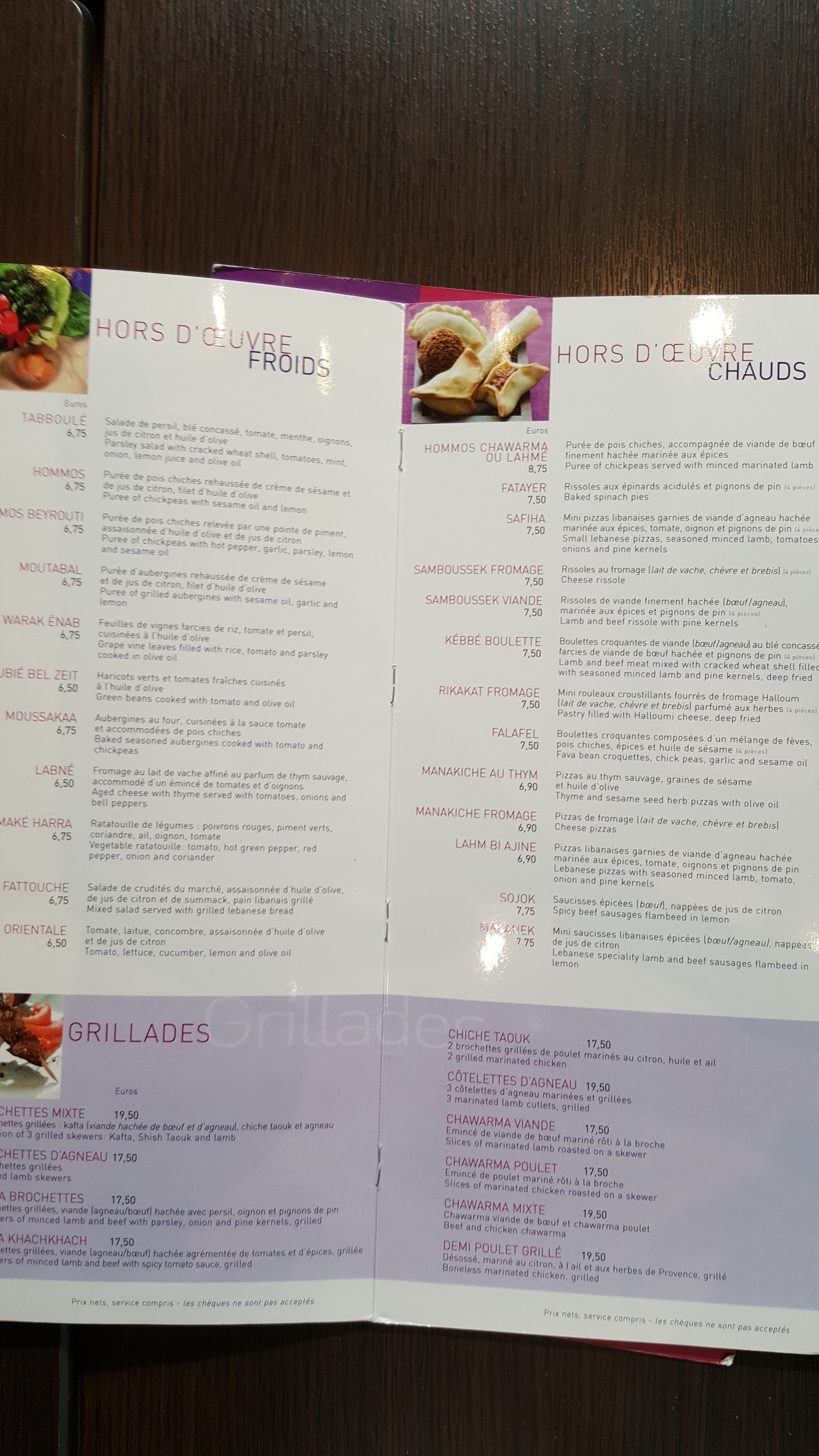 Nous venons de commander à emporter. Le sandwich à la viande pue la m….. La salade fatouch est moins bonne que la salade McDo, sans sauce avec des feuilles pourries. Le pain sandwich chichtaouk est dur et croque sous la dent… Nous sommes habitués à manger libanais mon mari est d’ailleurs libanais… mais la je suis sans voix. Le tout pour 65€ c’est du vol.