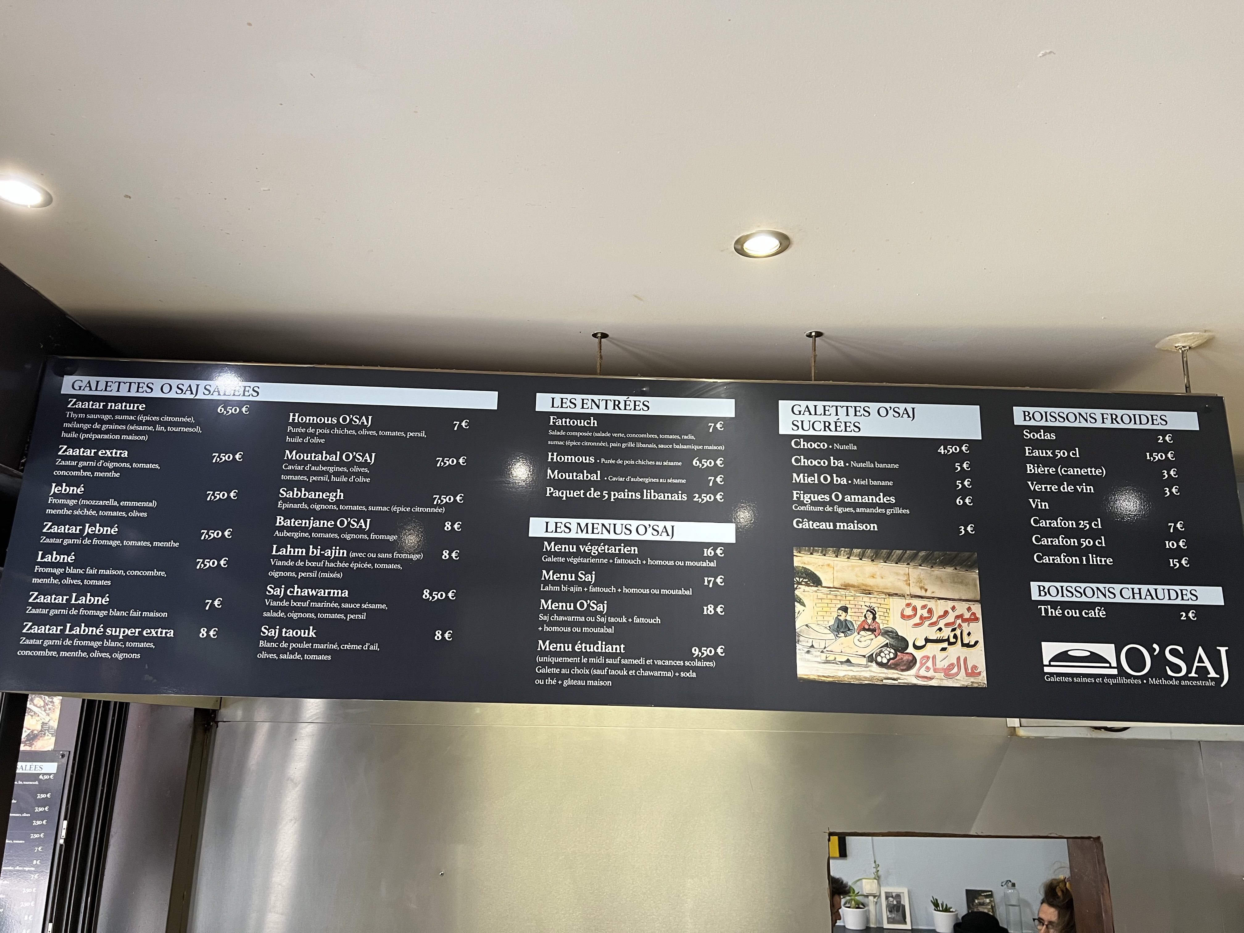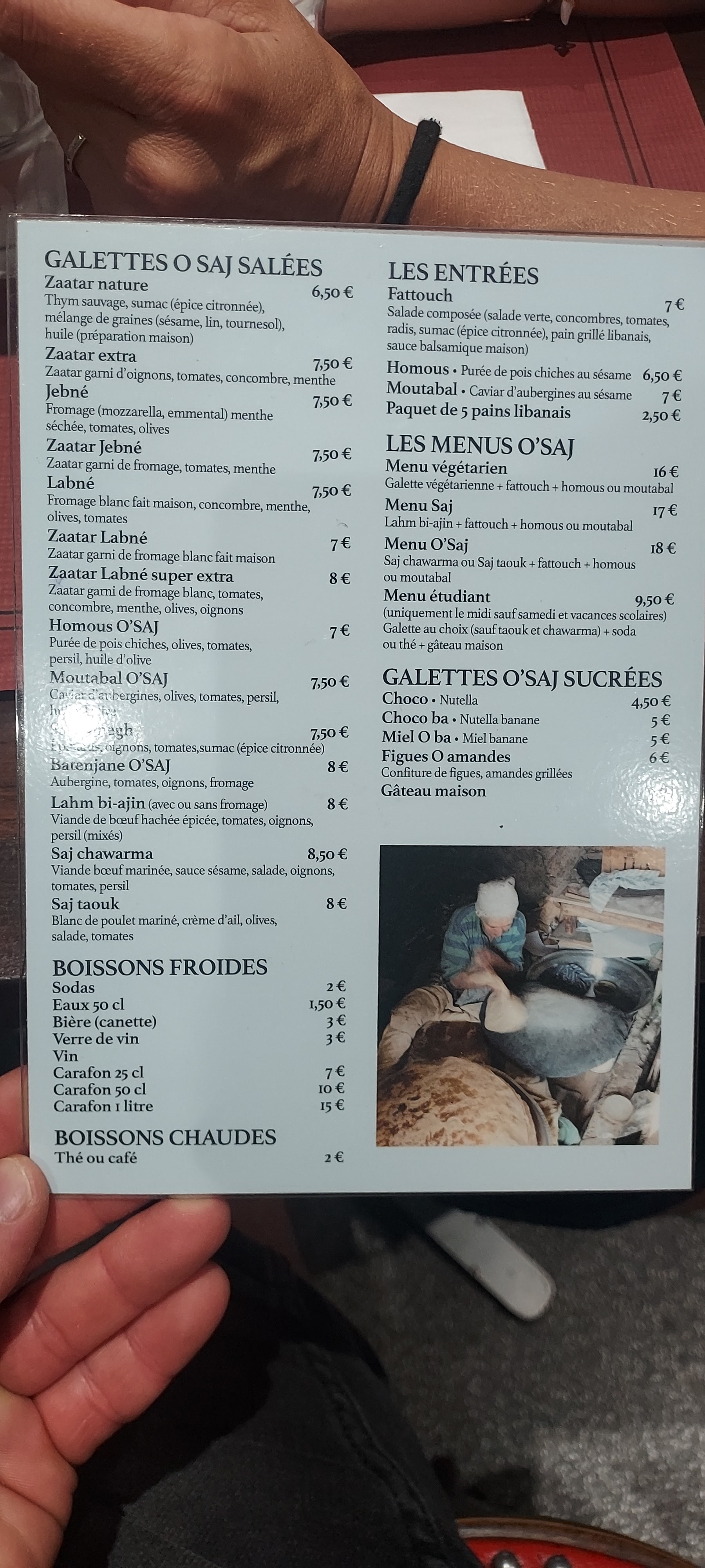 Excellent moment de découverte libanaise ! O Saj est le passage obligatoire pour apprécier des sages faits maison et traditionnels que Ziad fait avec soin. Sa gentillesse également est vraiment appréciable. On conseille vivement !!!