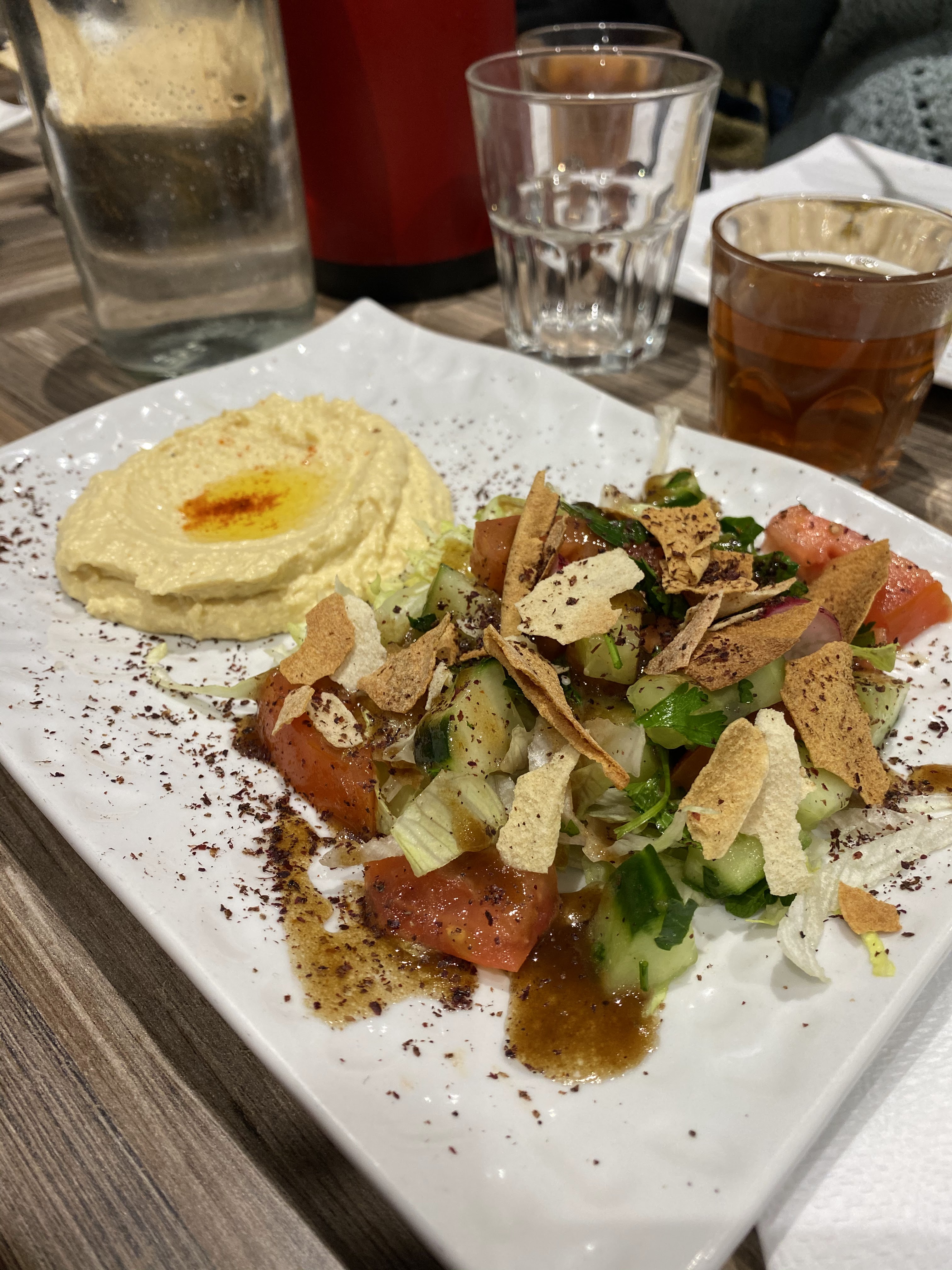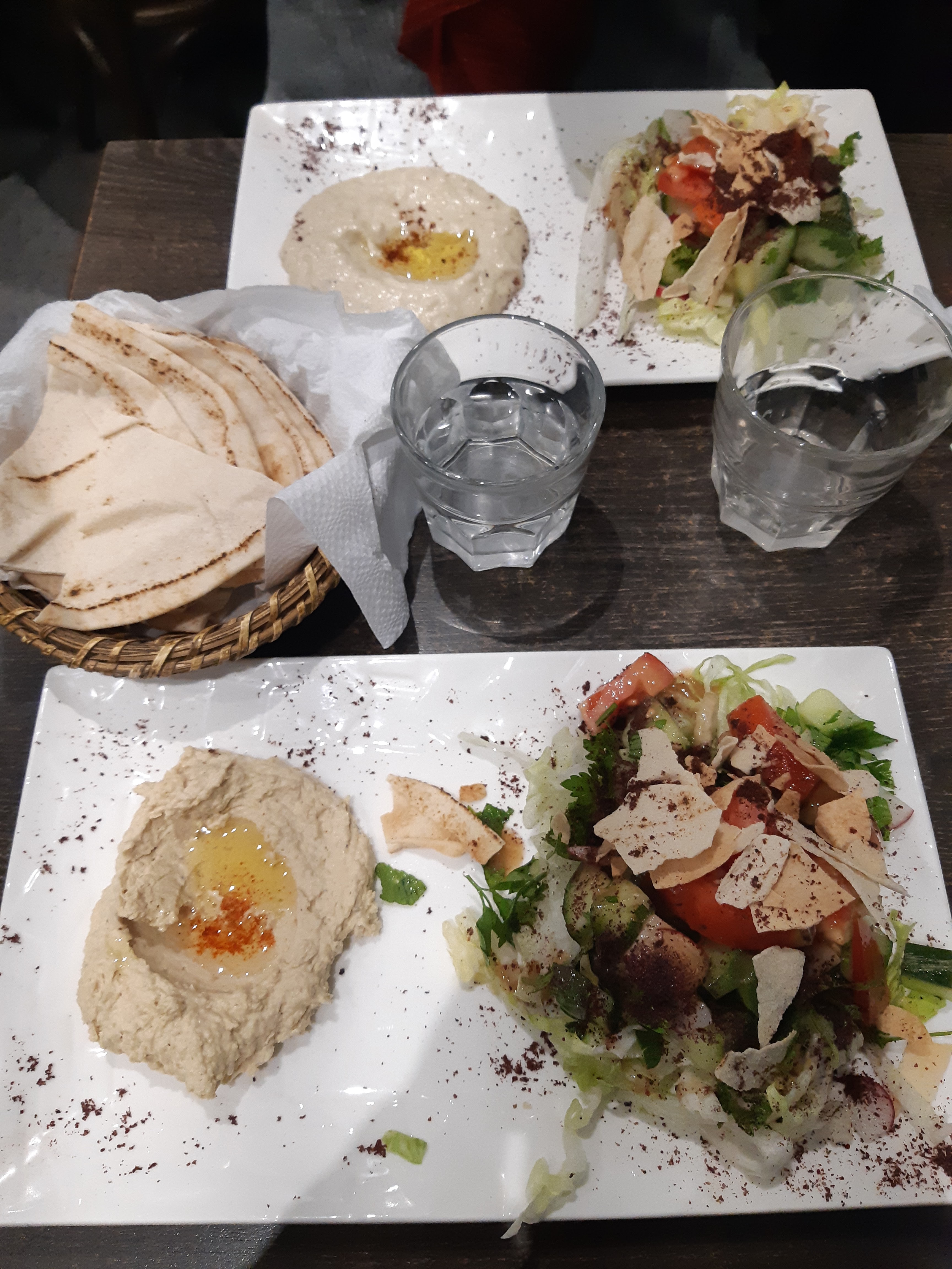 Étant entré par pure curiosité et une soudaine envie de Houmous je n’ai pas du tout été déçue! Les galettes faites maison sont les meilleures que j’ai jamais mangé, la garniture (tomates hachées, viande émincé, fromage et d’autres ingrédients dont je ne me souviens plus mais qui étaient délicieux 😋) succulente et le houmous a su combler toutes mes envies! Je pense que ce petit restau (vraiment petit! A peine 8-10 places assises à l’intérieur) va devenir l’une de mes étapes incontournables sur toulouse! Si on aime la cuisine libanaise c’est un lieu à tenter absolument! ❤️🤤